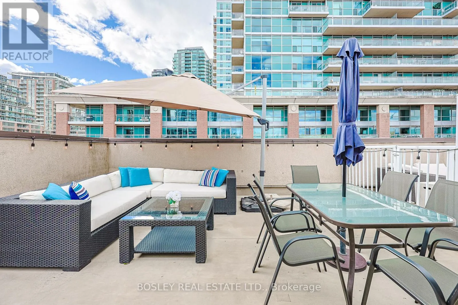Cross Streets: King St W. & Strachan. ** Directions: Walk Up Pirandello St*The Unit Fronts On Pirandello St Just North Of Lynn Williams Street*. Simply STUNNING ! This one has the WOW Factor ! So much to love about this sun-filled 3-Storey Soho Model *End Corner Unit* with 2 bedrooms + 2.5 renovated bathrooms | Primary bedroom has 4-pc ensuite bath and double closet with organisers | Approx. 1,176 Sqft of living space with a 336 sq.ft. private Roof Top Terrace (measured) | *Parking & Locker included AND are next to each other* | OWNED HVAC Cooling - Heating System and Tankless Hot Water Heater (2019) w/ 10 yr warranty | Every detail thoughtfully planned and beautifully finished | EXTENSIVE UPGRADES (2023-2025) : Added pot lights in living room and stairwells, re-sanded hardwood floors, 2nd floor bathroom vanities, light fixtures, & mirrors, upgraded 2-pc bath tiles, vanity, mirror, & light fixture, new door hinges, hardware, dimmers, covers/plates, 5 inch baseboards + quarter rounds, new handrails, pot lights, quartz kitchen counter, new kitchen cabinet hardware, new carpet on stairs, painted the entire house, trim, and baseboards | Walking Distance To TTC, GO, New Ontario Line, King West, West Queen West, Sunnyside, BMO Field, TFC, JAYS, Bellwoods Park, Centre Island, Coronation Park, Metro, No Frills, Goodlife, Altea Active, Balzac's, Nodo, Brazen Head And A Plethora Of Vibrant Restaurants, Cafes, Shopping, And All The Best Of City Living ! Bike Score 92 Transit Score 93 Walk Score 91| (id:27476)