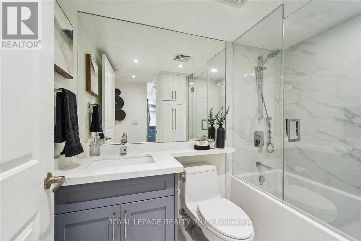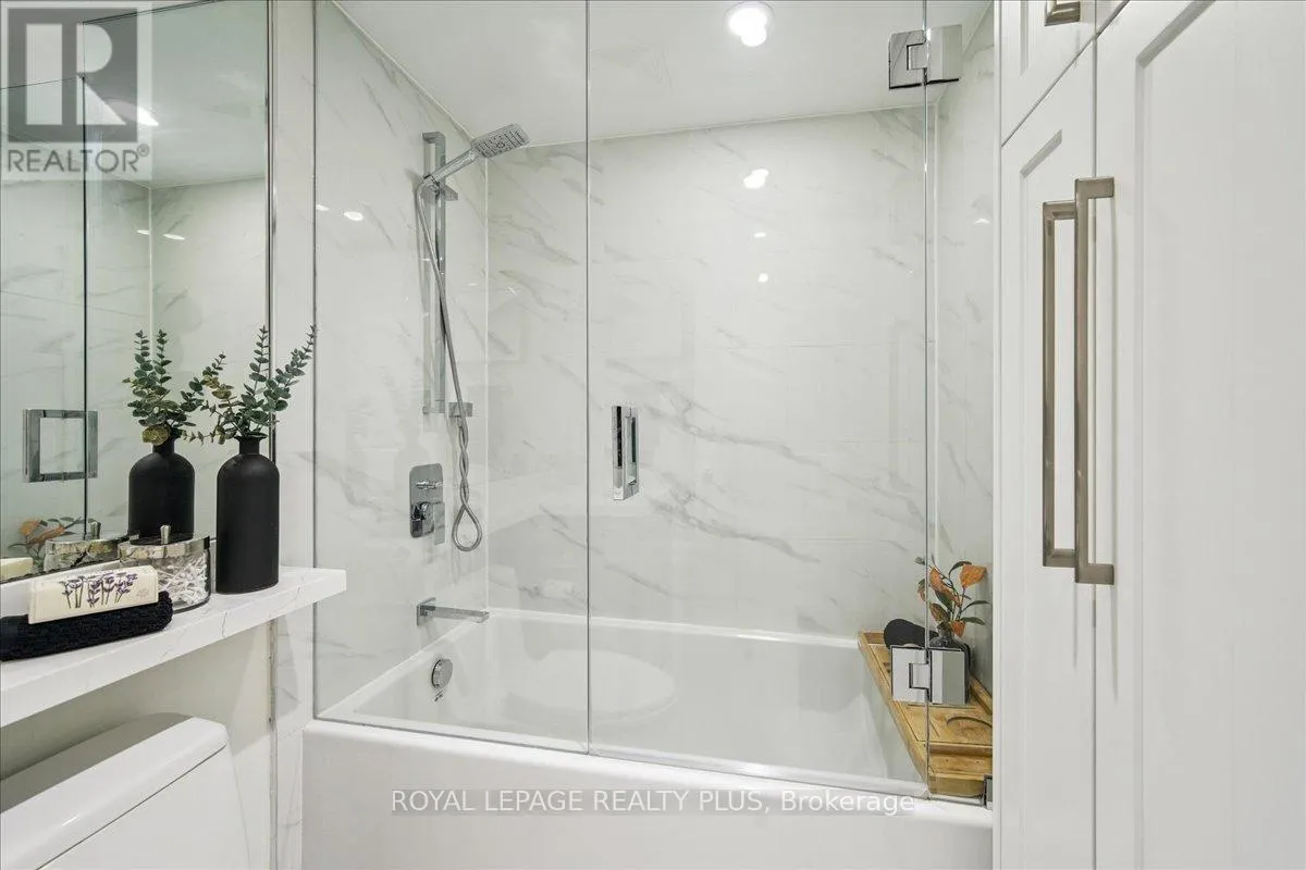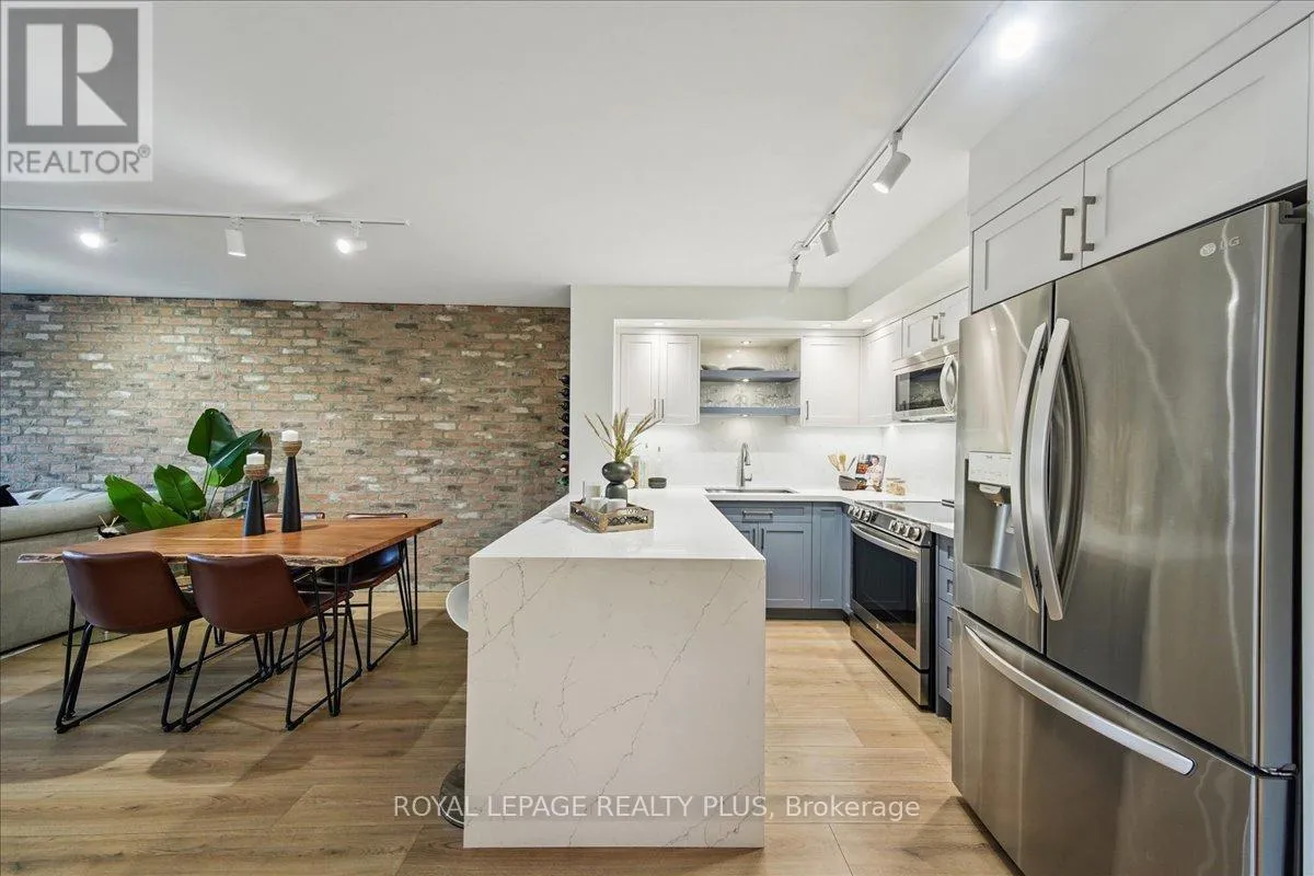 King St W and Strachan Ave Welcome to your new home! The Toronto condo market may be flooded, but this is the one worth swimming to. Functionality, sophisticated, classy charm & truly done top to bottom are all things that come to mind in this beautiful 1+1, 784sqft, modern home. Bring your pickiest client, they will leave saying "this is what we have been waiting for". It may be cliche, but it is the truth! Unobstructed forever views, no problem. CN Tower & Stanley Park, we have it. A space that ACTUALLY flows & makes sense, plus is big enough to host ALL your friends & family, we have you covered. Love King West? Walk outside your front door. Love restaurants? Stone throw away. Work in the city but want a little piece and quiet? Walk or take the street car, you're very close but still far enough away. Dogs? Let them out in your backyard, the dog park is essentially off the elevator. Parking & locker? Both are owned PLUS, your massive storage locker (it is truly huge), is connected to your parking space making all your storage needs ridiculously easy. We haven't even touched on the features! Completed renovated in 2021, new kitchen, new bathroom, new floors, custom closet organizers with two walk-in closets, entire unit freshly painted, a spacious den ready to be your home office, nursery or spare bedroom, endless potlights throughout & a brick feature wall that is truly a show stopper! It will not disappoint. Craving that vitamin D? Natural light floods this unit or just sit outside on your spacious balcony that overlooks the park & soak in the sun. Liberty Village, the waterfront, Stackt Market, Queen West, Trinity Bellwoods, the Ossington strip, the Gardiner, Lakeshore, Exhibition GO & the future Ontario Line at King & Bathurst, this location can't be beat! Lastly, look at those maintenance fees! Super low & well below the average, all while being in a low-rise boutique building with loads of amenities. Full List of ALL Features/Upgrades Attached. (id:27476)
