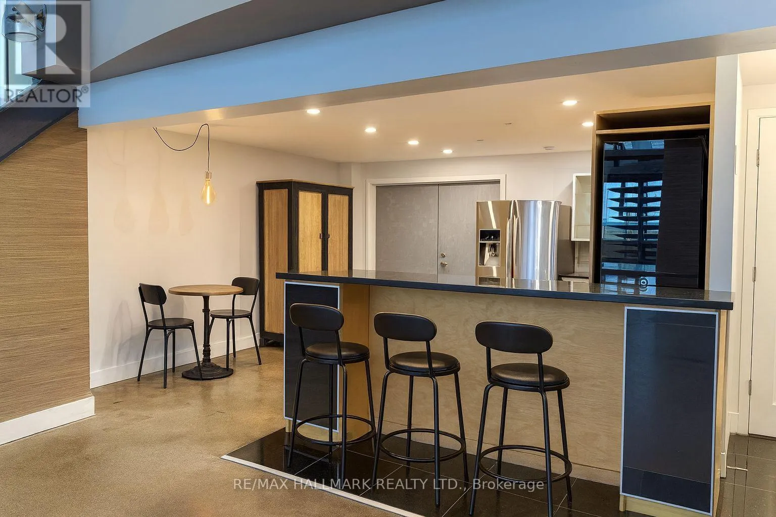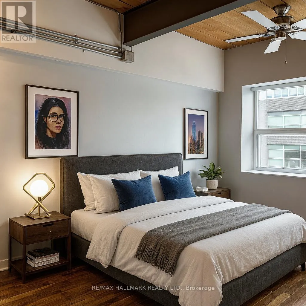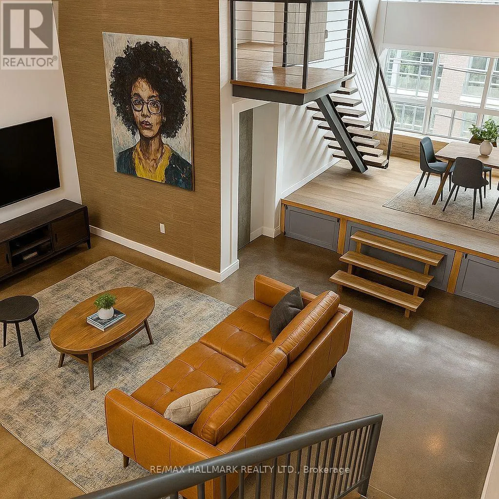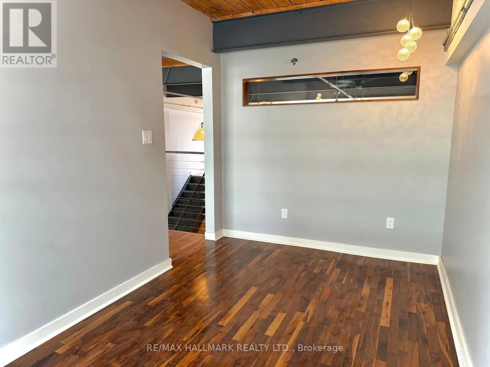 Cross Streets: Carlaw. ** Directions: South West side of Dundas St E & Carlaw Ave. Gorgeous 2 bedroom, 2 washroom hard loft in Leslieville's iconic Izone. This loft stands out with soaring 17 foot ceilings, two mezzanines, parking, locker, and a rare second entrance. This east facing layout has been thoughtfully updated with a large skylight, walk in closet, wood plank ceiling detail, and an open concept kitchen finished with Ceaserstone countertops. The raised dining area features new hardwood floors and a custom staircase that leads to the second bedroom. Newer AC unit as well. The private second entrance gives you direct access to your locker and a quick walk out to Carlaw Ave, then straight under to your dedicated parking spot. A rare chance to live or work in one of the most sought after loft conversions in the east end. True hard loft character with exposed elements, volume, and natural light throughout. Residents enjoy use of the rooftop party room, loading docks, and a creative, community driven building. All of this in the heart of Leslieville, steps to Queen Street's shops, restaurants, cafes, galleries, transit, and minutes to the DVP and the downtown core. Loft living at its best! Some photos are virtually staged. (id:27476)