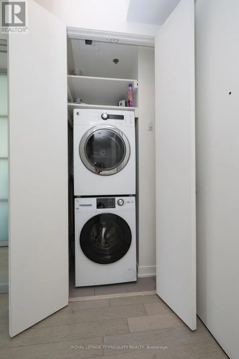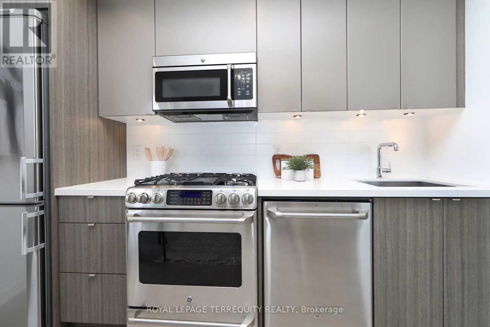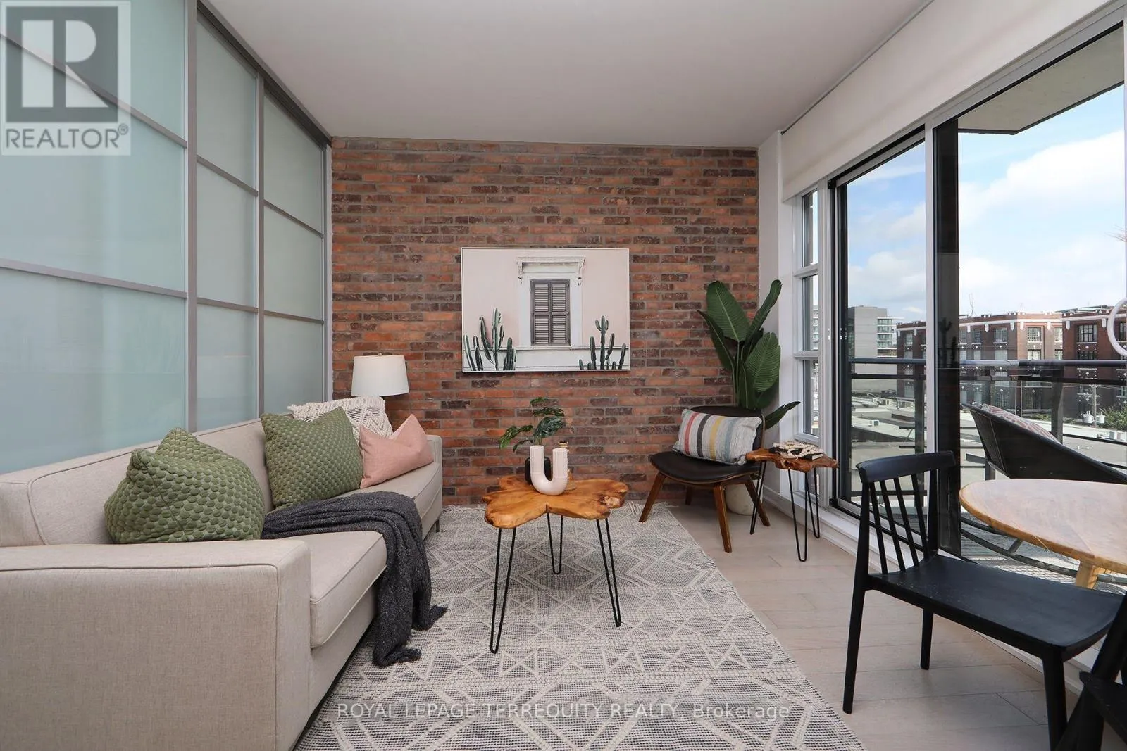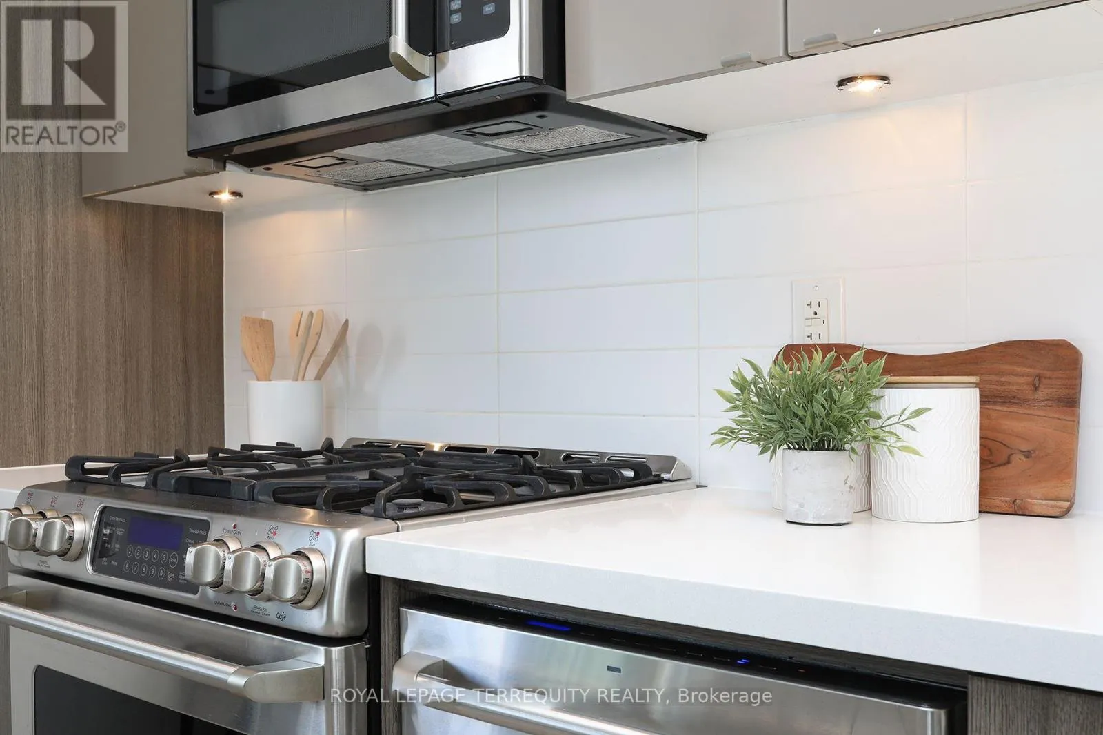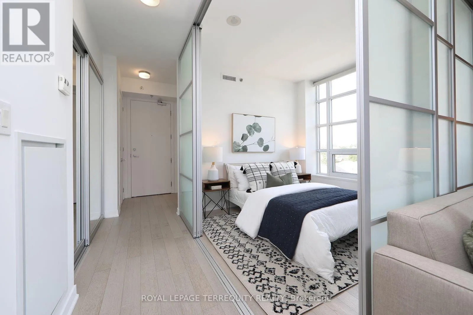 Cross Streets: Carlaw Ave & Queen St East. ** Directions: S of Carlaw. A rare find in the heart of Leslieville - this 1-bedroom corner suite wraps you in light from two exposures, north & east, thanks to an exclusive builder upgrade. At just the right height above the street, you'll feel the city's pulse yet enjoy your own quiet escape. Soaring 9-ft ceilings, a striking brick feature wall, and sleek stone counters set the stage for a home that's as stylish as it is comfortable. Sliding glass doors frame the bedroom, where a rare, large window floods the space with light - balanced by blackout blinds for those slow, indulgent weekends. Step onto your large, private balcony (not shared) with power and watch the neighborhood wake up. This suite includes a deeded parking spot, storage locker, and a bike storage locker - because life here calls for cycling to the market or down the Don Valley trails. The building's boutique charm comes with big amenities: a rooftop deck for sunset cocktails, a well-equipped gym, guest suites, concierge service, party room, theatre room, and visitor parking. Outside your door, Queen Street East buzzes with some of the city's best cafes, bars, and boutiques. Ascari, Crows Theatre, John Chang Park, and Jimmy Simpson Park are steps away, while the DVP and transit make Downtown or the Danforth feel impossibly close. This isn't just a home - its a front-row seat to the best of Toronto's east side. Stylish, effortless, and ready for your next chapter. (id:27476)