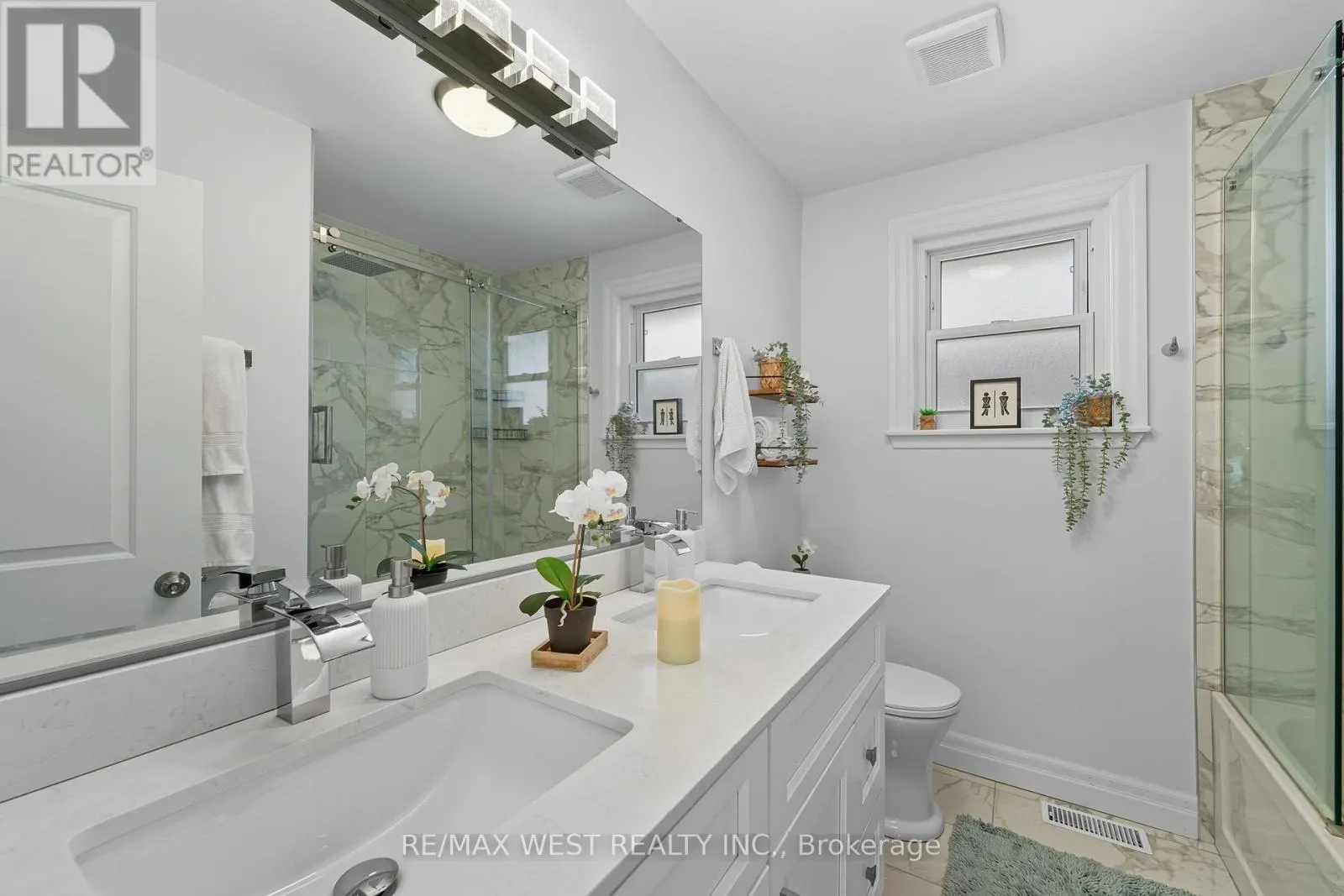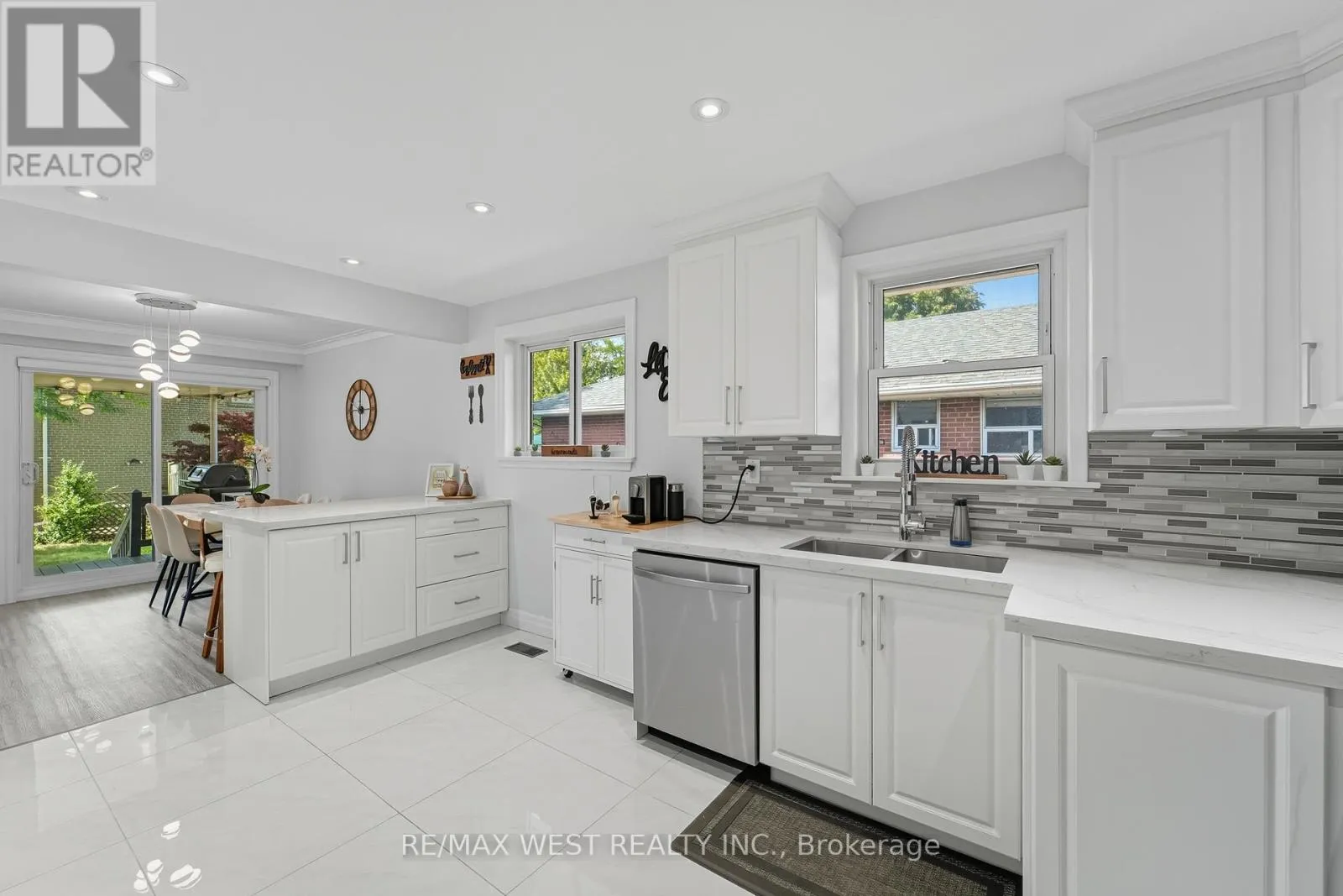 Martingrove/Jeffcoat This immaculate, owner-occupied bungalow features a separate basement entrance and has been continuously improved with pride of ownership evident throughout. The home's interior boasts a fully renovated, open-concept kitchen that flows seamlessly into the living room, creating an inviting space perfect for family gatherings and entertaining. The primary bedroom serves as a private retreat with a stylishly updated three-piece ensuite. New flooring extends throughout the home, complemented by recent appliance upgrades, including a new fridge, dishwasher, washer, and dryer. Outside, the curb appeal is enhanced by brand new interlock paving. Conveniently located near top-rated schools, major retail centers (Costco and Walmart), shopping plazas, Etobicoke Hospital, and Pearson Airport, this property offers both practical living and a desirable lifestyle-an excellent choice for any family. (id:27476)