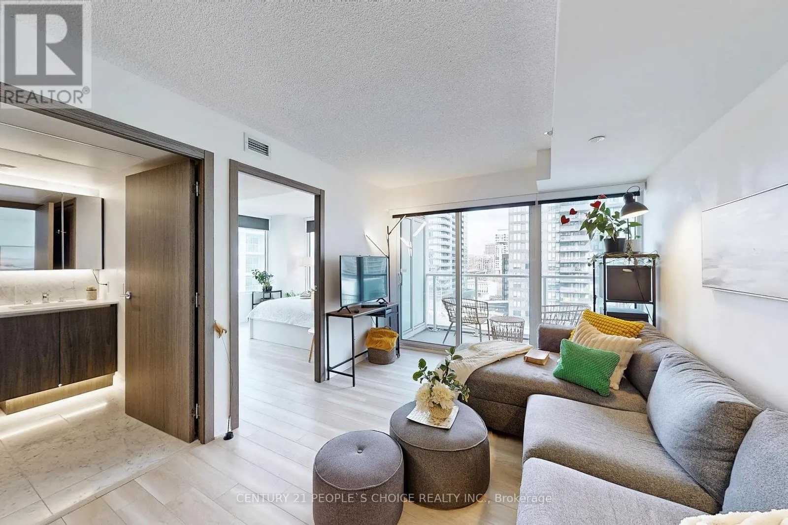 Bathurst St/Lakeshore Blvd The Lakefront is one of the most luxurious buildings at Downtown Toronto. This bright & spacious modern corner unit, 1+1 den w/ door & window, ideal as a 2nd bedroom or home office, 688SF + 40SF balcony. Trendy kitchen w/ Bosh appliances, quartz countertop; Mstr Br access to bathroom, W/I closet. Enjoy unbeatable convenience with streetcar access at your doorstep, and be minutes from transit, restaurants, the new Loblaws flagship supermarket, the Harbourfront, Gardiner/DVP, Rogers Centre, CN Tower and Union/GO Train Station. Luxury amenities include a spa, pool, gym, rooftop, garden and more. Additional features include a putting golf area, fitness center, myoga room, Sky Garden, Pet Play/Spa, Aquatic Centre, Kids Rm/Playground, Entertain w/ Karaoke, Music/Theatre Rm. B/I Bosh Fridge, Dishwasher, Cooktop, Oven, Range Hood, Microwave, Washer & Dryer. Marble Backsplash, Quartz Counters in Kitchen & Bathroom, Marble flooring in Bathroom & Wood Flooring Throughout. (id:27476)