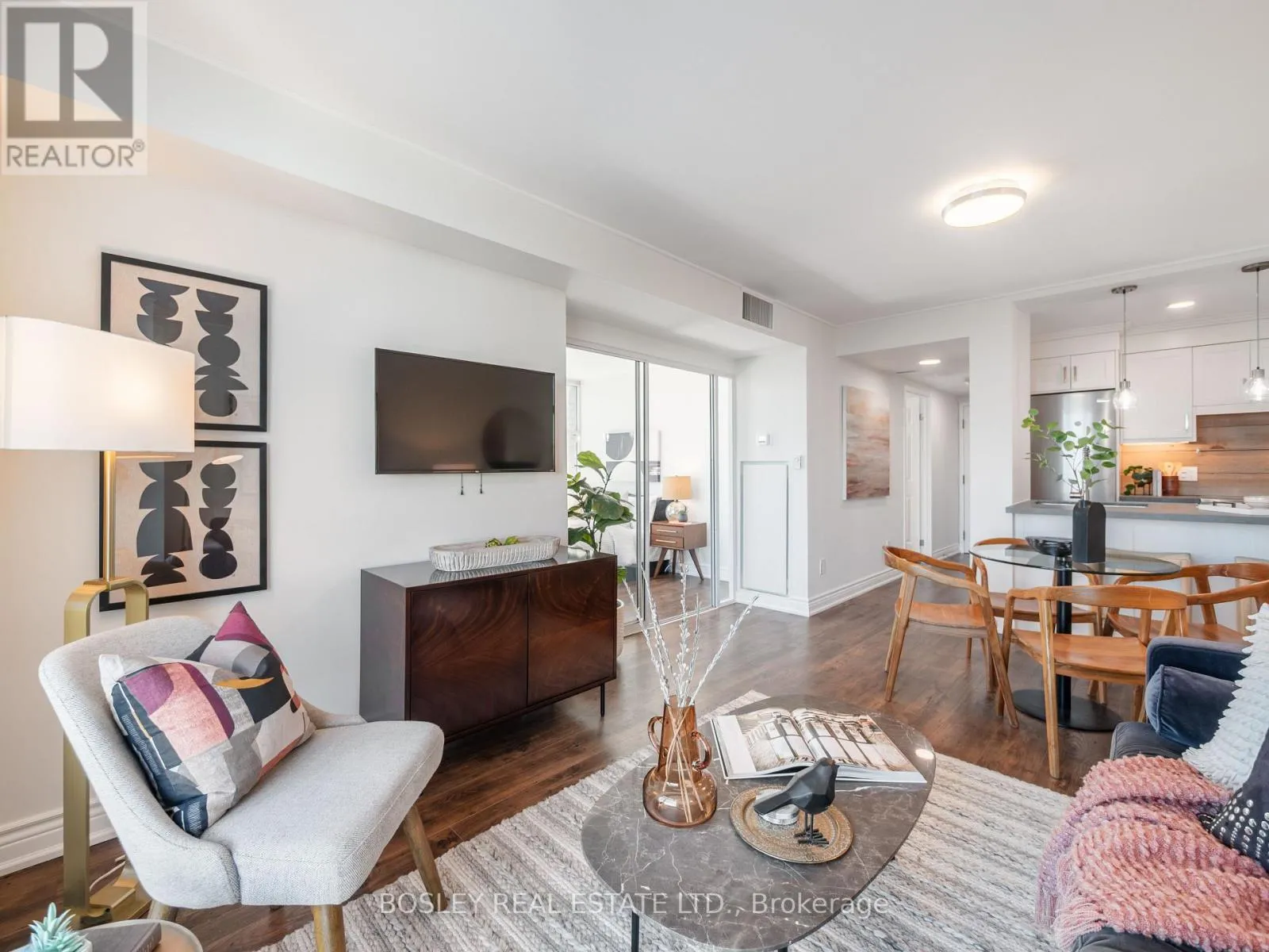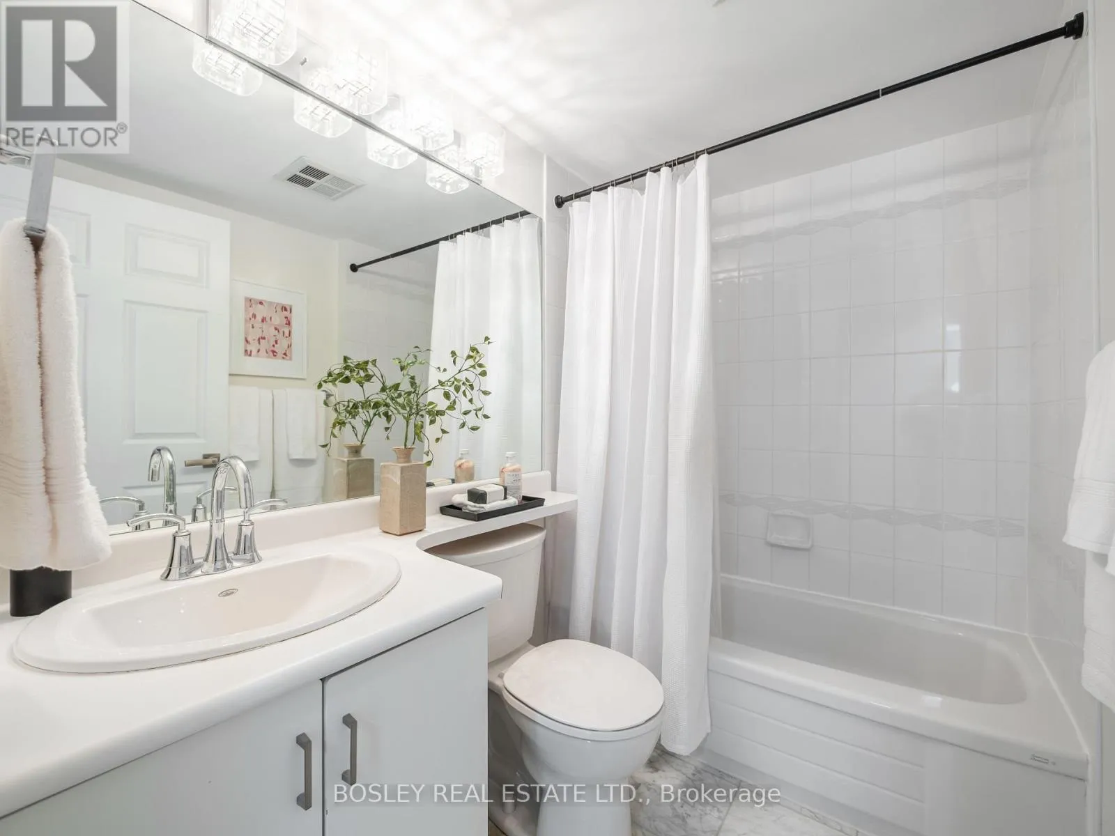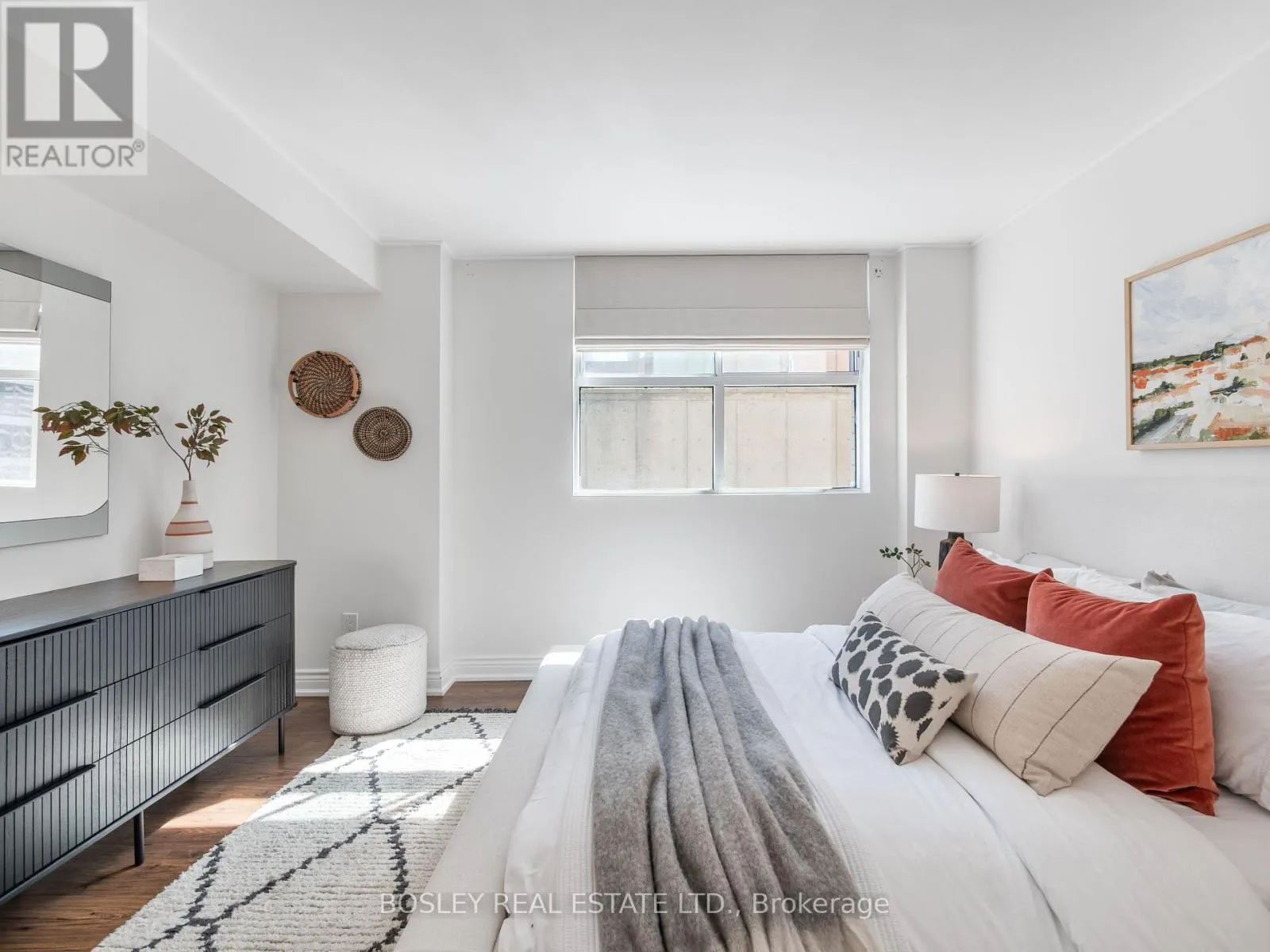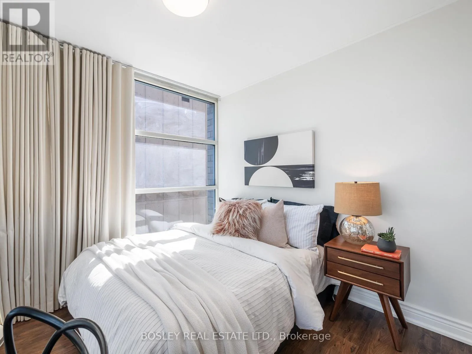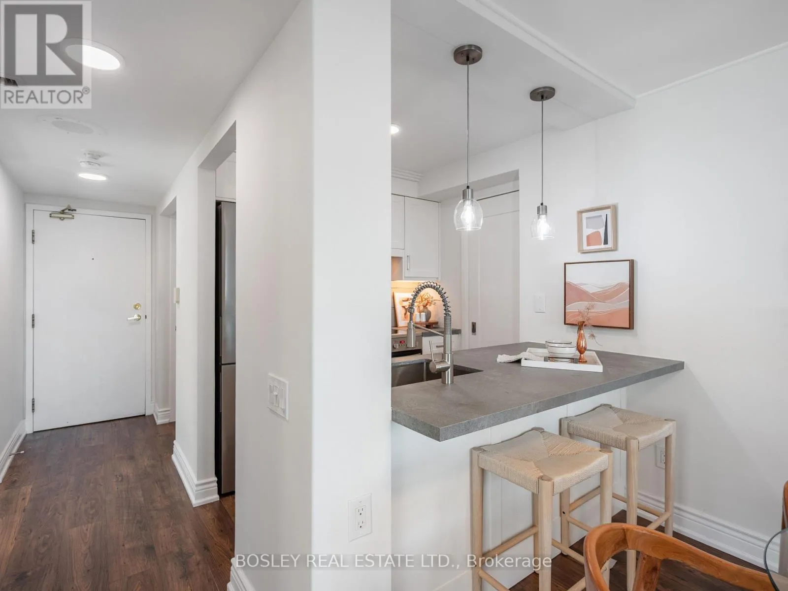 Cross Streets: Bloor St E & Sherbourne. ** Directions: Bloor St E & Sherourne. Welcome to The Rosedale! Nestled in a boutique condo of just 23 suites, this bright corner unit offers a 1 bedroom + large den layout, with the den easily working as a second bedroom or home office. The suite has been beautifully maintained and thoughtfully upgraded, featuring a renovated kitchen with wood detail backsplash and concrete-style countertops, wide plank laminate flooring, custom window coverings, and an oversized bedroom with double closets and custom inserts. East-facing windows flood the space with natural light throughout the day. And the location can't be beat! Just steps to TTC, Yonge and Bloor, Yorkville, shops, restaurants, and easy access to the DVP. (id:27476)