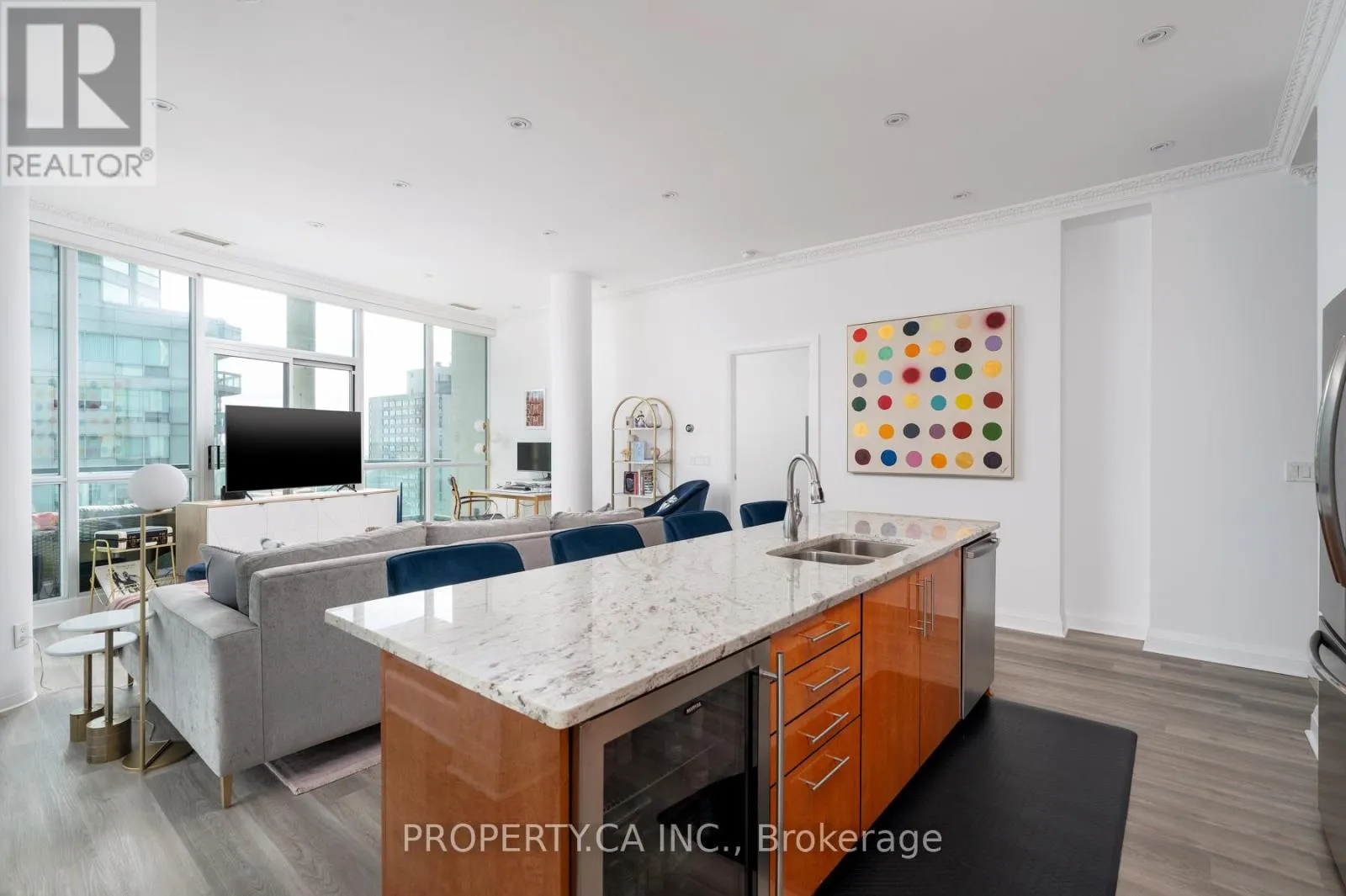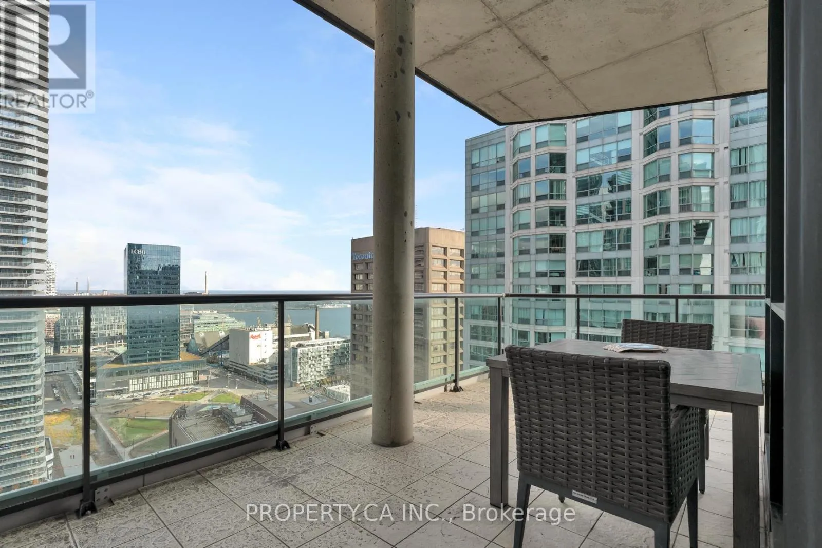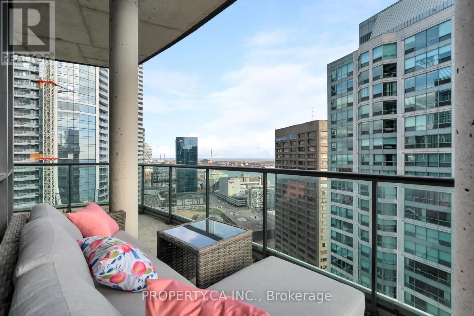 Cross Streets: Yonge & Harbour. ** Directions: Pinnacle Centre. Welcome to Pinnacle Centre, where waterfront living meets downtown convenience. This beautifully updated 2-bedroom (plus private den) and 2-bathroom corner suite offers over 1,200 square feet of bright interior living space with rare 10-foot ceilings and an oversized wraparound terrace. It is located on the coveted top floor and features southeast exposure, flooding the home with natural light throughout the day, while the terrace extends your living and entertaining space. The kitchen and open-concept living area are perfect for hosting, featuring newly upgraded granite counters, a refreshed backsplash, quality stainless steel appliances and a Marvel wine fridge. The primary bedroom is a true escape with a huge walk-in closet and a full 6-piece ensuite washroom. Recent improvements include new flooring, a complete repaint, granite counters, as well as a new fridge, gas cooktop, and washer/dryer. Just a two-minute walk to Union Station, with easy access to the lakefront, highway and a short stroll to the Financial and Entertainment Districts, close to everything, yet pleasantly removed from the downtown rush. The unit includes one parking space, one locker, and maintenance fees that cover all utilities. This is a standout suite in an unbeatable location. (id:27476)