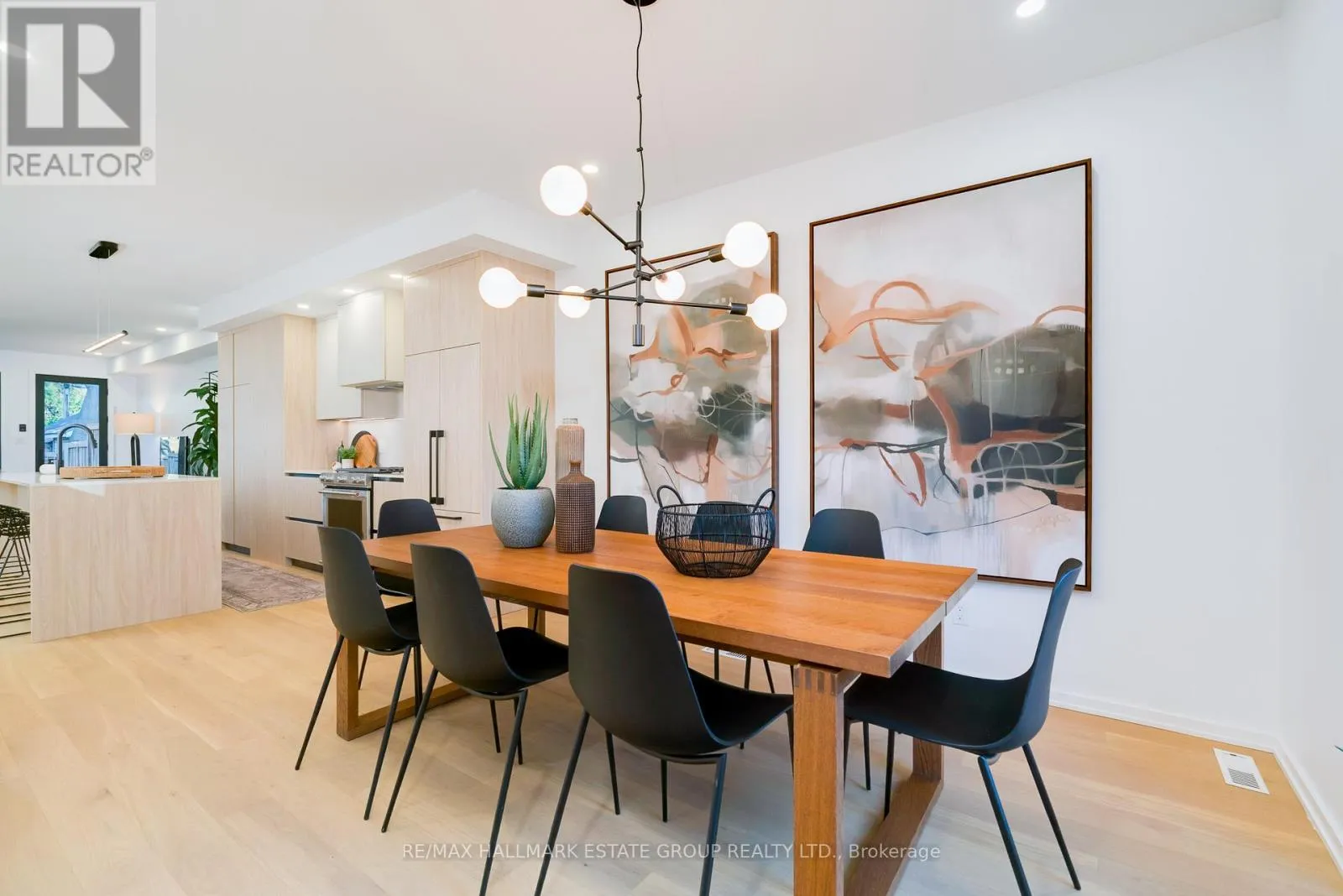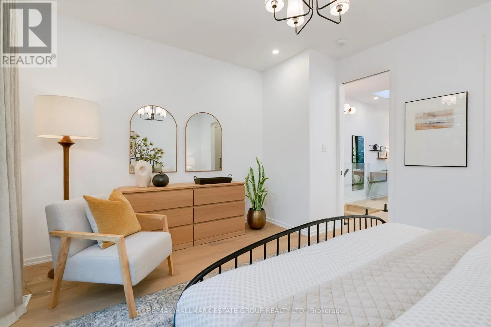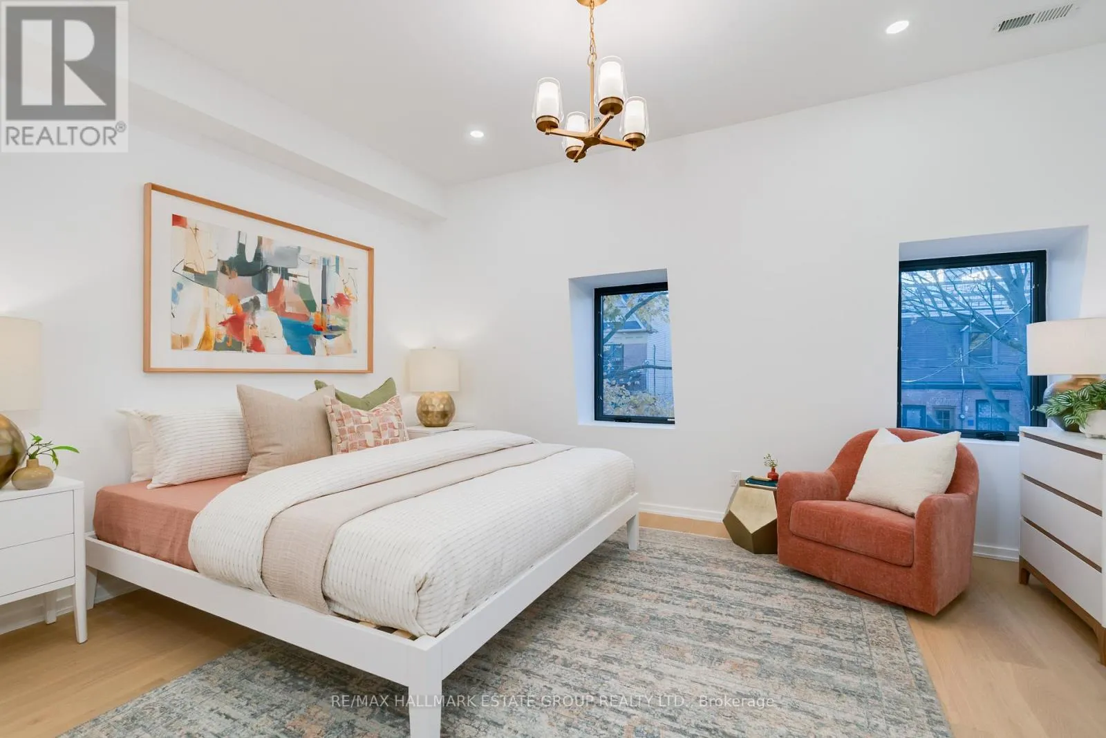 Cross Streets: Queen St E & Broadview Ave. ** Directions: S of Queen St E. Not just stylish, but smart: this cleverly designed Leslieville renovation breaks the rules with edge and attitude. This 4+1 bedroom + office, 5-bath stunner delivers style for days, a basement that stretches on forever, and the rare luxury of 2-car parking, with a electric roll up fence and grass block pavers that create a green parking pad that's beautiful, functional and eco-friendly (genius!). Behind its fabulous Victorian façade, a sleek modern addition ensures period curb appeal, while glass railings set the tone for contemporary chic. Step inside to main floor magic: custom entry millwork, wide-plank white oak floors, jaw-dropping modern windows, and a perfectly practical powder room. The kitchen is pure envy-two-tone Muti flat-panel cabinets, a show-stopper island with seating for the whole crew, integrated appliances, a 6-burner gas cooktop, and stone counters that beg for entertaining. The living space is equally impressive, with floor-to-ceiling windows and room for your biggest sectional (yes, bring the big one). Light pours through soaring ceilings up and down, complemented by iconic Muti built-ins and white oak floors throughout. The primary suite is a spa zone dream, boasting custom closets, a fluted double vanity, a stand-alone tub, and a seamless walk-in shower. Next to the primary is a sun-filled dedicated office space away from the rest of the home with a large deck! Every bedroom is a treat, with closets galore, a guest suite complete with ensuite, and a main bath so organic you'll want to drop straight into downward dog. Bonus moments abound: second-floor laundry (praise be!), and a lower level that checks every box-high ceilings, a massive rec room, huge windows, a spa bath, and a spacious bedroom that could double as a home gym, with ceiling height to spare for your treadmill. Live your best Leslieville life in a home that blends Victorian charm with modern brilliance, offering space, light, convenience and style at every turn. (id:27476)