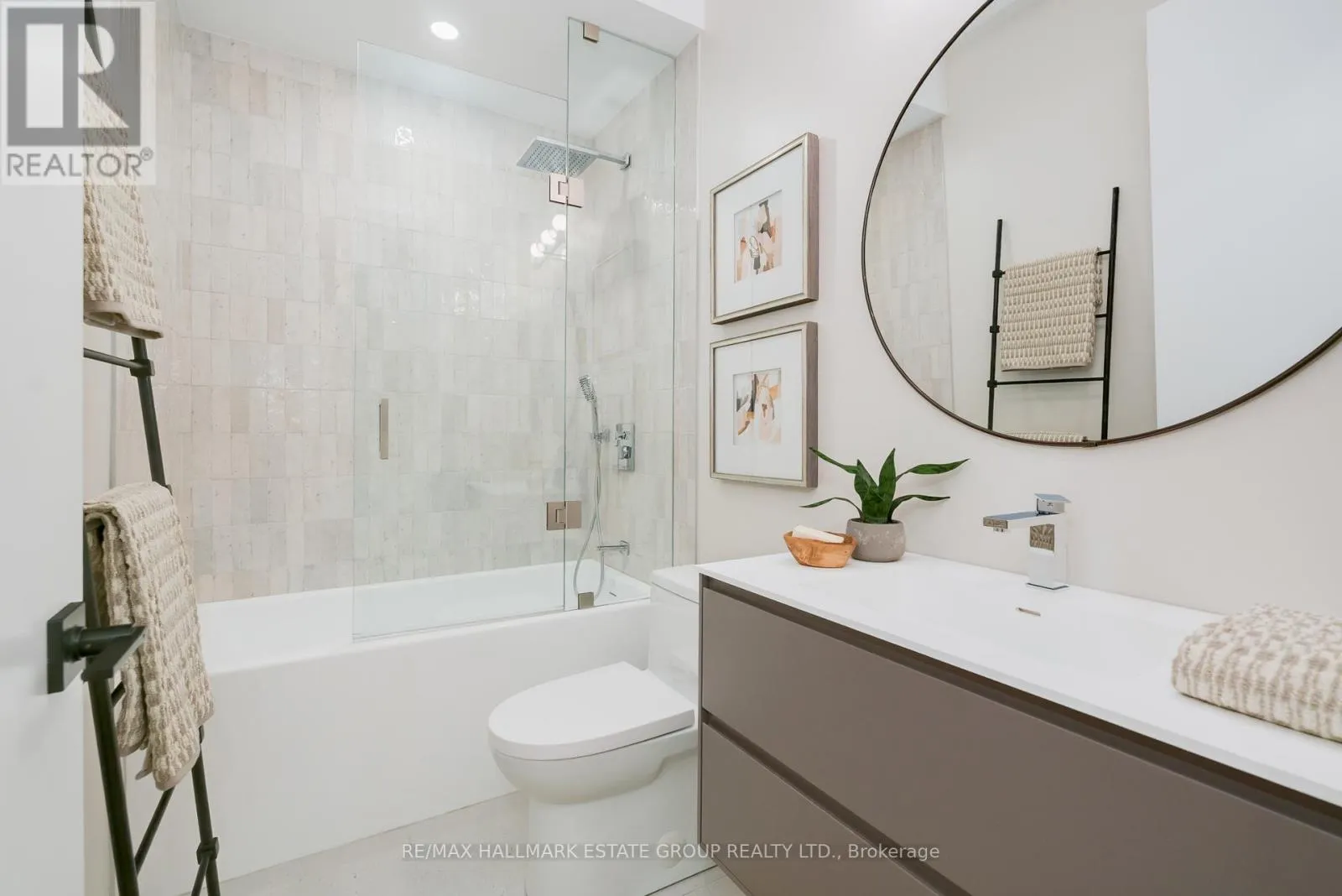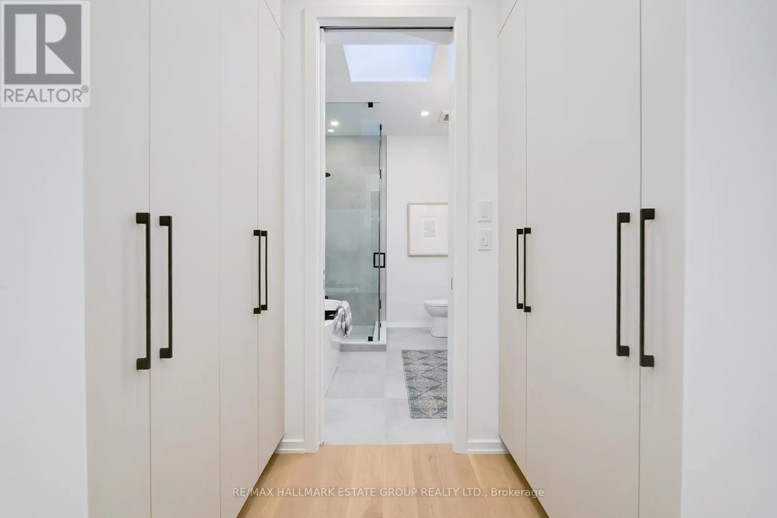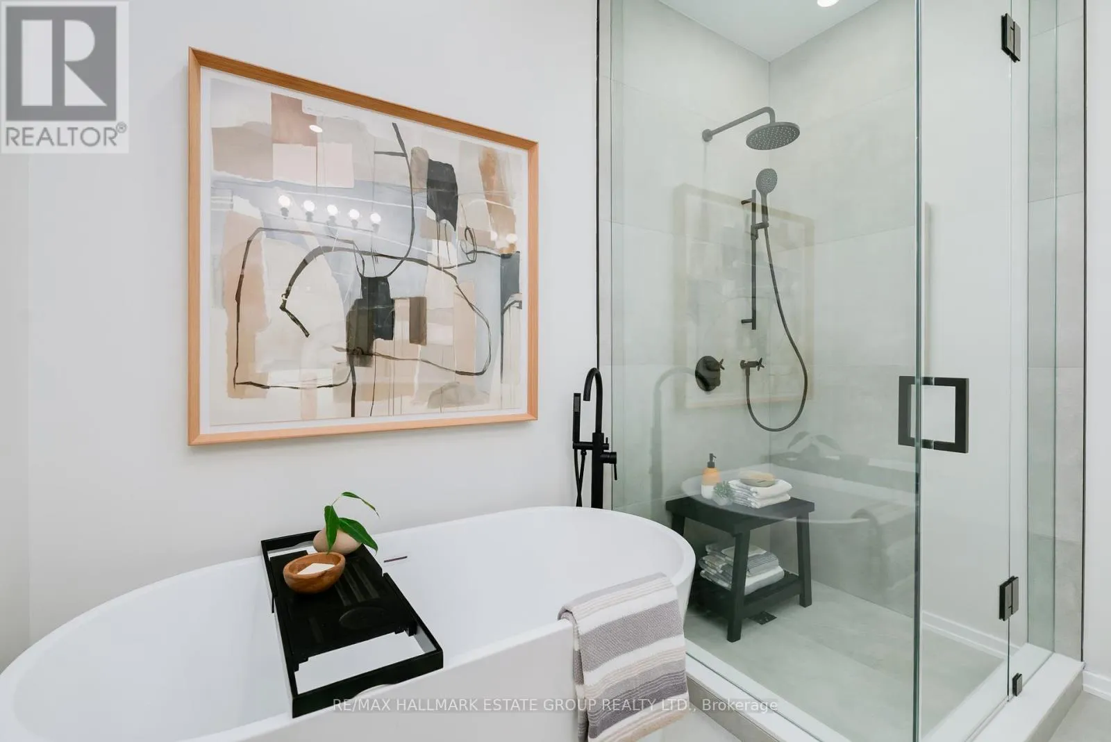 Cross Streets: Queen St E & Broadview Ave. ** Directions: S of Queen St E. Not just stylish, but smart: this cleverly designed Leslieville renovation breaks the rules with edge and attitude. This 4+1 bedroom + office, 5-bath stunner delivers style for days, a basement that stretches on forever, and the rare luxury of 2-car parking, with a electric roll up fence and grass block pavers that create a green parking pad that's beautiful, functional and eco-friendly (genius!). Behind its fabulous Victorian façade, a sleek modern addition ensures period curb appeal, while glass railings set the tone for contemporary chic. Step inside to main floor magic: custom entry millwork, wide-plank white oak floors, jaw-dropping modern windows, and a perfectly practical powder room. The kitchen is pure envy-two-tone Muti flat-panel cabinets, a show-stopper island with seating for the whole crew, integrated appliances, a 6-burner gas cooktop, and stone counters that beg for entertaining. The living space is equally impressive, with floor-to-ceiling windows and room for your biggest sectional (yes, bring the big one). Light pours through soaring ceilings up and down, complemented by iconic Muti built-ins and white oak floors throughout. The primary suite is a spa zone dream, boasting custom closets, a fluted double vanity, a stand-alone tub, and a seamless walk-in shower. Next to the primary is a sun-filled dedicated office space away from the rest of the home with a large deck! Every bedroom is a treat, with closets galore, a guest suite complete with ensuite, and a main bath so organic you'll want to drop straight into downward dog. Bonus moments abound: second-floor laundry (praise be!), and a lower level that checks every box-high ceilings, a massive rec room, huge windows, a spa bath, and a spacious bedroom that could double as a home gym, with ceiling height to spare for your treadmill. Live your best Leslieville life in a home that blends Victorian charm with modern brilliance, offering space, light, convenience and style at every turn. (id:27476)