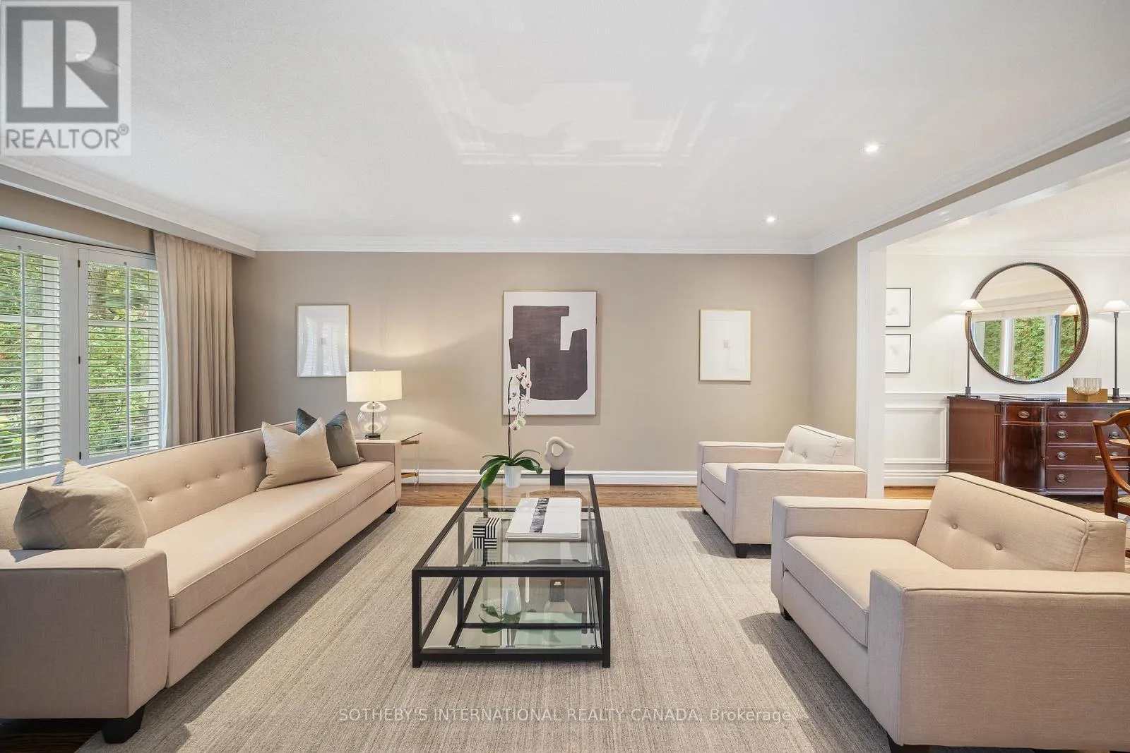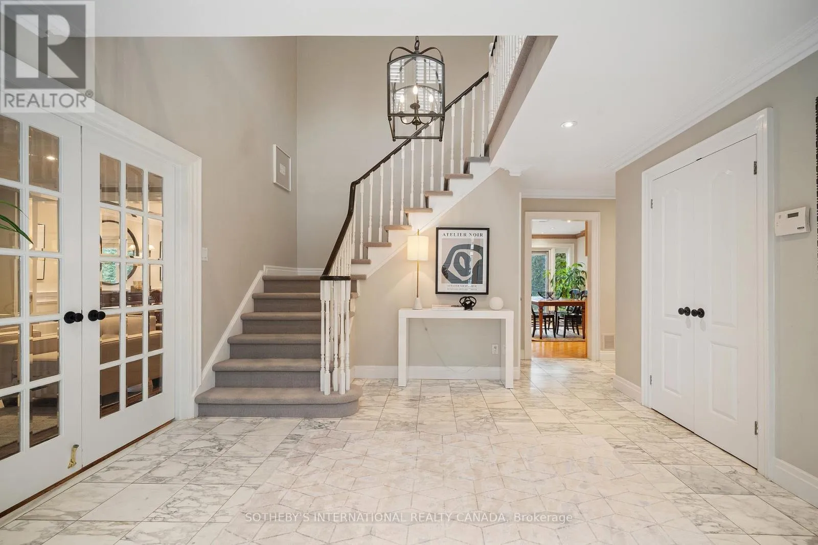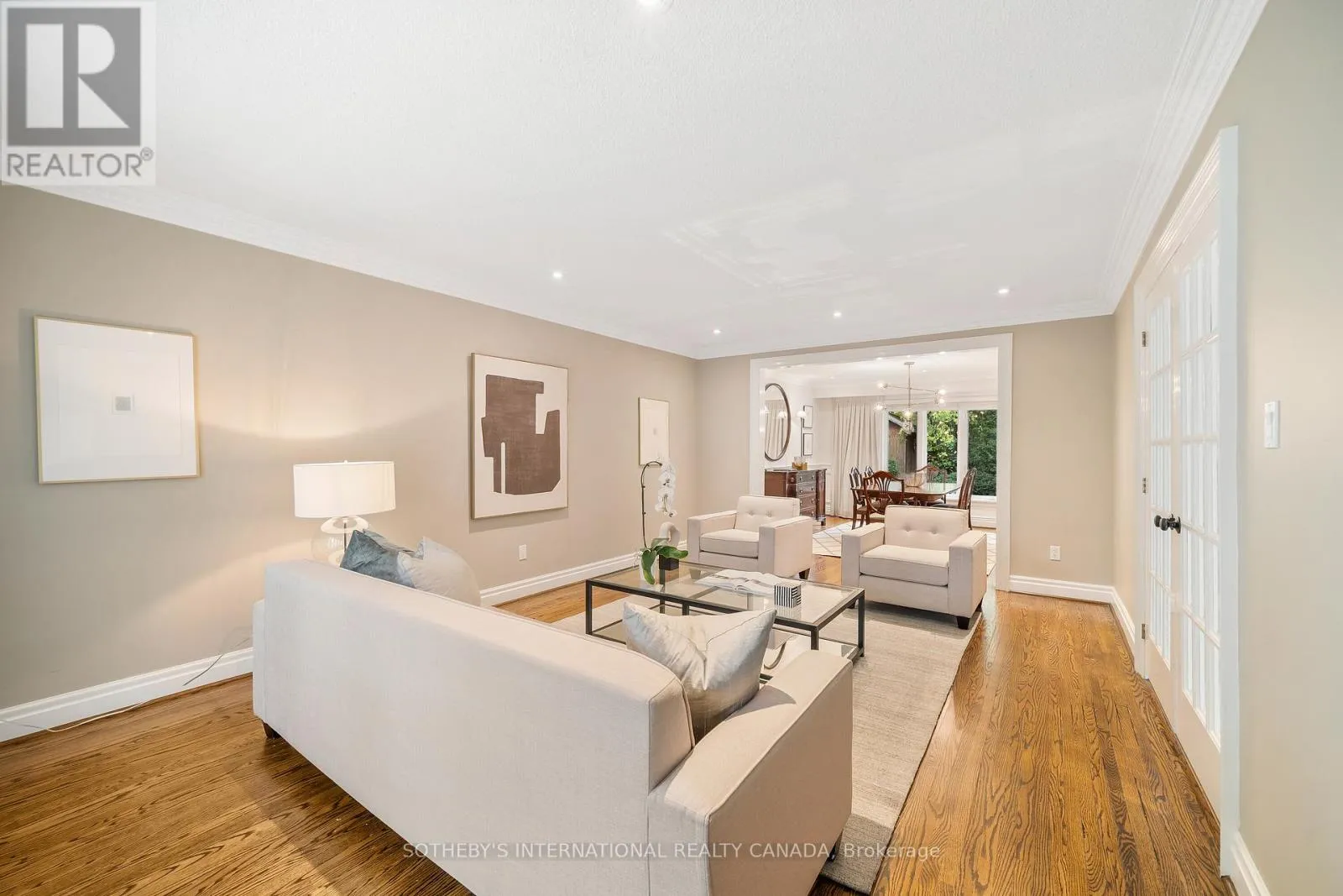 Cross Streets: York Mills and Leslie. ** Directions: Go north from Denlow on Caravan and turn right. Bright, expansive and perfect for everyday living. Nestled on a quiet tree-lined crescent where families strive and community runs strong, walk to Denlow school and Banbury community centre and park. Fabulous landscaped front garden full of perennials and a basketball hoop on the double drive. Lovely double door entrance, skylight, marble floors and 3 double hall closets. It also boasts formal living and dining rooms with hardwood floors and built-in sound system. This larger than most 4 + 2 bedroom home with 5 bathrooms, 2 ensuites ,offers recent updates and graceful functionality with its extra 4 foot addition across the back of the kitchen and family room. As a result you get modern family living with an extra large eat-in kitchen with a walk-out to fenced back garden and a larger family room with gas fireplace. The most recent upgrades, refreshed laundry room with separate side door entrance, brand new main floor powder room and basement finished with a large recreation/tv room and 2 more bedrooms, 3 piece bathroom, a walk-in cedar closet among the ample storage. The Large primary has a wall to wall built-in closet with drawers, shelves and hanging, walk-in closet and newer ensuite with heated floors and a heated towel rack. Three more bedrooms, one with a built-in desk, drawers and shelves and another with a newer ensuite. All three are a good size and have double closets.Fabulous family home in the coveted Denlow area. (id:27476)