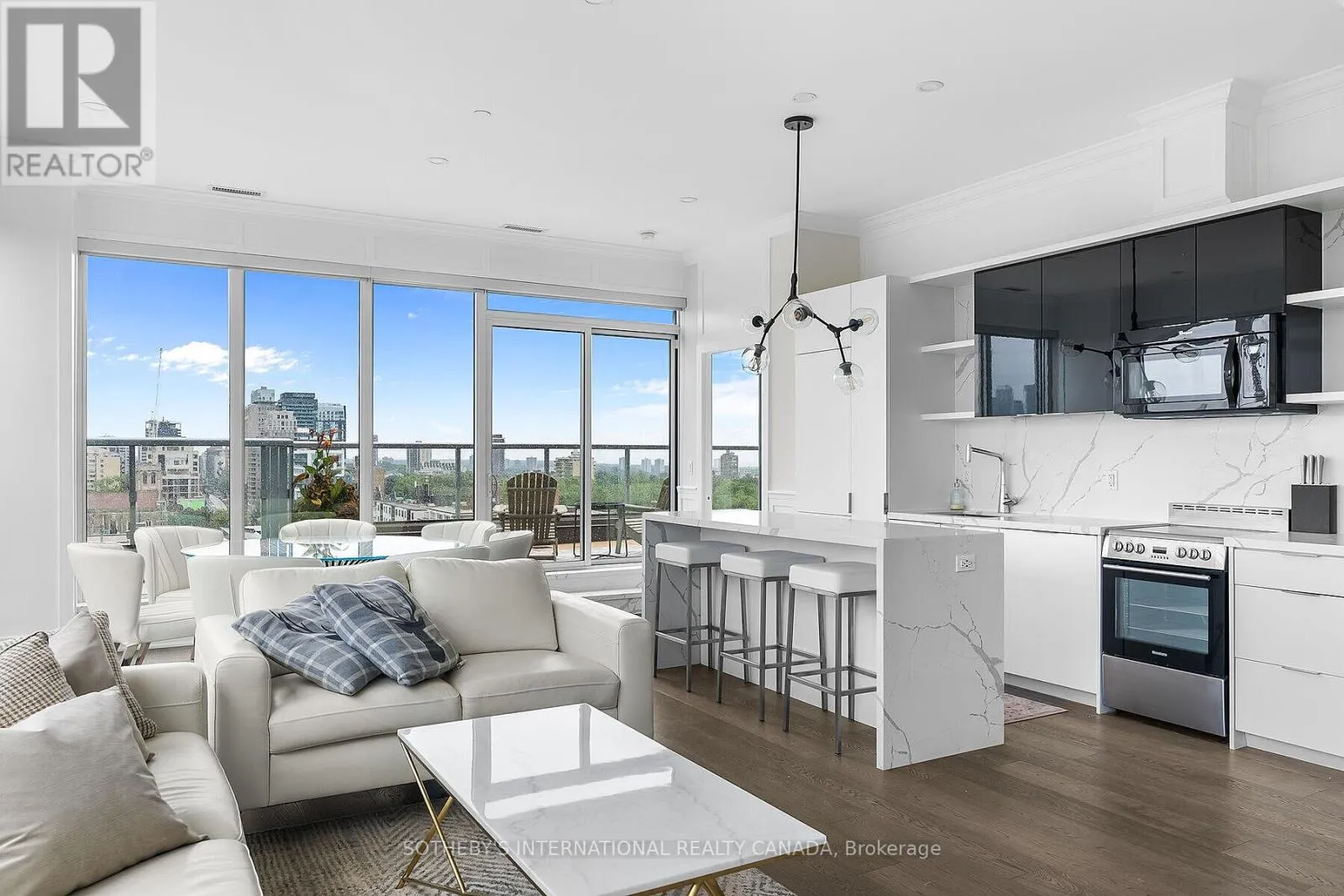 Cross Streets: St. Clair & Spadina. ** Directions: Please, follow your GPS. Truly one of the best terraces in Forest Hill. Welcome to the penthouse at 6 Parkwood Ave overlooking some of the most high end real estate in Toronto. This 2 bed 2 bath corner unit is flooded with natural light with 10ft ceilings and floor to ceiling windows. 1400 square feet of interior living space creates perfect flow due to the open concept living, dining, kitchen and split bedroom layout. Multiple walkouts bring you out to a jaw dropping 1400 terrace with multiple living/dining spaces, bbq, views of the CN tower and mansions of Forest Hill.Protected open views over the treetop makes for unparalelled privacy. The primary bedroom has a modern 5 pc ensuite and oversized walk-in closet. No need to lift a finger after moving in because this unit comes fully furnished! (id:27476)