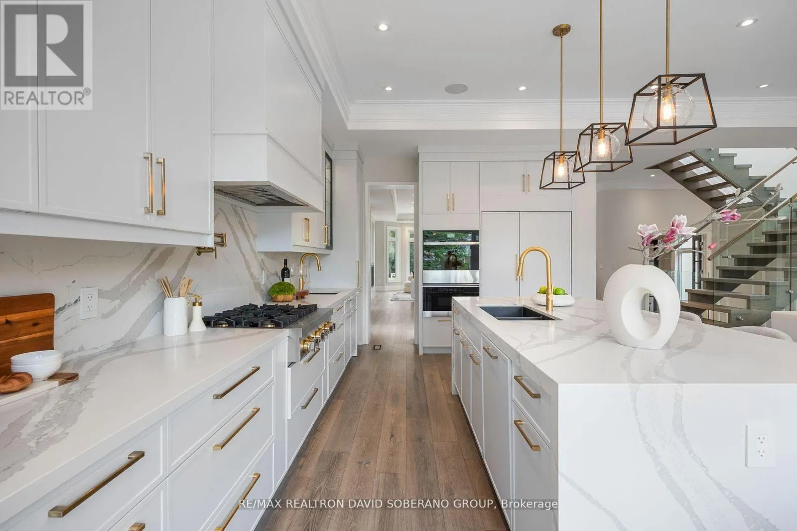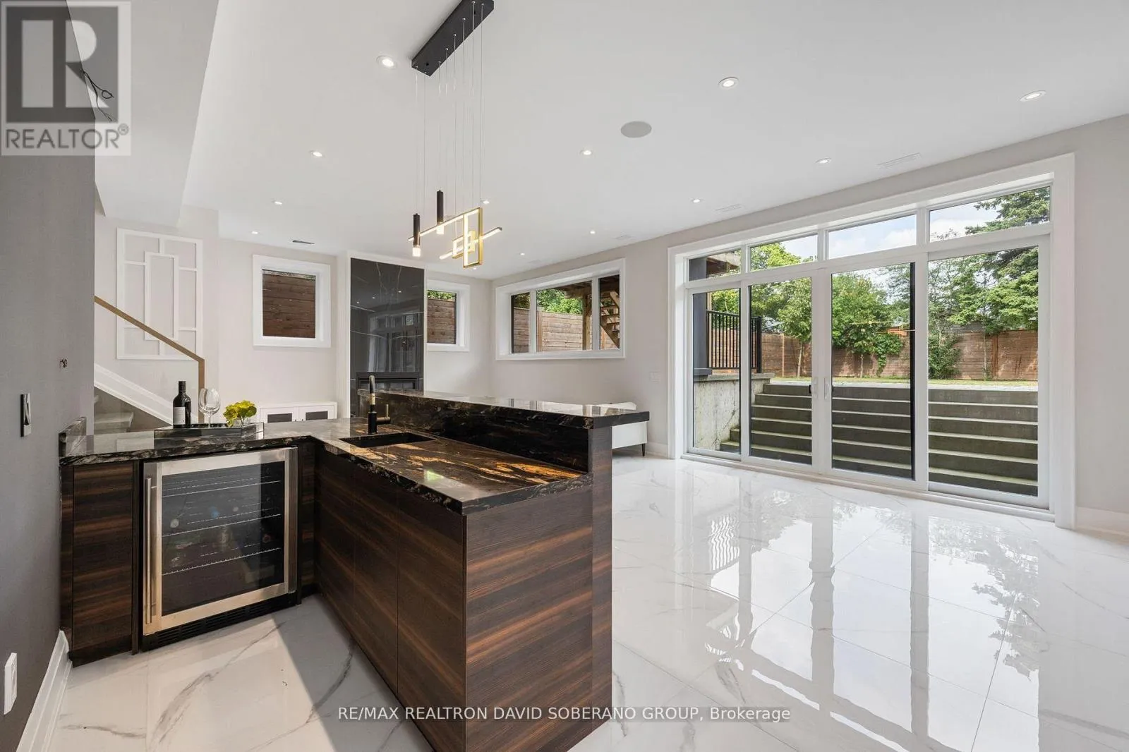 Wilson/Bathurst Welcome to 106 Allingham Gardens, a truly exceptional custom-built residence set on a rare & coveted 44' by 156', pool sized lot in the heartofClanton Park. Offering approximately 3,600 square feet above grade, this home showcases uncompromising craftsmanship, thoughtfuldesign, &luxurious finishes at every turn. From the moment you enter, you are greeted by 10' ceilings on the main floor, expansive open conceptlivingspaces, and an abundance of natural light streaming through oversized windows and five dramatic skylights. Wide plank hardwoodflooring, astriking feature fireplace, & meticulously crafted millwork and stonework elevate the ambiance throughout. The gourmet kitchen is atrue showstopper equipped with top of the line appliances, custom cabinetry, and an impressive island perfect for both grand entertaining &everydayliving. Upstairs, the home continues to impress with a spectacular central skylight that floods the level with light. The primary suite isanindulgent retreat featuring a spa inspired 5 pc ensuite, a sensational walk in dressing room, & an elegant makeup vanity. Eachadditionalbedroom offers its own private ensuite and custom closet, while a full second floor laundry room with sink provides convenience &practicality.The lower level is designed for versatility and style, featuring high ceilings, radiant heated floors, and an oversized walkout that fillsthe spacewith natural light. A sleek bar with sink, a spacious recreation area, two additional bedrooms, a 3 pc bathroom, and a second laundryroomcomplete this impressive level. This home is also equipped with CCTV security cameras for peace of mind, a smart garage dooropenercontrollable from your phone, and a huge double car driveway providing ample parking. Outside, the expansive backyard offersendlesspossibilities for a dream outdoor oasis, with abundant space for a pool, cabana, & garden retreat. Located close to Yorkdale Mall, parks,toprated schools, transit & more. (id:27476)