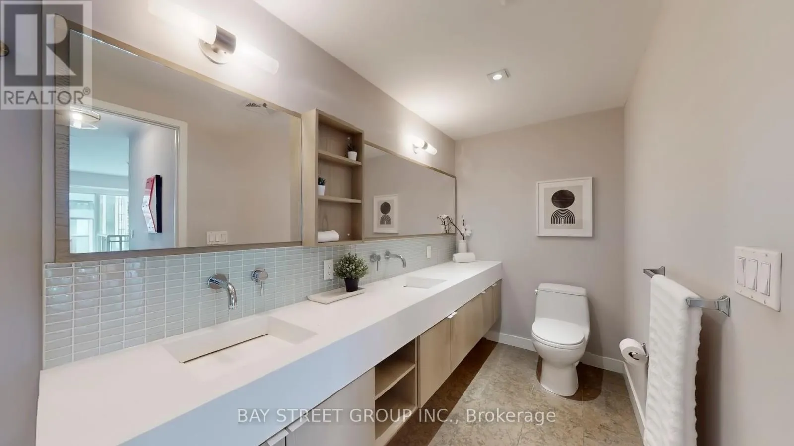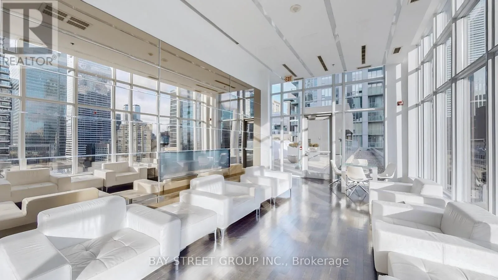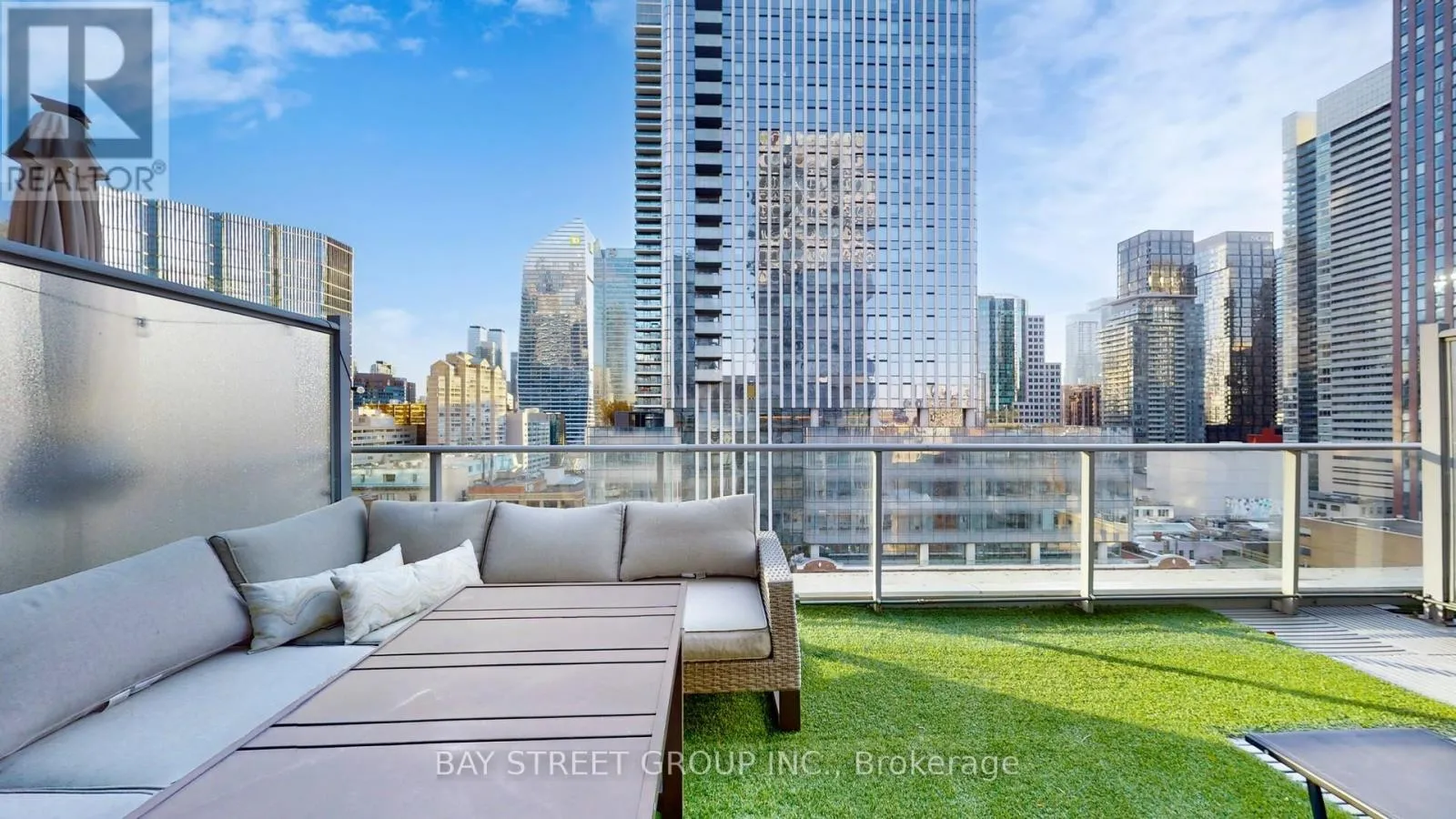 Cross Streets: Richmond/University. ** Directions: Follow google maps. Stunning south-facing 2-storey upper penthouse with dramatic floor-to-ceiling windows flooding the space with natural light. Features an oversized 240 sq ft terrace with BBQ-perfect for entertaining. The main level offers an open-concept layout with hardwood floors and a combined kitchen/living area. The second-floor primary suite includes a dedicated office area, a walk-in closet, and a spa-inspired ensuite. Comes with Tandem 2-car parking and Automatic Blinds, All just steps to the subway and Toronto's Financial & Entertainment Districts. (id:27476)