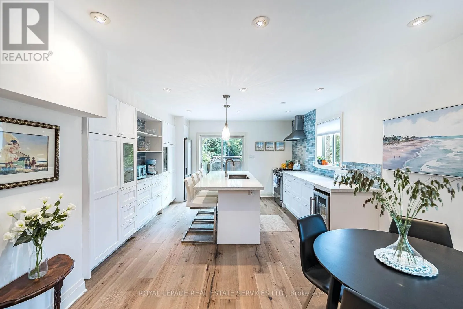 Cross Streets: Lake Shore Dr and Seventh St. ** Directions: Just North of Lake Shore Dr and the Lake. Just steps to the Lake - this simply delightful, recently renovated home offers turn-key living, stylish updates & modern decor! This captivating, 3-bedroom, 2-bathroom home is literally a stone's throw from the Lake; it is the 1st house from Lake Shore Dr, the Waterfront Trail, and lakeside Cliff Lumsden Park with spectacular sunrises and panoramic views of Toronto's skyline. Imagine the joy of walking the dog, feeding the ducks, skipping pebbles and seeing sailboats coasting by while strolling, cycling or jogging along the Waterfront Trail! The open-concept main floor was renovated in 2022 and is a bright, open-concept living space that is perfect for everyday family living and entertaining alike. The gorgeous, well-appointed chef's kitchen offers an abundance of timeless shaker-style cabinets, loads of counter space, a large island complete with a wine fridge and a walk-out to a sunny, west-facing backyard with an impressive, 2-level deck and Jacuzzi hot tub. It is a perfect place for BBQing with family and friends! The 2nd floor is freshly painted in Cloud White by Benjamin Moore and enjoys 3 comfortable bedrooms, including a 'King-sized' primary bedroom with wall-to-wall closets. The exquisite 5-piece bathroom offers a separate bathtub, shower and double sinks. The lower level was refreshed in 2024 and enjoys a fitness area with laundry closet, a cozy rec room, a home office nook, a 4-piece bath, a utility room and storage. Best of all, the basement has soaring 8-foot ceilings. Additional updates also include front yard hardscaping with inlaid pavers ('24); resurfaced private driveway ('22), re-shingled roof ('20), new front porch & a refreshed 2-tiered back deck. Steps to schools, pools, shopping & public transit. And, it's just a short commute downtown. Dreaming of living near the lake? Dream no longer! Now you too can enjoy the excitement of Life-by-the-Lake! (id:27476)