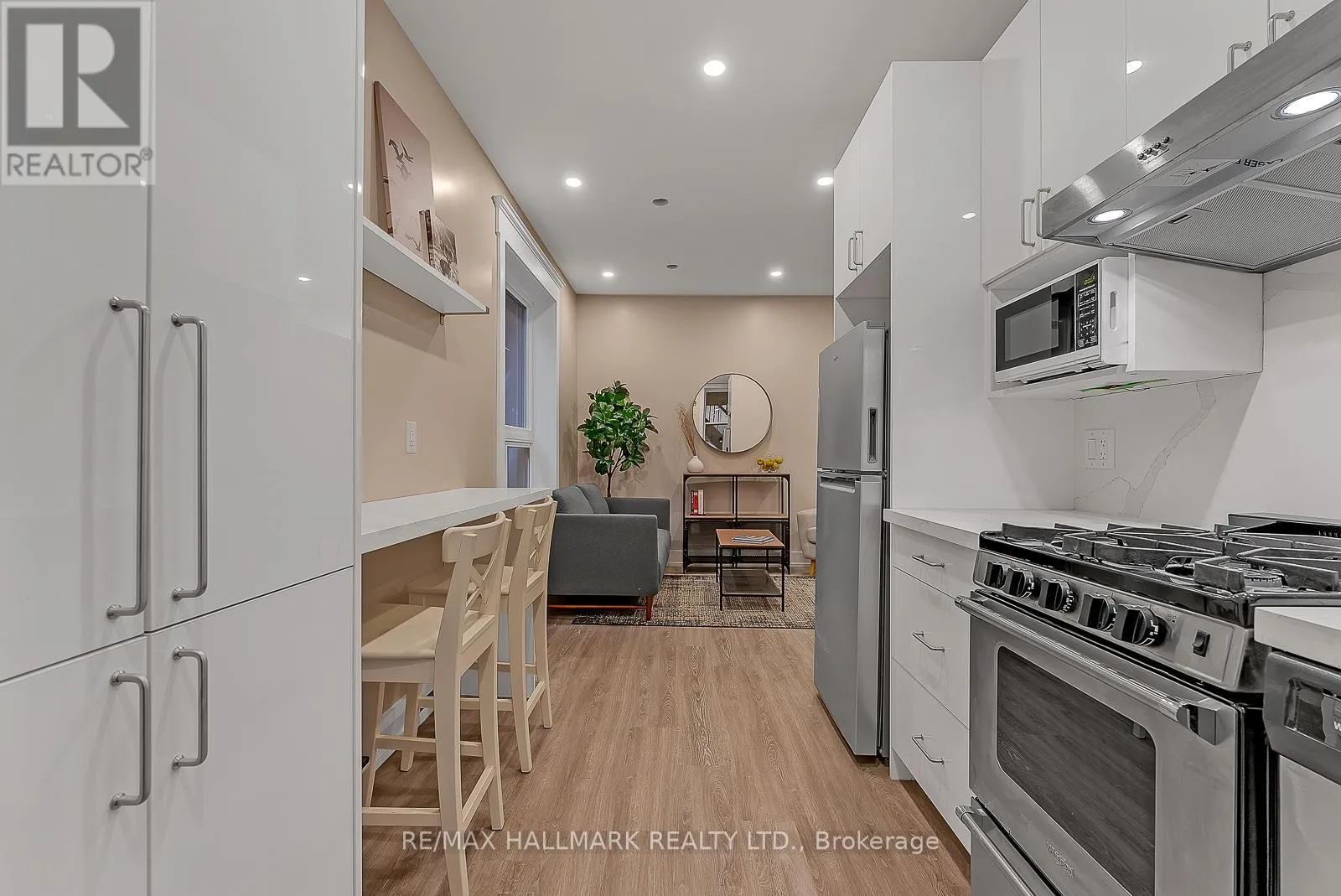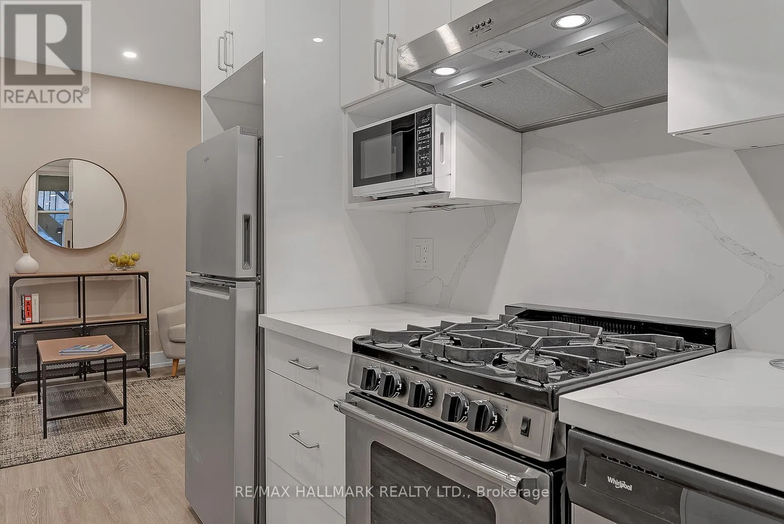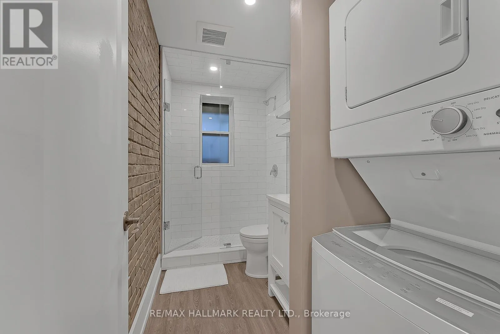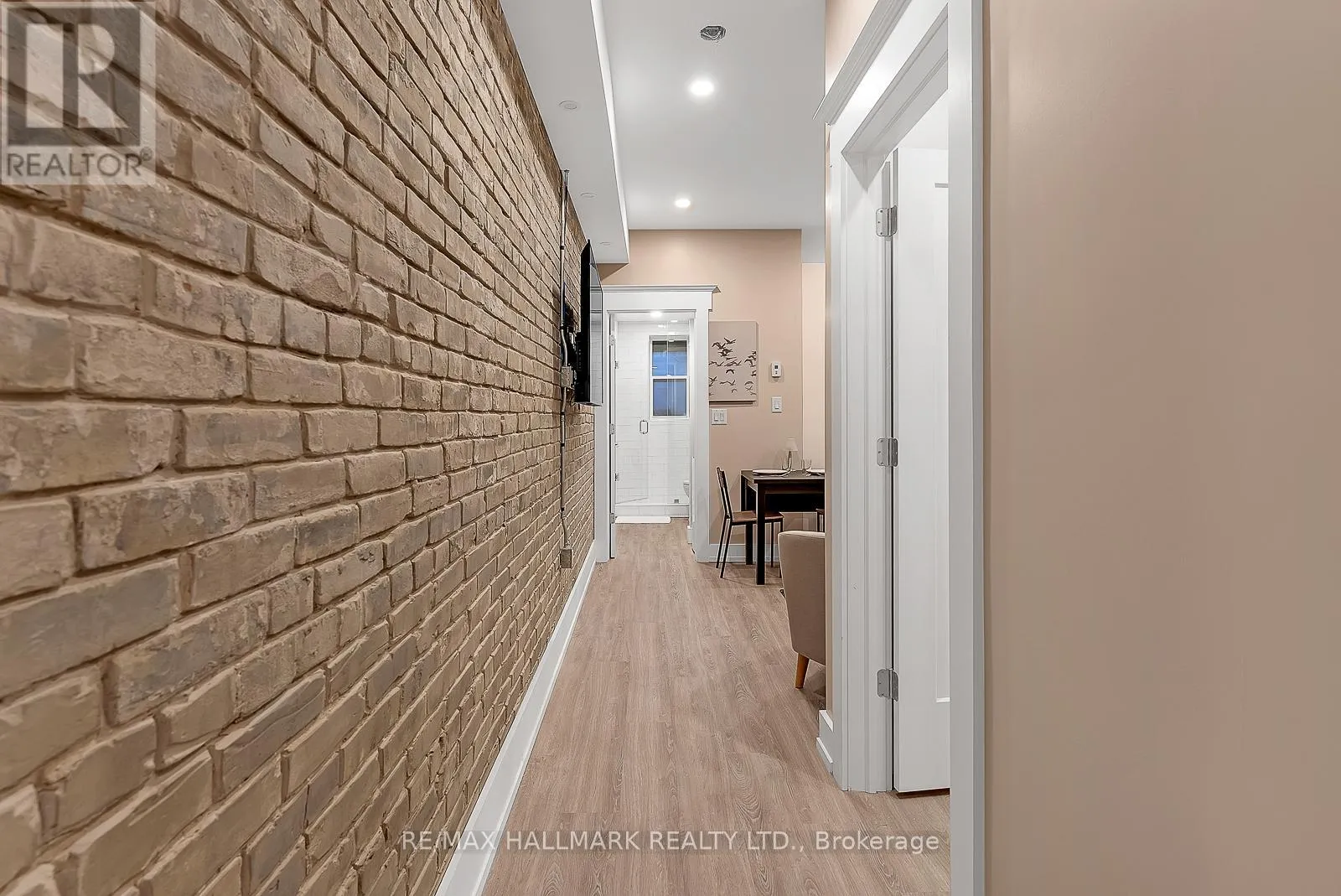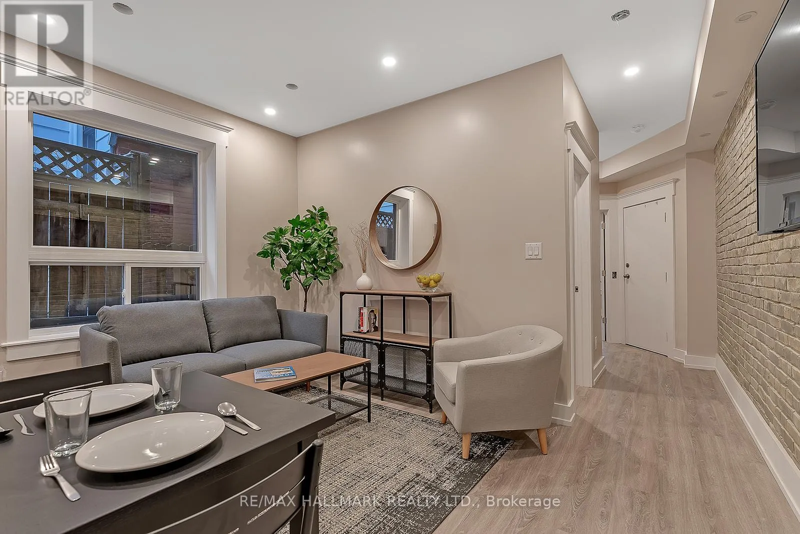 Sherbourne & Dundas St E A beautifully reimagined residence where modern design meets timeless character. This impeccably renovated ground level apartment sits within a unique, restored historic building and offers the perfect blend of style, comfort, and convenience - just steps to George Brown St. James Campus, TMU, and the Eaton Centre. 3D Virtual Tour Available. Inside, soaring 9+ ft ceilings, exposed brick throughout, and luxury vinyl plank flooring in every room create an inviting backdrop for the bright, open-concept living space. The apartment comes fully furnished, featuring a queen bed in the primary bedroom and a double bed in the second bedroom, along with Whirlpool stainless steel appliances, pot lights throughout, and carefully curated finishes.The home is also equipped with multiple security features, including secure buzzer entry, enhanced building access controls, and well-lit common areas for added peace of mind. Monthly cleaning service (excluding bedrooms) is included for truly effortless living. Enjoy shared outdoor space, with secured parking available for $100/month. High-speed in-suite internet is included for an additional $100. A rare opportunity to live in a refined historic setting with every urban convenience at your door. (id:27476)