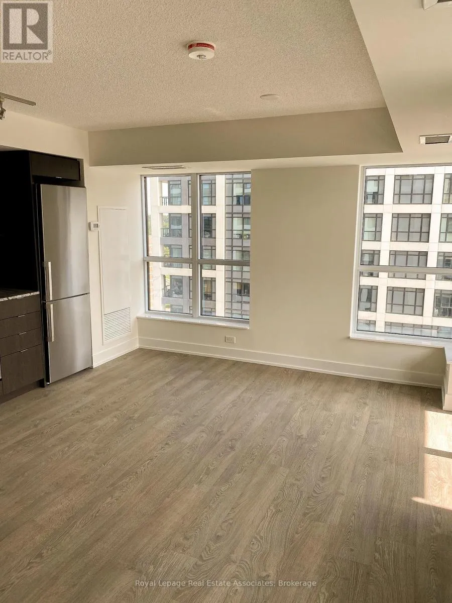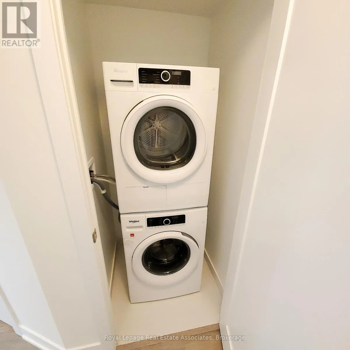 Bloor & Islington Welcome to Bloorvista at Islington Terrace by Tridel. A bright and modern 1-bedroom suite offering 577 sq. ft. of functional living space with a well-designed open-concept layout. Floor-to-ceiling windows in the living area and bedroom provide abundant natural light, while the wide living/dining space (as shown on the floor plan) opens directly onto a private balcony with expansive urban views. The sleek kitchen features full-size stainless steel appliances, quartz countertops, modern cabinetry, and a contemporary backsplash, aligning with the finishes shown in the photos. The living and dining areas offer a spacious, flexible layout, perfect for everyday living and entertaining. The bedroom includes a large mirrored closet, consistent with both the floor plan and interior photos, and provides comfortable space for a queen bed. The bathroom offers a glass-enclosed shower, modern vanity, and clean tile finishes. For added convenience, the suite includes a stacked Whirlpool washer and dryer located in the dedicated laundry closet off the entry hall, and one parking spot is included. Residents at Islington Terrace enjoy an impressive collection of amenities including an indoor pool, fitness centre, yoga studio, basketball court, party lounge, rooftop terrace, theatre room, BBQ areas, children's play zone, and 24-hour concierge. With Islington Station, shops, cafés, parks, and everyday essentials just steps away, this suite offers modern comfort and unbeatable convenience in one of Etobicoke's most connected communities. (id:27476)