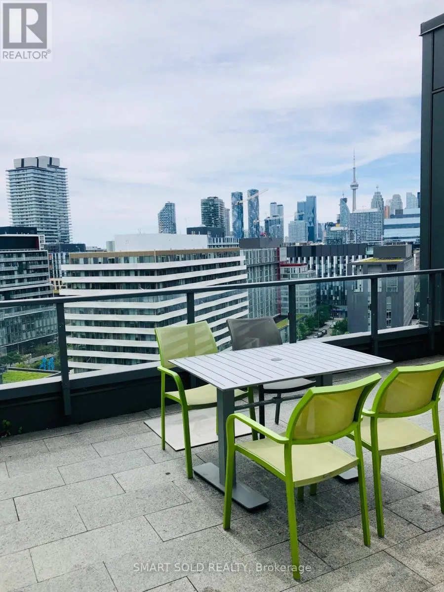Cross Streets: Bayview & Front Street. ** Directions: On Bayview. Large Locker & Building Internet is included!! Award winning Canary Park. 636 sq ft One bdrm + den (sliding door provides 2nd bdrm)!! Lots of natural light, with 9-foot ceilings. Large, open-plan Kitchen/Living/Dining Area. Full length 150 sq ft balcony with panoramic downtown views & some of the best sunsets in the city. Corktown Common and Distillery District on your doorstep. First-class building amenities; Rooftop Infinity Pool with exceptional views of the lake & CN Tower. Rooftop BBQ area, yoga studio, & well laid out gym. *. Built-In Liebherr fridge/freezer, Porter & Charles Oven & Dishwasher, B/I microwave, stacked washer/dryer. The building community is friendly and supportive. We have event planners, board game nights, and ping-pong tournaments to name a few. Residents and the property management team take good care of the building and promote a strong sense of ownership throughout the entire complex, supported by the dedicated work of the Canary Park Neighbourhood Association volunteers. (id:27476)