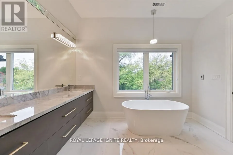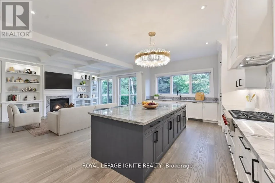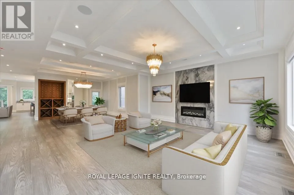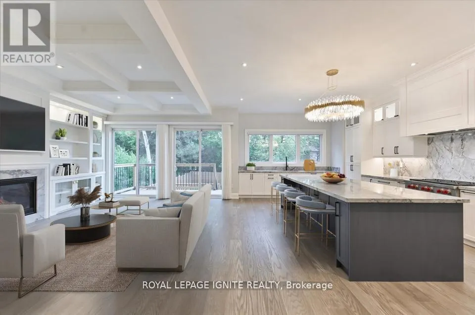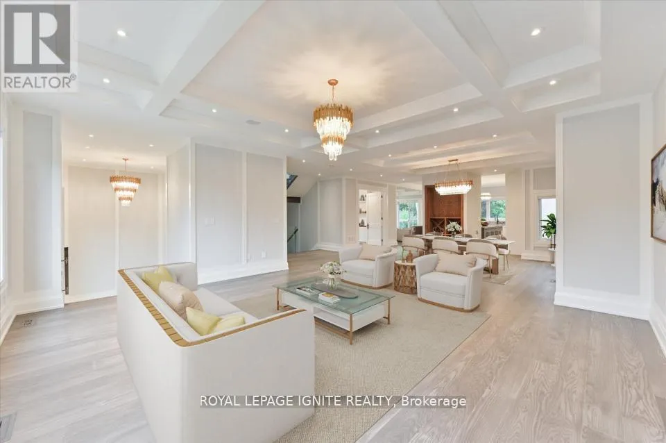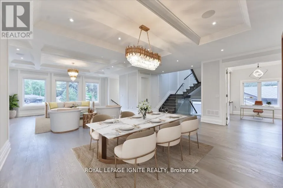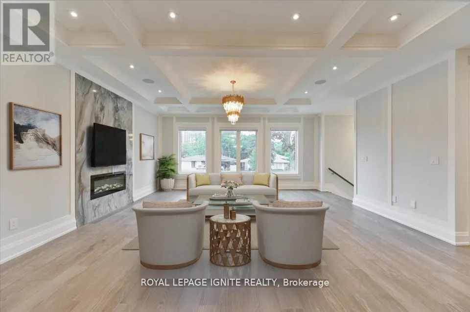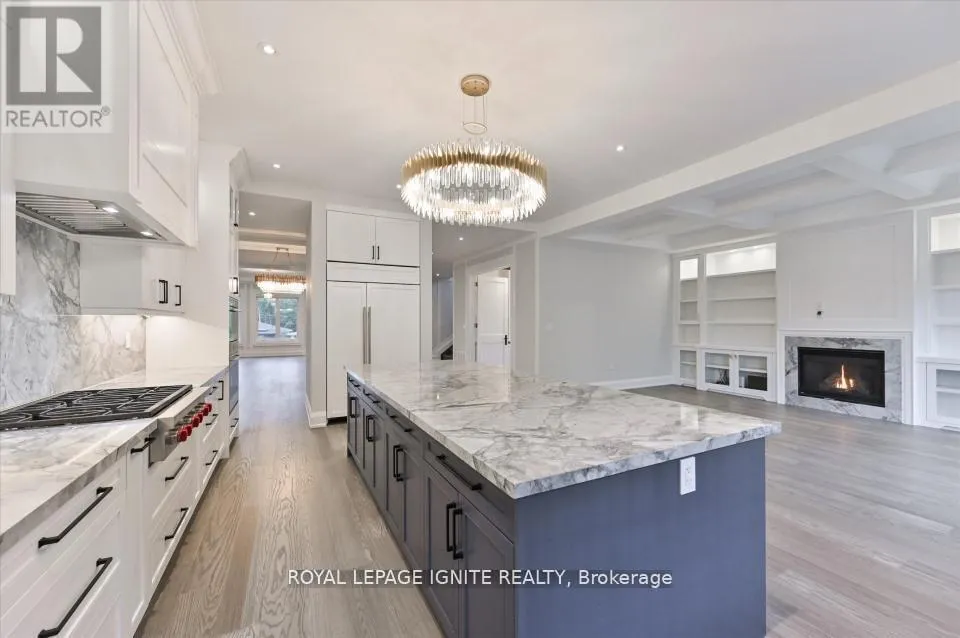 Sheppard/Don Mills/Shaughnessy Magnificent 3-Year-Old Estate Showcasing Architectural Elegance And Modern Functionality In Prestigious Bayview Village. Grand Living And Dining Areas Feature Custom Wall Paneling, Designer Coffered Ceilings, And A Sculptural Chandelier That Together Create A Striking Sense Of Sophistication. A Marble Fireplace Anchors The Formal Living Space, While The Open-Concept Dining Room Is Enhanced By A Backlit Feature Wall. The Designer Kitchen Is A masterpiece, Boasting Custom Cabinetry In Rich Contrasting Tones, Stone Countertops, And A Sculptural Waterfall Island With Breakfast Bar Seating. An Impeccably Designed, Timeless Floor Plan Offers Superior Craftsmanship And Quality Finishes Throughout. Expansive Windows And Skylights Flood The Home With Natural Light. The Gourmet Kitchen Includes A Spacious Breakfast Area And Premium Appliances. The Luxurious Primary Suite Features A Seven-Piece, Spa-Inspired Ensuite With Heated Marble Flooring. All Bedrooms Include Private Ensuites For Unparalleled Comfort And Privacy. Additional Highlights Include Pot Lights Throughout, And A Professionally Finished Walk-Up Basement Featuring 12-Foot Ceilings, Heated Marble Flooring, Two Bedrooms, Two Bathrooms, And A Separate Laundry Room Ideal For Multi-Generational Living Or Rental Potential. The Home Also Features Two Laundry Rooms, An Automated Sprinkler System, And Interlocking Stonework At Both The Front And Rear (id:27476)