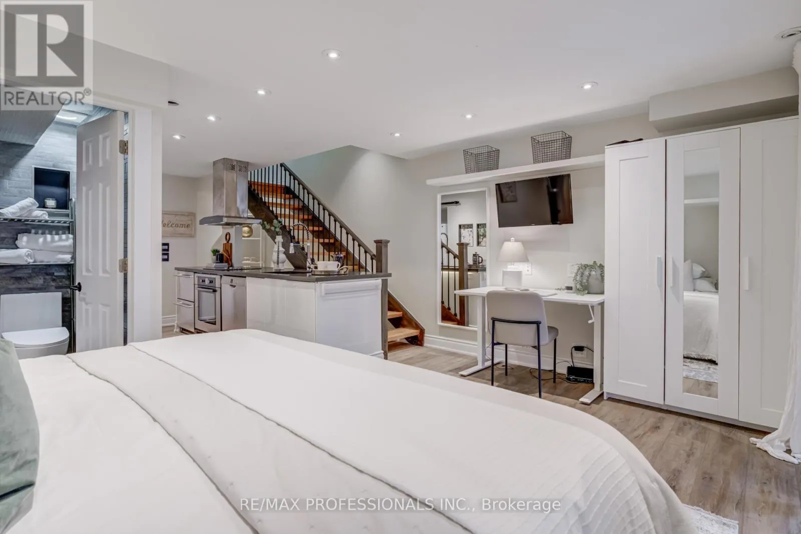 Park Lawn & Lake Shore Blvd Welcome to 105 Harbourview Crescent - a beautifully renovated, maintenance-free executive freehold townhome in the highly sought-after Harbour Village community of Humber Bay Shores. Offering 4 bedrooms, 4 bathrooms, and multiple flexible living areas, this home delivers a perfect blend of contemporary design, comfort, and urban convenience. The bright open-concept main floor features engineered hardwood, pot lights, and a stunning custom kitchen with quartz counters, premium stainless-steel appliances, and a walkout to a private, fully fenced deck-ideal for morning coffee or summer entertaining. A rare ground-level in-law or nanny suite with its own kitchen island, ensuite bath, laundry, and separate entrance adds incredible versatility for extended family or potential rental income. The luxurious primary retreat includes a spa-inspired ensuite with heated floors, a soaker tub, rainfall shower, and generous closet space. Additional upgrades throughout include new windows and doors, modern bathrooms with European tile, updated plumbing and electrical, smart home features, noise insulation, floating stairs, and a sealed garage floor with built-in storage. Outdoor living is effortless with three decks, landscaped grounds, and low-maintenance exterior updates from front to back. Located just steps from the lake, scenic waterfront trails, parks, tennis courts, schools, and trendy restaurants and coffee shops. Enjoy unbeatable transit options including the Mimico GO, 24-hour streetcar, TTC buses to Old Mill and Royal York subway stations, and quick access to the Gardiner and QEW-putting downtown Toronto only minutes away. This exceptional move-in-ready home offers the perfect balance of style, function, and lifestyle in one of Toronto's most vibrant waterfront communities. (id:27476)