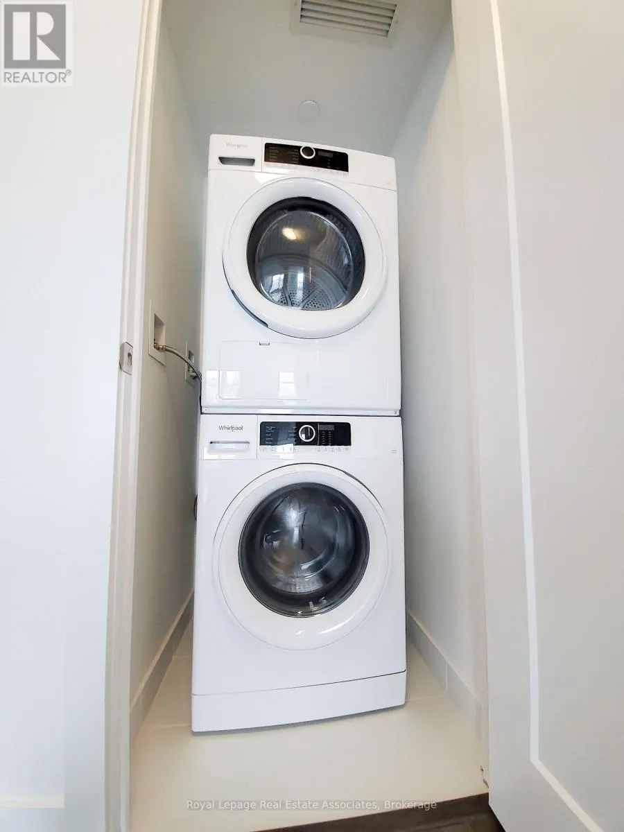 Bloor & Islington Experience elevated living in this bright, modern suite at Bloor Promenade, part of Tridel's award-winning Islington Terrace community. Designed for both comfort and functionality, this 2-bedroom + den, 2-bathroom residence offers 766 sq. ft. of thoughtfully laid-out space, enhanced by sleek finishes and panoramic views. The open-concept kitchen, dining, and living area features full-sized built-in appliances, stone countertops, and under-cabinet lighting. From the living room, step onto a private balcony with sweeping, unobstructed views over lush treetops and the city skyline. The primary bedroom offers generous closet space and natural light through floor-to-ceiling windows, while the second bedroom is equally spacious. A functional den near the entrance provides an ideal setup for a home office. The bathrooms are finished with contemporary tile, sleek vanities, and modern fixtures, and the in-suite laundry adds everyday convenience. Residents enjoy access to an array of luxury amenities including a fitness centre, indoor pool, sauna, yoga studio, party lounge, theatre, children's play area, and an outdoor terrace with BBQ stations. Ideally located steps from Islington Subway Station, parks, shops, cafés, and with easy access to the Gardiner and Highway 427, this suite perfectly combines modern design and urban lifestyle. (id:27476)