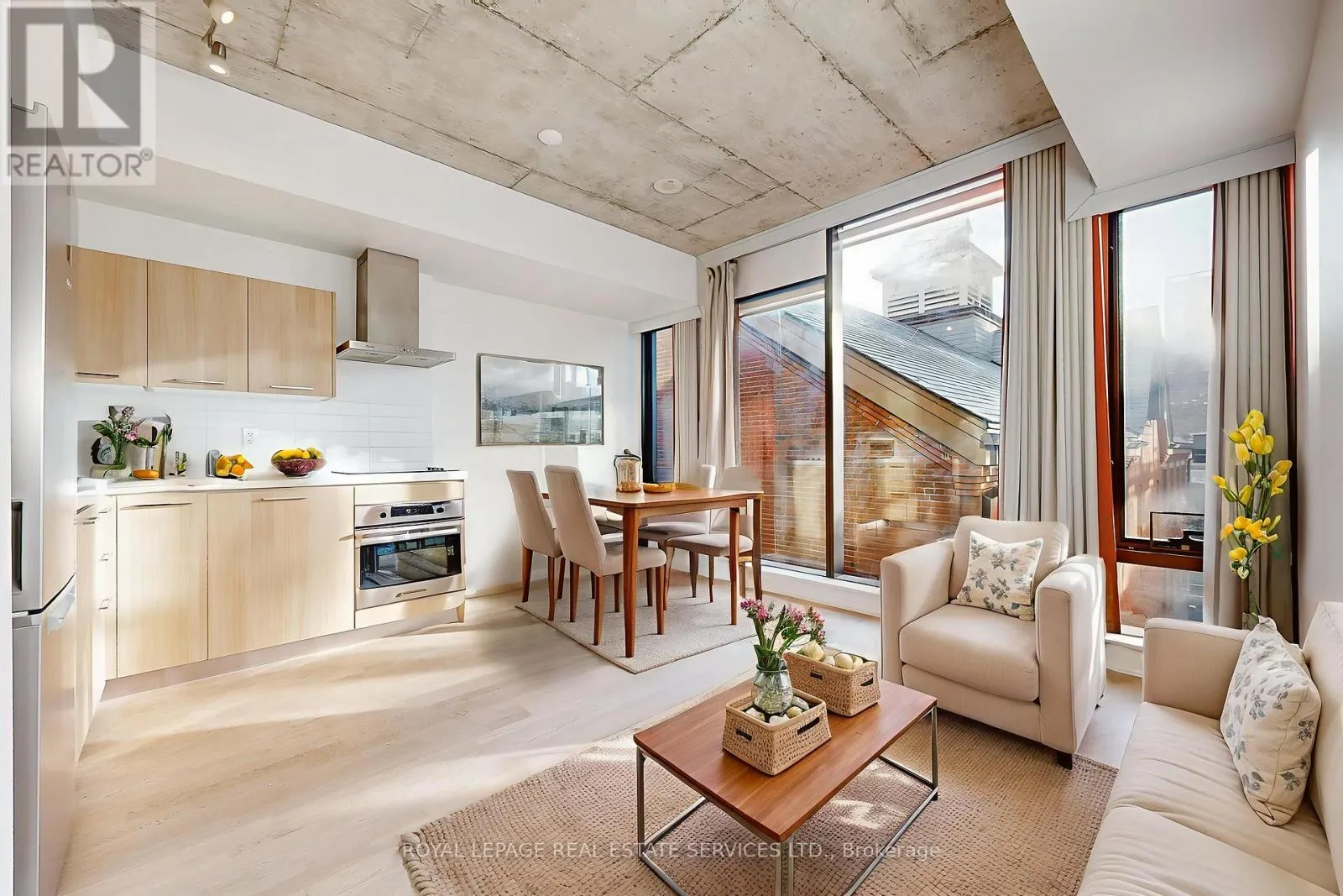 King & Bathurst Newly renovated to enclose the bedroom and freshly painted from top to bottom! This 1-bedroom with a locker at the desirable Fashion House in the heart of King West has been impeccably maintained. Loft style, with soaring exposed concrete ceilings, beautiful finishes, and floor-to-ceiling windows bringing in ample west-facing light. This 531 sq. ft. suite feels comfortable and private, with a well-proportioned living/dining space and efficient layout. Sleek, modern kitchen with stainless steel appliances including a built-in oven, electric radiant cooktop, range hood, countertop microwave, refrigerator, and panelled dishwasher. The separate bedroom has a large closet with organizers and a sliding fluted-glass door. Well-managed, boutique building with top-notch amenities: gym, 24 hr concierge, party/meeting room, and a rooftop infinity pool with incredible views of the downtown skyline! Ideal location on King West, close to transit, top restaurants, trendy bars, and shopping. Rent includes water, heat, A/C, and a storage locker. This unit has been very well cared for by its owner and is ready to move in! (id:27476)