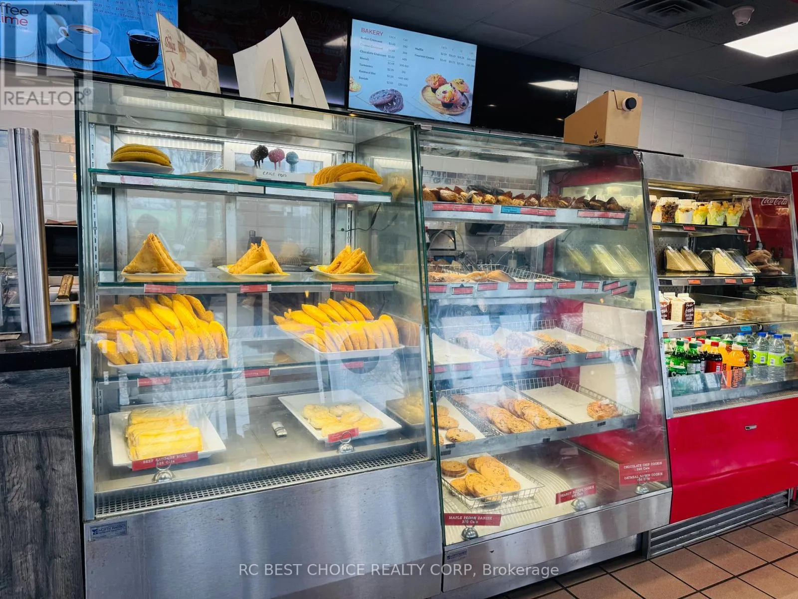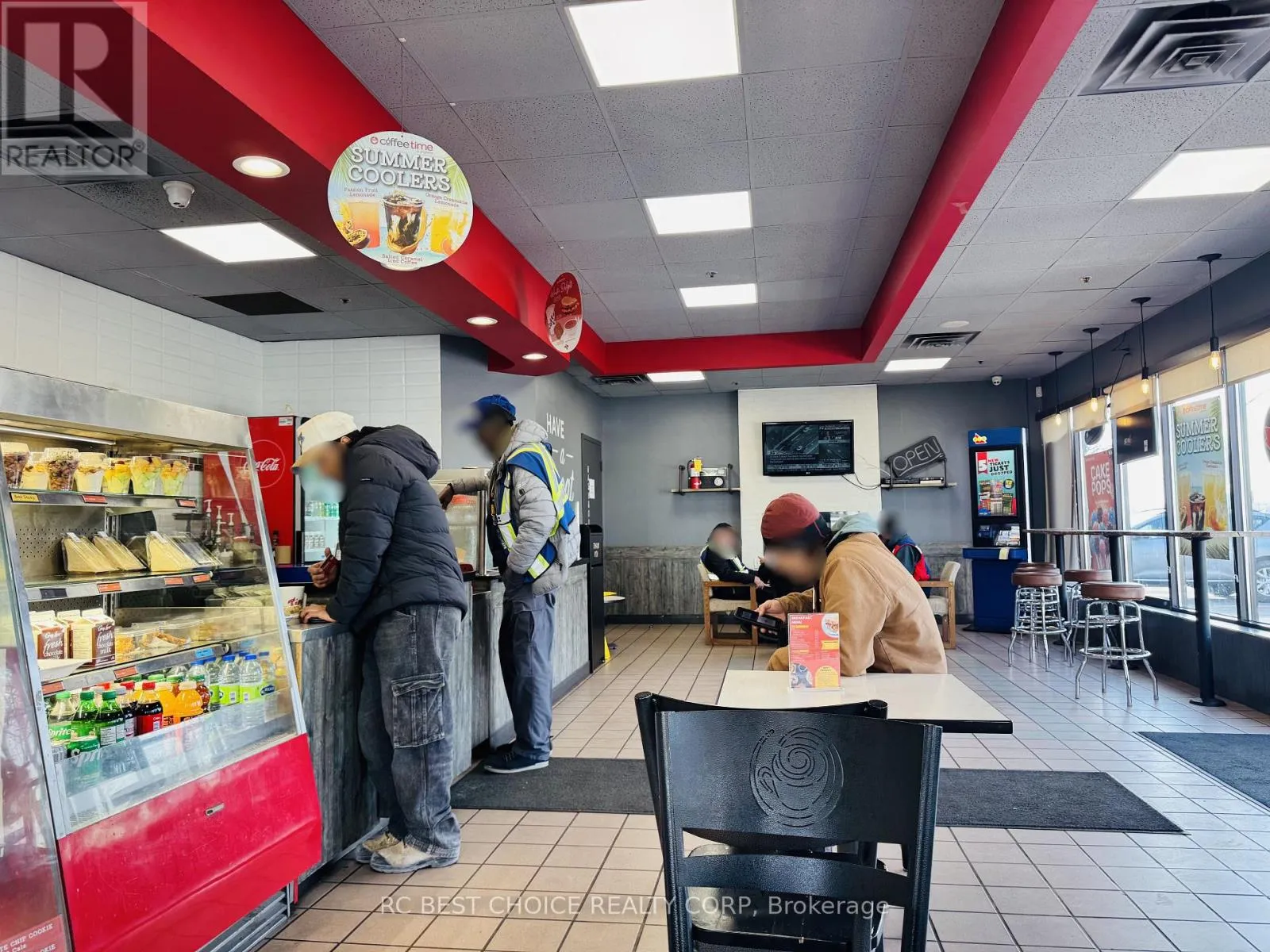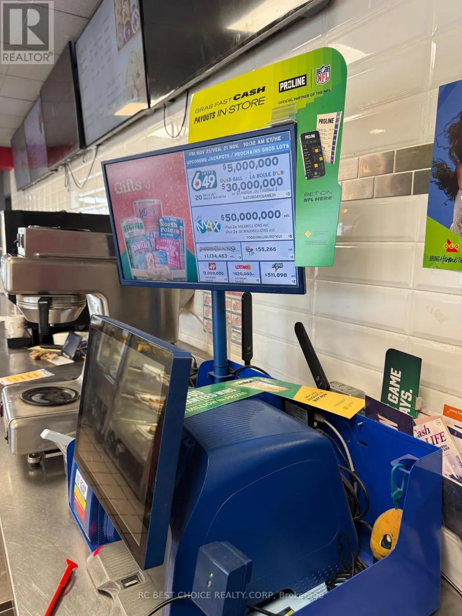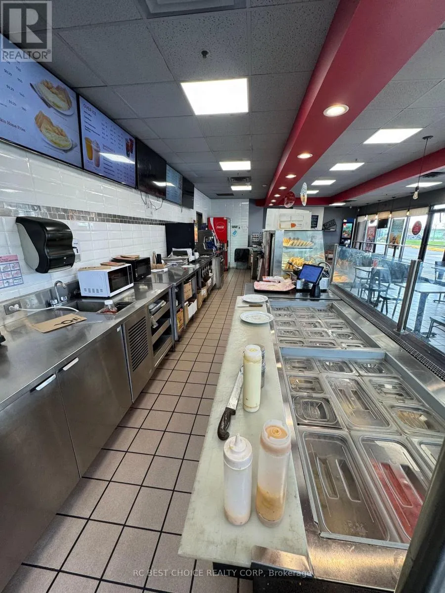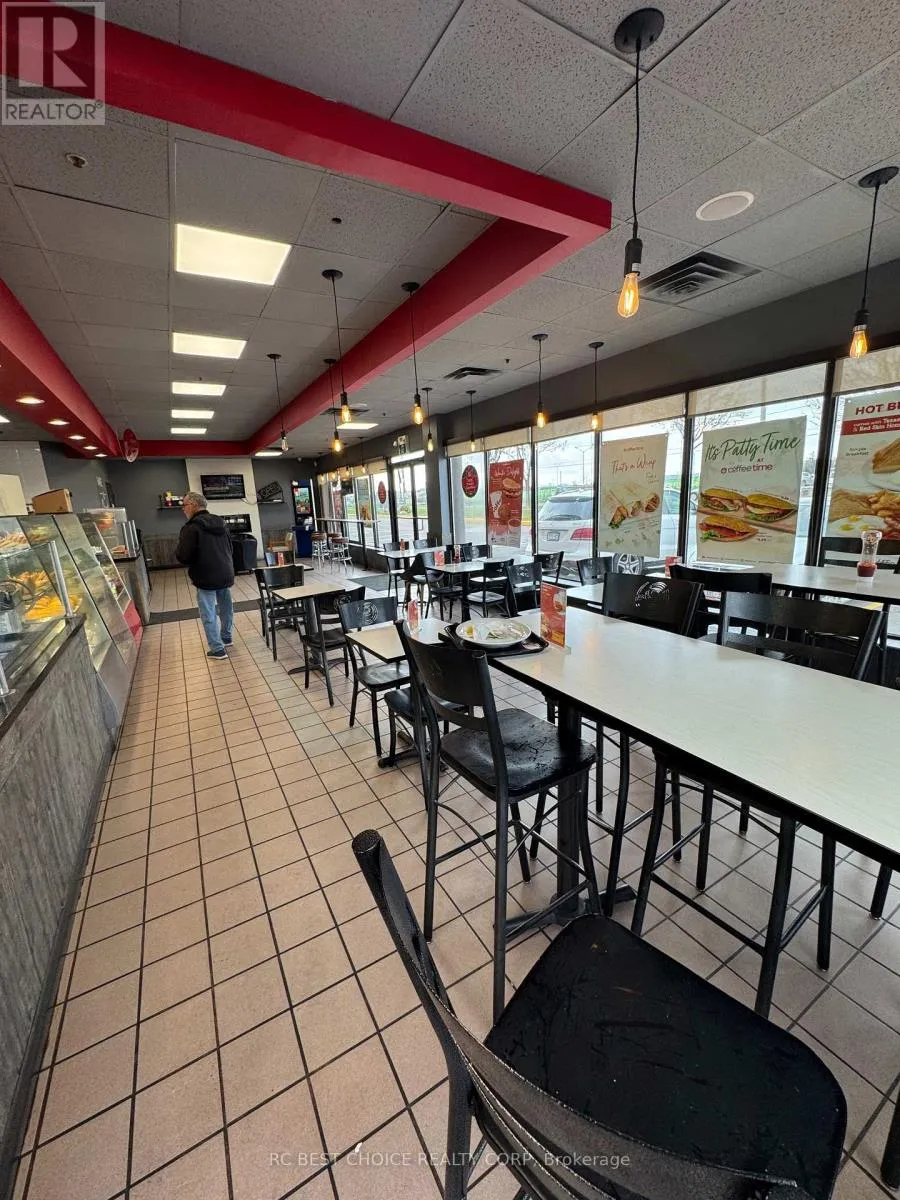Hwy 427/ Carlingview Well-established Coffee Time franchise in a high-exposure Etobicoke corridor beside Pearson Airport. Located at the Hwy 427-409 interchange with quick Hwy 401 access, offering strong drive-thru visibility and steady traffic from travelers, hotel guests, office staff, and logistics workers.2,500 sq.ft. unit with dine-in, take-out, and full drive-thru. Newly signed 5 + 5 long-term lease. Multiple income streams including a profitable OLG counter with fixed monthly net income and potential to add a CIBC ATM for additional rental revenue. Strong sales history with high Uber Eats and DoorDash order volume. Turnkey, stable franchise opportunity ideal for both owner-operators and investors in a proven, high-demand location. (id:27476)
