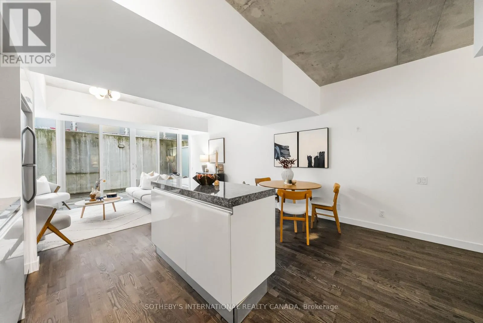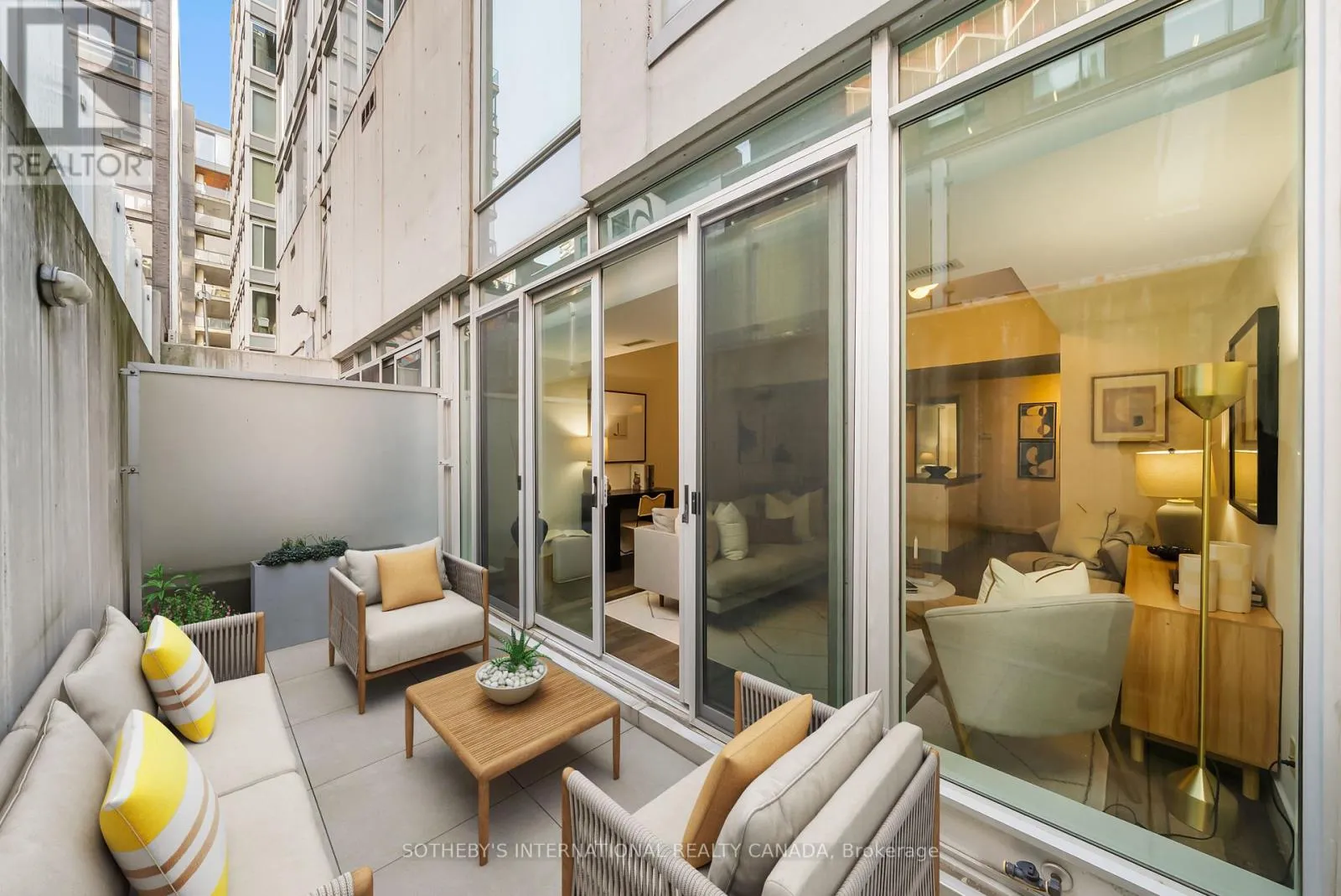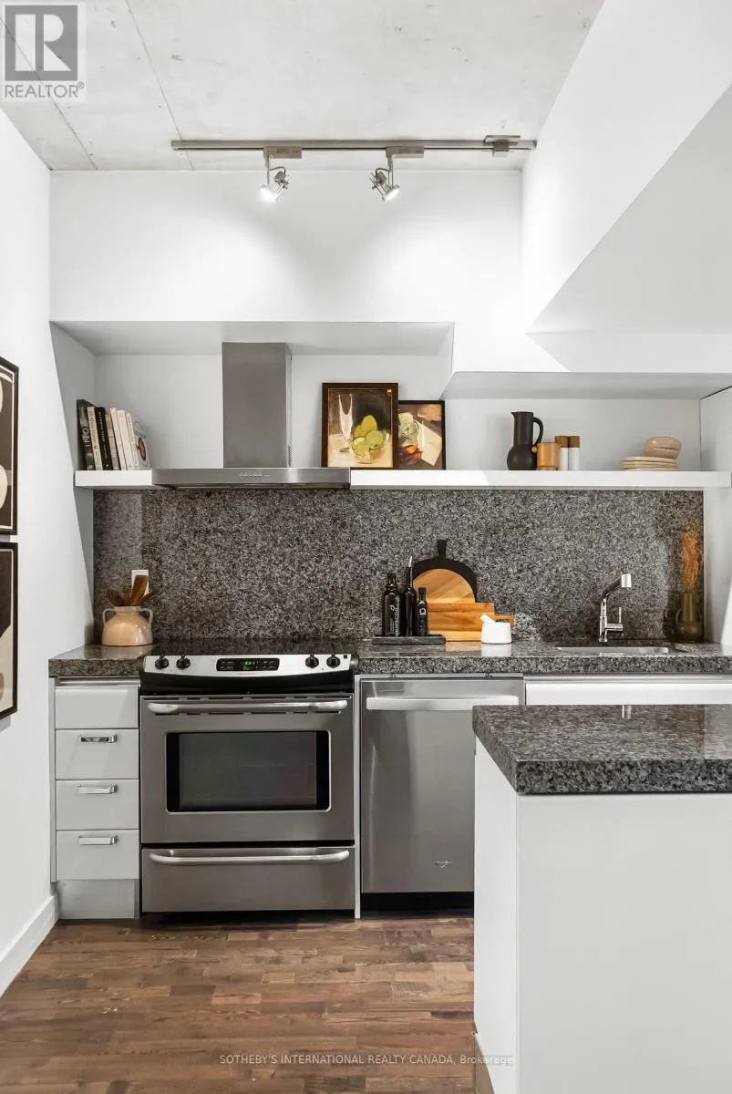 King and Portland Discover 828 square feet of refined, contemporary living in this spacious 1-bedroom loft at 75 Portland - an architectural landmark designed with Philippe Starck's unmistakable vision. Set on the main level and quietly tucked away from the energy of King and Portland, this suite offers a rare sense of calm in the heart of downtown's most vibrant neighbourhood. Inside, the loft unfolds with effortless flow. A sleek, oversized kitchen with a centre island anchors the home, creating a natural space for gathering and entertaining. The open-concept layout offers generous room for a home office while maintaining a warm, inviting atmosphere throughout. Step outside to a private 100 sqft terrace with BBQ gas line - an intimate outdoor retreat that feels like an extension of the living space. Perfect for slow mornings, relaxed evenings, or alfresco moments that elevate everyday living. The tranquil bedroom features wall-to-wall closets that blend clean design with exceptional storage. A well-appointed four-piece bath completes the suite with a thoughtful, timeless finish. As one of King West's most design-forward communities, 75 Portland offers residents access to its bold open-air courtyard and Starck's signature 100-foot indoor-outdoor communal table - amenities that blur the boundaries between architecture, art, and urban life. Placed within one of King West's most walkable pockets, you're steps to Victoria Memorial Square, St. Andrew's Dog Park, Stanley Park, and the endless cafés, boutiques, restaurants, and fitness studios of King West, Queen West, and The Well. Here, design, convenience, and city living converge in a way that feels both vibrant and deeply peaceful. A truly rare offering - come experience it for yourself. (id:27476)