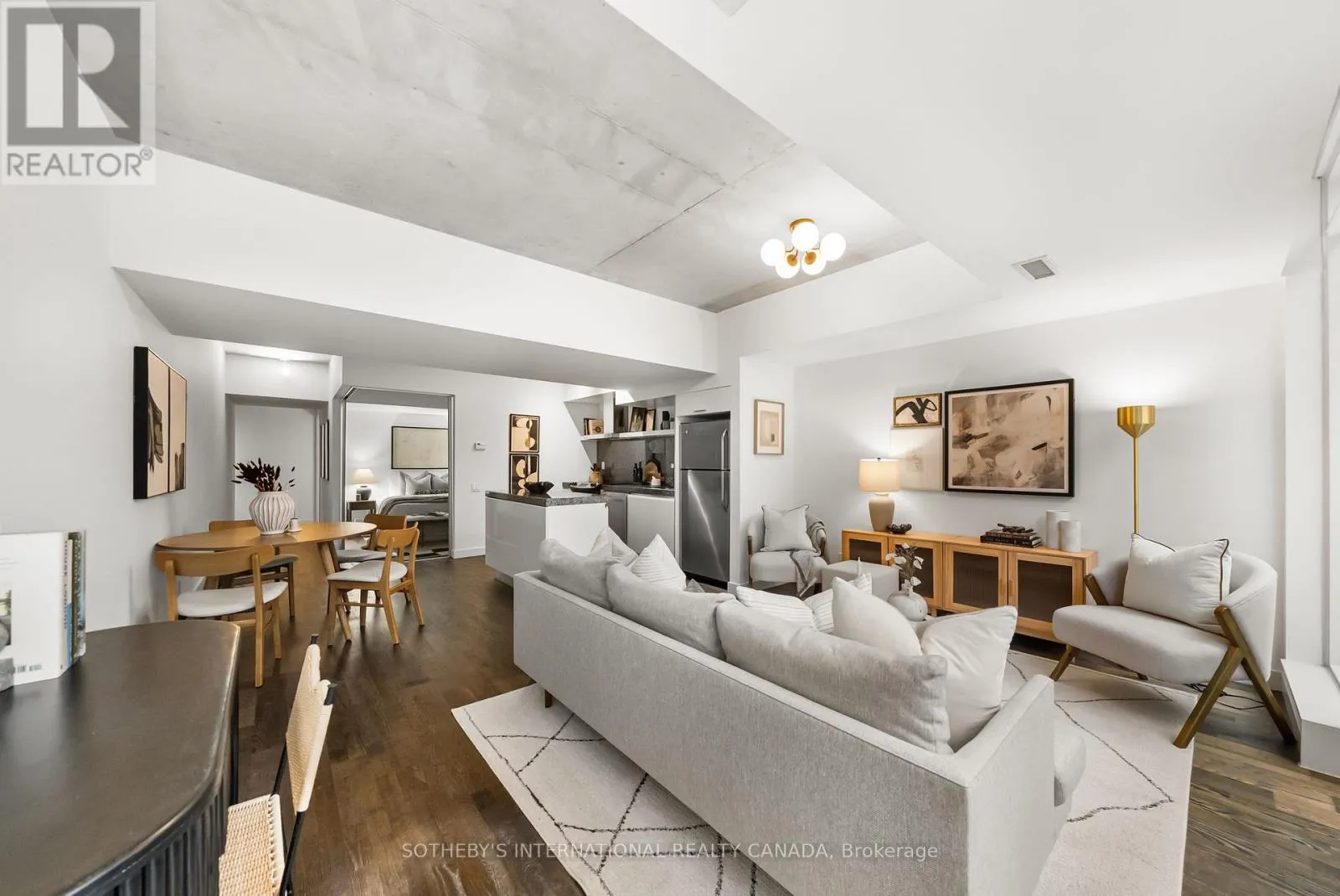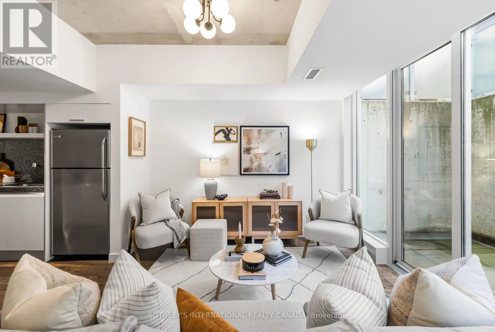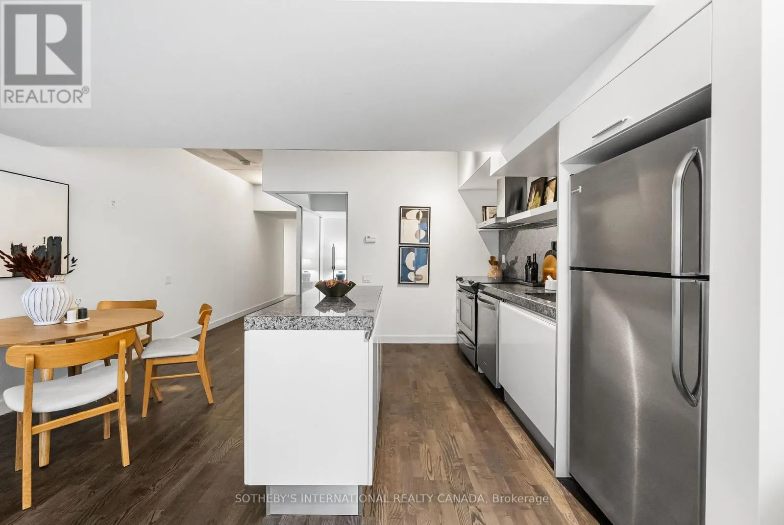 King and Portland Discover 828 square feet of refined, contemporary living in this spacious 1-bedroom loft at 75 Portland - an architectural landmark designed with Philippe Starck's unmistakable vision. Set on the main level and quietly tucked away from the energy of King and Portland, this suite offers a rare sense of calm in the heart of downtown's most vibrant neighbourhood. Inside, the loft unfolds with effortless flow. A sleek, oversized kitchen with a centre island anchors the home, creating a natural space for gathering and entertaining. The open-concept layout offers generous room for a home office while maintaining a warm, inviting atmosphere throughout. Step outside to a private 100 sqft terrace with BBQ gas line - an intimate outdoor retreat that feels like an extension of the living space. Perfect for slow mornings, relaxed evenings, or alfresco moments that elevate everyday living. The tranquil bedroom features wall-to-wall closets that blend clean design with exceptional storage. A well-appointed four-piece bath completes the suite with a thoughtful, timeless finish. As one of King West's most design-forward communities, 75 Portland offers residents access to its bold open-air courtyard and Starck's signature 100-foot indoor-outdoor communal table - amenities that blur the boundaries between architecture, art, and urban life. Placed within one of King West's most walkable pockets, you're steps to Victoria Memorial Square, St. Andrew's Dog Park, Stanley Park, and the endless cafés, boutiques, restaurants, and fitness studios of King West, Queen West, and The Well. Here, design, convenience, and city living converge in a way that feels both vibrant and deeply peaceful. A truly rare offering - come experience it for yourself. (id:27476)