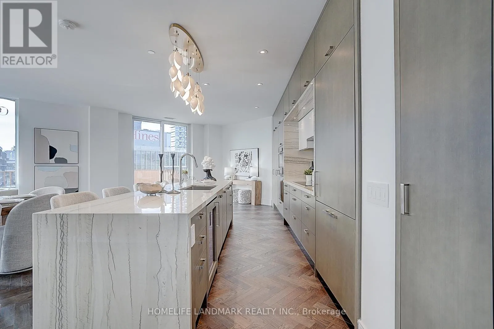 Cross Streets: Queens Quay and Parliament. ** Directions: Entrance off Merchants' Wharf. Welcome to luxury waterfront living at Tridel's Aqualuna, located in Toronto's vibrant East Bayside district. This exceptional brand-new 2-bedroom + enclosed den residence offers 2,433 sq. ft. of upgraded living space, featuring premium finishes and breathtaking south-facing views of the lake, gardens, and pool.Designed for both comfort and elevated entertaining, the suite showcases floor-to-ceiling windows, a spacious open layout, and a gourmet kitchen equipped with integrated appliances, an upgraded Miele induction cooktop with touch controls, natural stone countertops, custom cabinetry, a built-in wine cellar, and an enlarged double-waterfall island. Both bedrooms include private ensuites with heated floors and upgraded natural stone countertops, while the double-door enclosed den provides an ideal office or guest room. The luxurious primary retreat features his-and-hers walk-in closets, a spa-inspired ensuite, and direct access to a serene lake-view terrace, complemented by a second private balcony off the additional bedroom. Additional conveniences include a full-size laundry room with sink and ample cabinetry, along with an EV-ready parking space.Resort-style amenities include a lakeside outdoor pool, fitness and yoga studios, sauna, media and party lounges, and 24/7 concierge service. Just steps from Sugar Beach, the Martin Goodman Trail, the waterfront promenade, and some of the city's best dining and cultural destinations, this home offers an unmatched blend of tranquility, sophistication, and urban convenience. (id:27476)