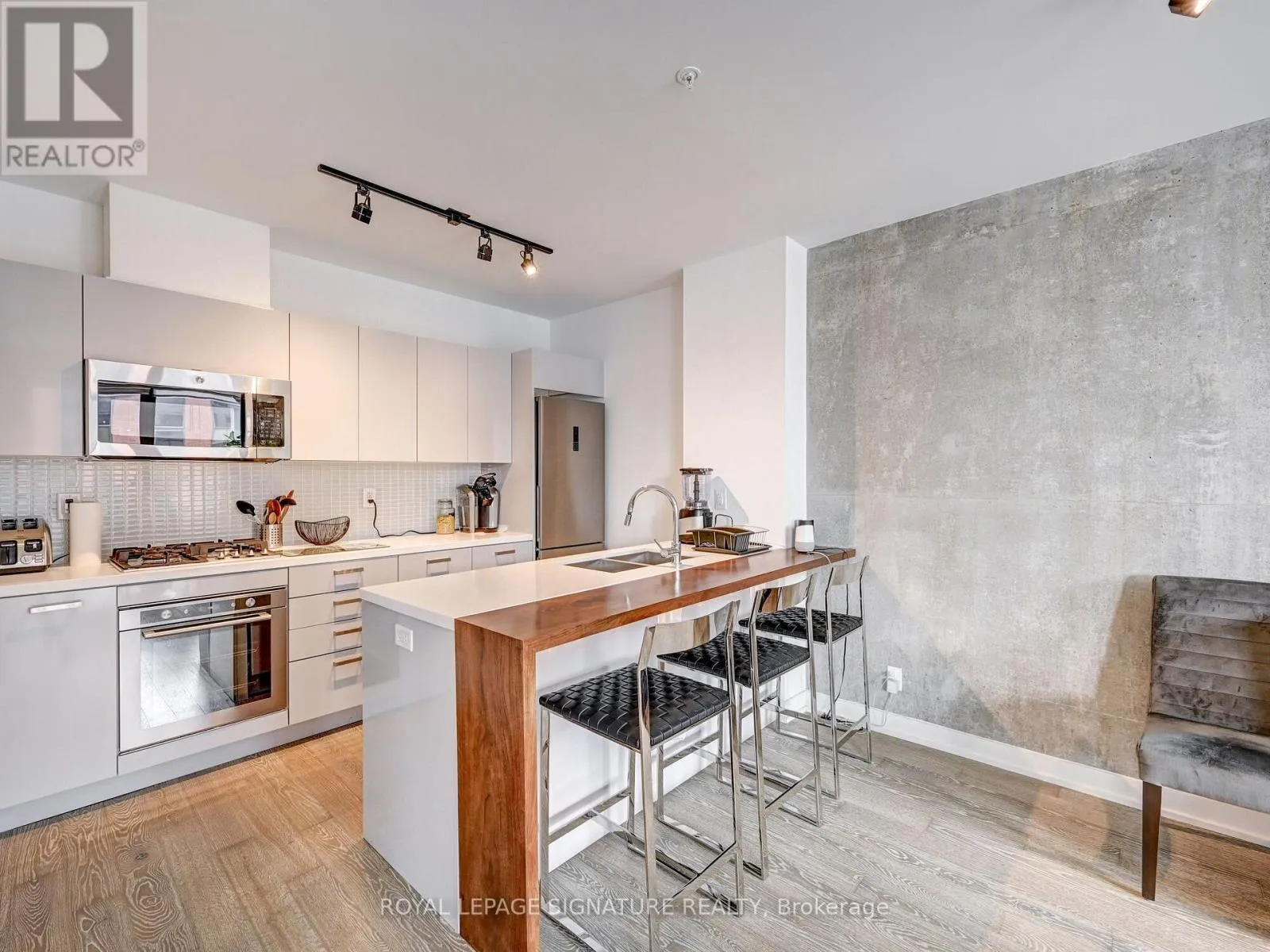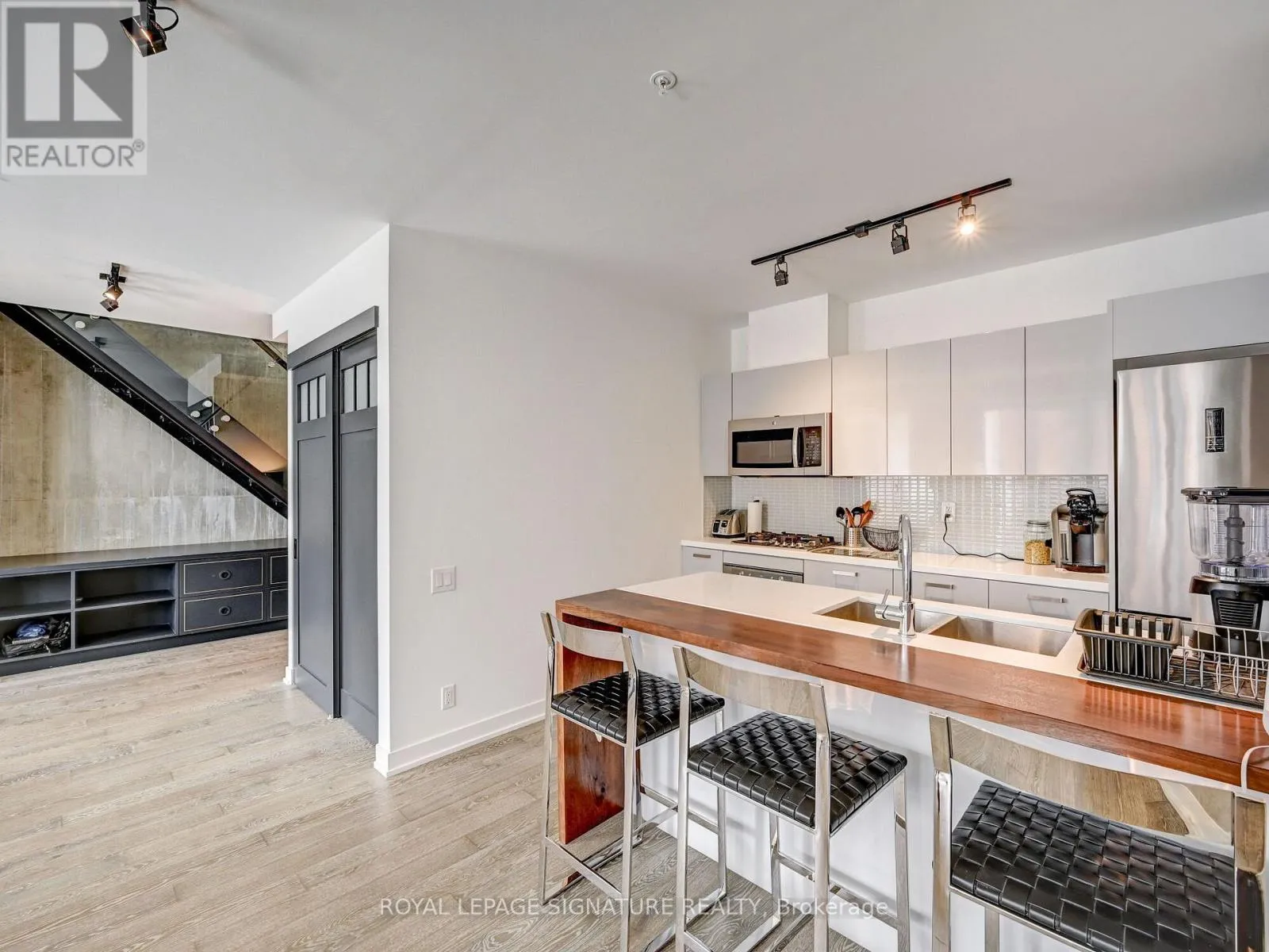Adelaide St W and Spadina Ave Stunning 2-Storey Penthouse in Prime Downtown Location! Exceptional 2-bedroom, 2.5-bathpenthouse in a newer, boutique and well-managed building. Nearly 1,200 sq. ft. of modern living with floor-to-ceiling windows and an expansive south-facing terrace offering CN Tower views. Features include high ceilings, exposed concrete walls, engineered hardwood floors, and a European-style kitchen with stone counters and stainless steel appliances. Sleek bathrooms, custom built-in cabinetry, and ample storage throughout. Includes 1 underground parking spot. Outstanding Walk Score of 99 with parks, shopping, restaurants, and entertainment at your doorstep. Steps to King, Queen & Spadina streetcars and minutes to the best of downtown living. (id:27476)
