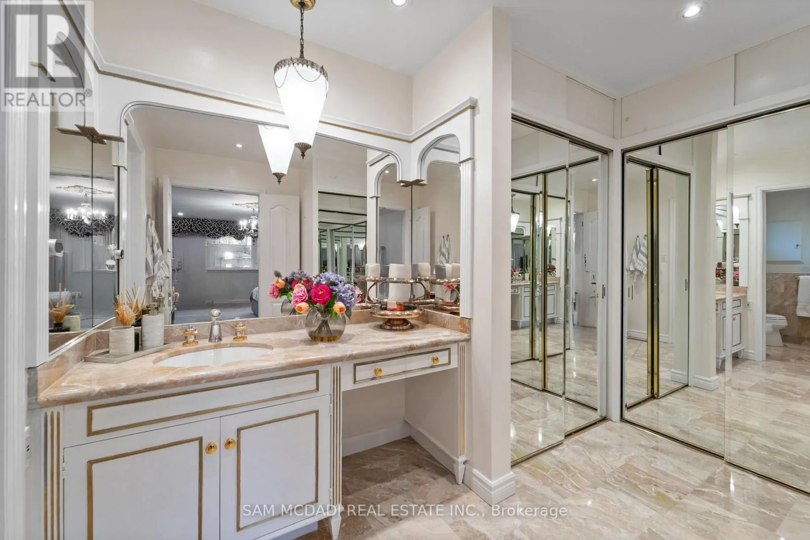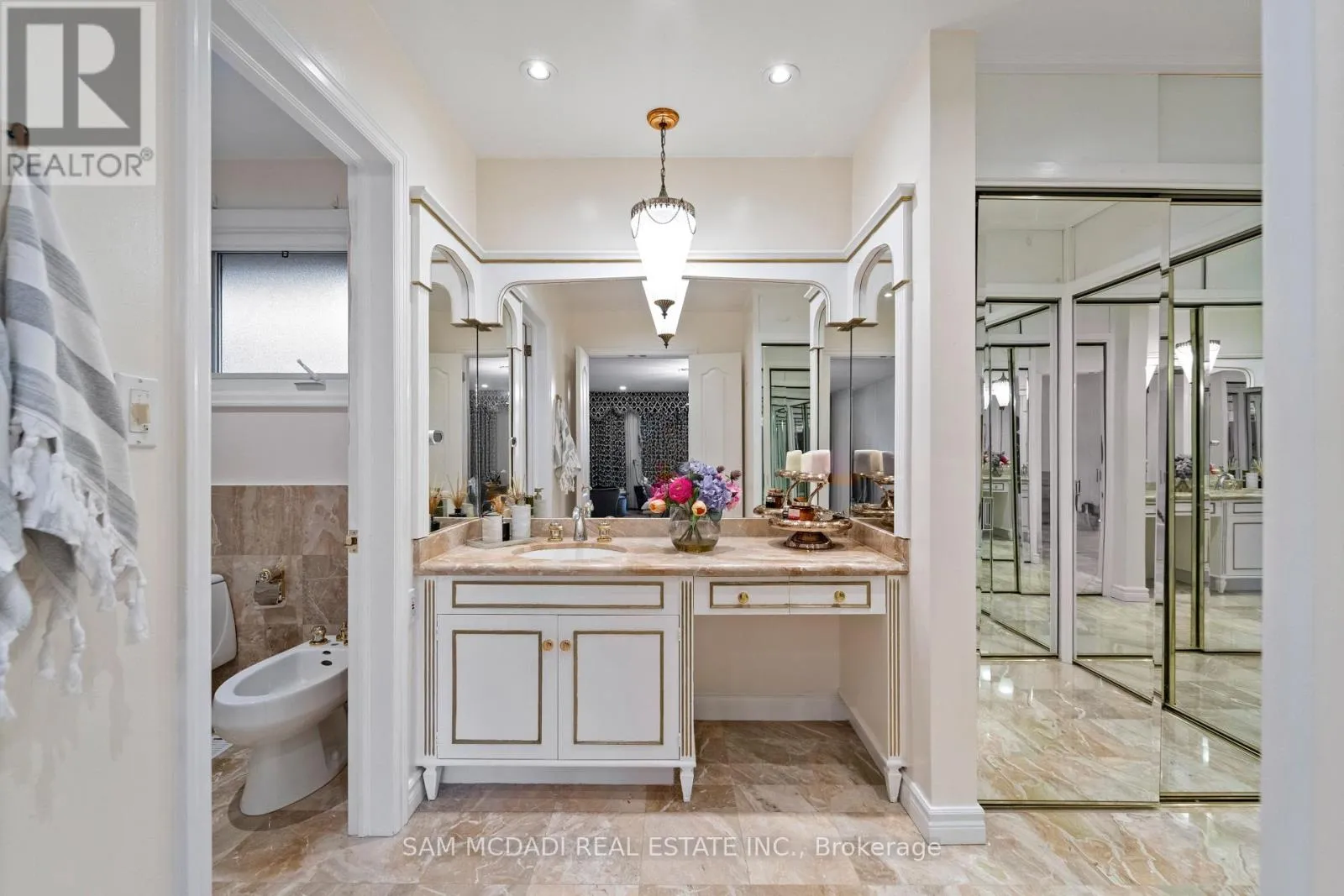Cross Streets: Kipling Ave & Eglinton Ave W. ** Directions: If heading southbound on Kipling Ave, turn right onto Longfield Rd. If heading northbound on Kipling Ave, turn left onto Longfield Rd. From Longfield Rd, turn right onto Richdale Court, the home will be located at the end of the street. Welcome to 22 Richdale Court, a beautiful home at the end of a quiet court in Toronto's sought-after Princess-Rosethorn community. Perfect for families, this 3380 sqft above grade residence offers space, elegance, and an exceptional lifestyle. Step into the marble foyer, leading to separate formal living and dining rooms with large windows overlooking the landscaped front yard. The custom Cameo kitchen features granite floors and countertops, stainless steel appliances, backsplash, and a bright breakfast area with walkout to the expansive stone patio. The cozy family room offers cathedral ceilings, a stone fireplace, and large windows overlooking the backyard. Upstairs, the primary suite features a custom walk-in closet and 5-piece ensuite. Three additional bedrooms, a second 5-piece bathroom, and another large custom walk-in closet complete this level. The fully finished 1700+ sqft lower level includes a second kitchen, dining area, custom bar with carved wood counter and ambient lighting, den, 2 bedrooms, 1.5 bathrooms, sauna, and laundry. A separate walkout and ample storage make it ideal for rental income or multigenerational living. Outside, enjoy a beautiful backyard with a stone patio surrounded by mature trees, landscaped front and back yards, a covered porch, an updated 2-car garage, and a driveway for up to 8 cars. The brick and stone exterior enhances its timeless appeal. The home sits on an extraordinary pie-shaped lot - 37ft wide at the front, 182ft deep, expanding to 158ft at the rear. Located in Princess-Rosethorn, an upscale, family-focused neighbourhood, the home offers easy access to highways (401, 427), TTC routes, GO Transit, and top-rated public and private schools. Residents enjoy prestigious recreational amenities including St. George's Golf & Country Club and Islington Golf Club, plus nearby parks, trails, and shopping. 22 Richdale Court offers space, privacy, and outstanding family convenience in one of Toronto's most desirable communities. (id:27476)
