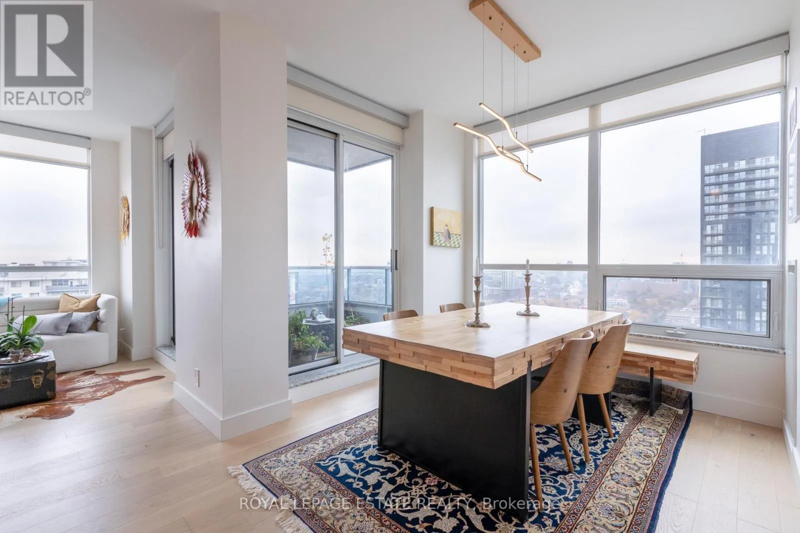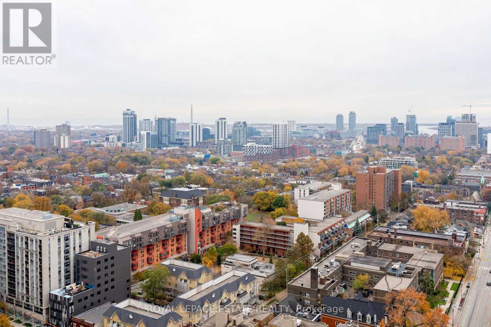 Cross Streets: Sherbourne and Wellesley St. ** Directions: Sherbourne North of Wellesley. Welcome to this impeccably designed 2 bedroom, 2 bathroom corner suite, offering 818 sq. ft. of sophisticated living high above the city on the 26th floor. Crafted for the discerning tenant who values premium finishes and thoughtful design, this residence showcases stunning south views of the downtown skyline, Lake Ontario, and the lively approach of planes into Billy Bishop Airport. The custom renovated kitchen is a true showpiece, featuring rich walnut cabinetry, quartz countertops, and a beautifully designed centre island, perfectly integrated with the open concept dining room for effortless entertaining. Both the dining and living rooms offer walkouts to the corner balcony, ensuring natural light and breathtaking vistas throughout the day. The primary bedroom comfortably fits a king size bed and boasts a custom extra tall walnut front closet and a luxurious 3 piece ensuite bathroom. The south facing second bedroom enjoys equally captivating views, while the main bathroom with its granite counters and elegant ceramic tile evokes a spa like retreat. An underground parking space and storage locker provide added convenience. Residents of The 500 Condos & Lofts enjoy exceptional amenities, including a spectacular rooftop terrace with gas BBQs, a fully equipped gym, yoga studio, co-working space, billiards and party rooms, a cinema, and 24 hour concierge and security. This is refined urban living at its finest. A short walk to either Sherbourne or Wellesley subway stations and the shops and services on Bloor St. 500 Sherbourne is a smoke free building and does not allow smoking on any of the common elements including balconies. (id:27476)