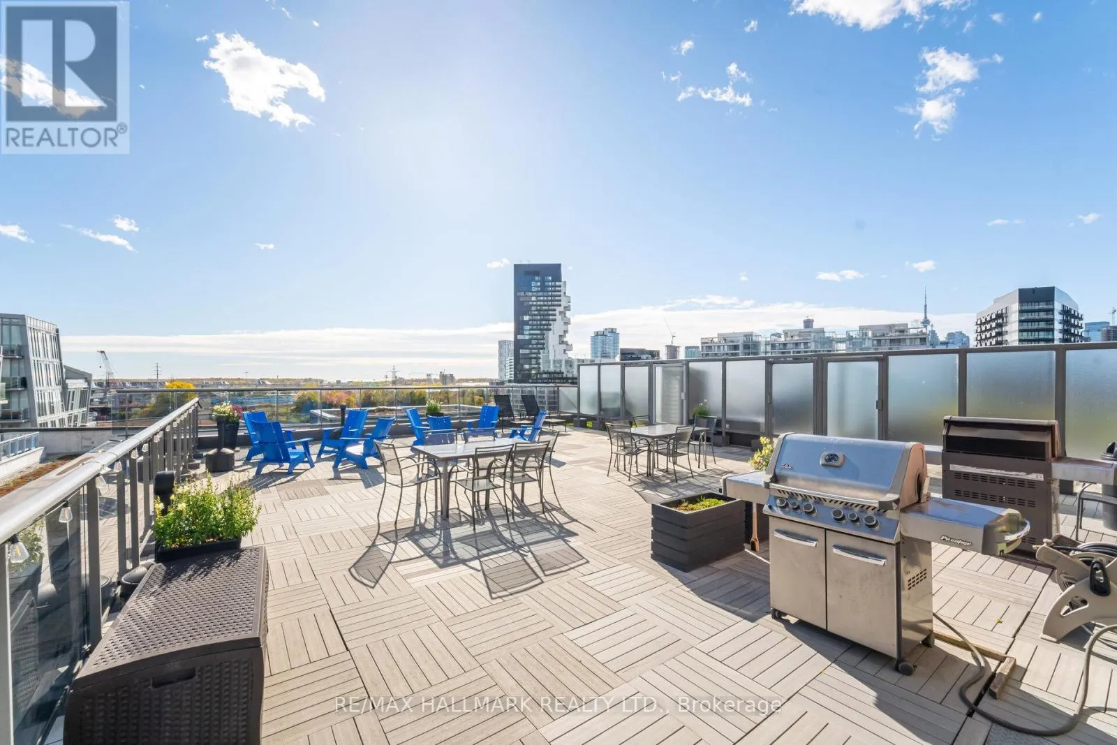 Cross Streets: Queen and Broadview. ** Directions: Queen to BRoadview. Stylish Loft Living in the Heart of Leslieville! Welcome to Streetcar's Edge Lofts - a boutique 6-storey building with just 64 units, perfectly located in one of Toronto's most vibrant neighbourhoods. This spacious one-bedroom plus den suite features 10-foot ceilings, floor-to-ceiling windows, and a clear west-facing balcony with stunning sunset and skyline views.The open-concept kitchen boasts quartz countertops, stainless steel appliances, and a large island with breakfast bar seating. Enjoy polished concrete floors, custom window blinds, and a full-size stacked washer and dryer.Relax on your private balcony or head up to the rooftop terrace with BBQs and panoramic city views. Urban living at its best in Leslieville's most sought-after address. No interior photos as per tenant but shows well! (id:27476)