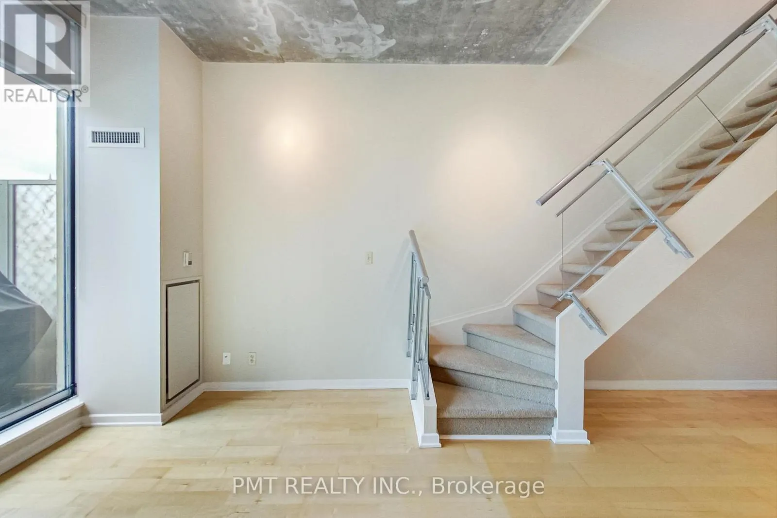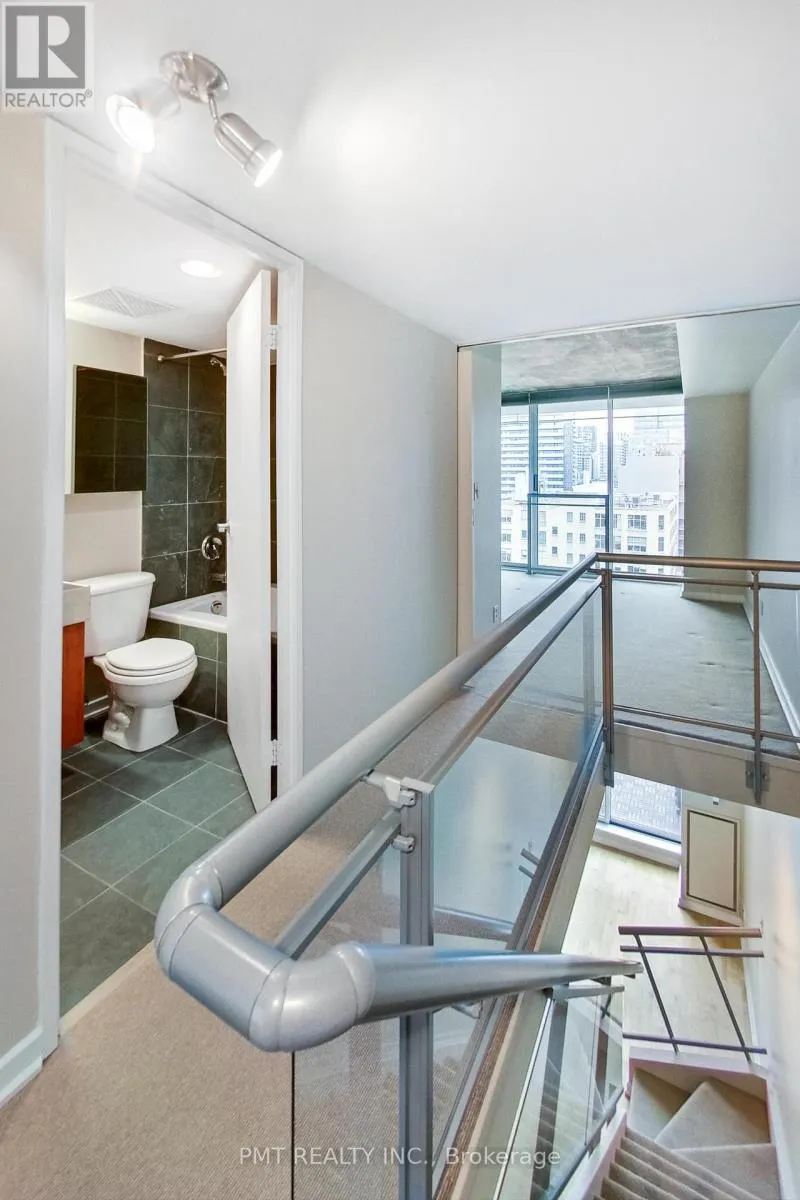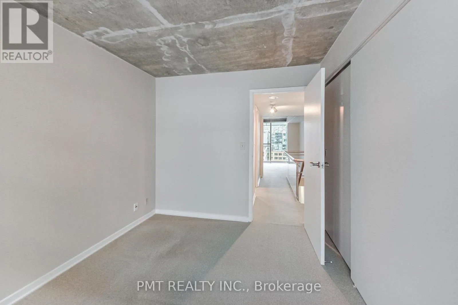 Richmond Street West/Spadina Avenue Introducing a rare offering at the iconic District Lofts - an award-winning boutique building celebrated for its architectural design and timeless urban character. This beautifully appointed 2-storey, 2-bedroom loft combines style, function, and an unbeatable downtown lifestyle. The main level features an open-concept kitchen, living, and dining area with soaring concrete ceilings and floor-to-ceiling windows that fill the space with natural light. Step out onto your south-facing balcony and enjoy unobstructed views of the city skyline - and the added benefit of BBQ use permitted, a rare luxury in condo living. Upstairs, you'll find two generously sized bedrooms and a well-designed 4-piece bathroom, offering both comfort and privacy away from the main living space. Perfectly situated between King West and Queen West, you're just moments from Toronto's best shopping, dining, entertainment, and transit. A true urban oasis for those seeking a stylish downtown home in one of the city's most sought-after neighbourhoods. (id:27476)