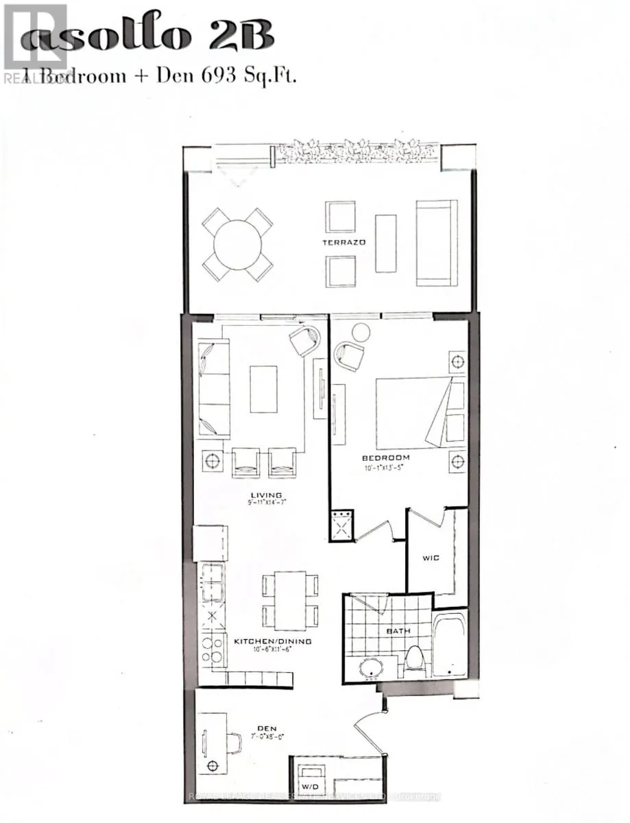 Cross Streets: Dufferin St/Lawrence Ave W. ** Directions: Dufferin/Lawrence Ave. Welcome to this 1-bedroom + den condo at the Italian-inspired Treviso Condominiums. Perfectly suited for a couple or seniors looking to downsize, this spacious unit features 9-foot ceilings, a primary bedroom that can comfortably fit a king-size bed with a walk-in closet, a large accessible bathroom, and a versatile den ideal for a home office or guest room. The open-concept kitchen and dining area boasts granite countertops, an undermount sink, and elegant cabinetry, seamlessly flowing into a bright and airy living space. Step out onto your large private terrace, perfect for relaxing or entertaining, with stunning views overlooking the fountains. Residents enjoy world-class amenities including a grand lobby, rooftop pool and hot tub, BBQ area, fitness centre, party room, games room, and more. This unit also includes 1 locker and 1 parking spot suitable for a large car, adding convenience and peace of mind. Ideally located just steps from TTC and only minutes to subway stations, with Yorkdale Mall, restaurants, schools, Columbus Community Centre, and places of worship nearby, plus easy access to Highway 401 for convenient commuting. Don't miss this opportunity to live in a vibrant, convenient, and highly sought-after Treviso community at Dufferin and Lawrence! (id:27476)