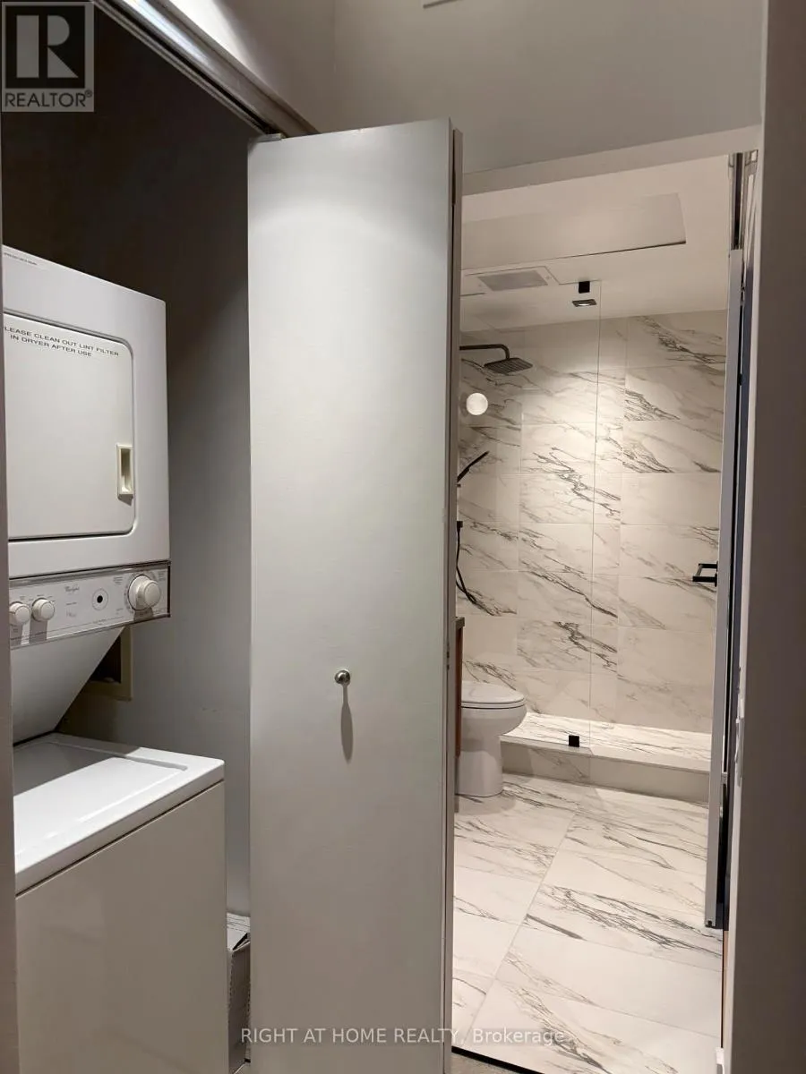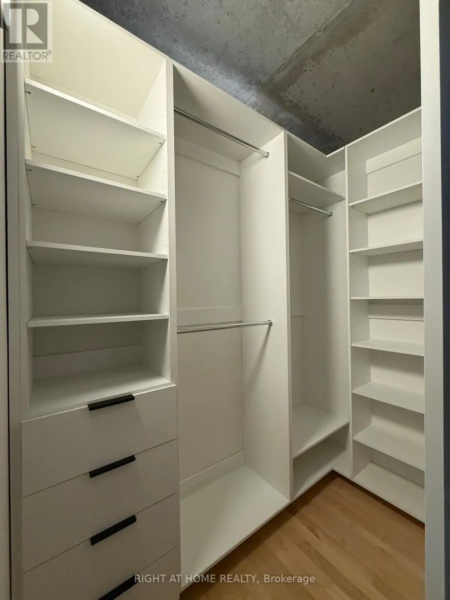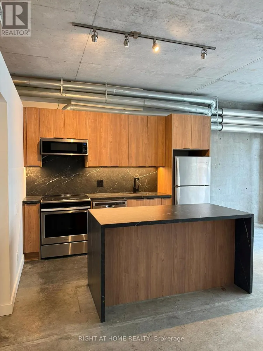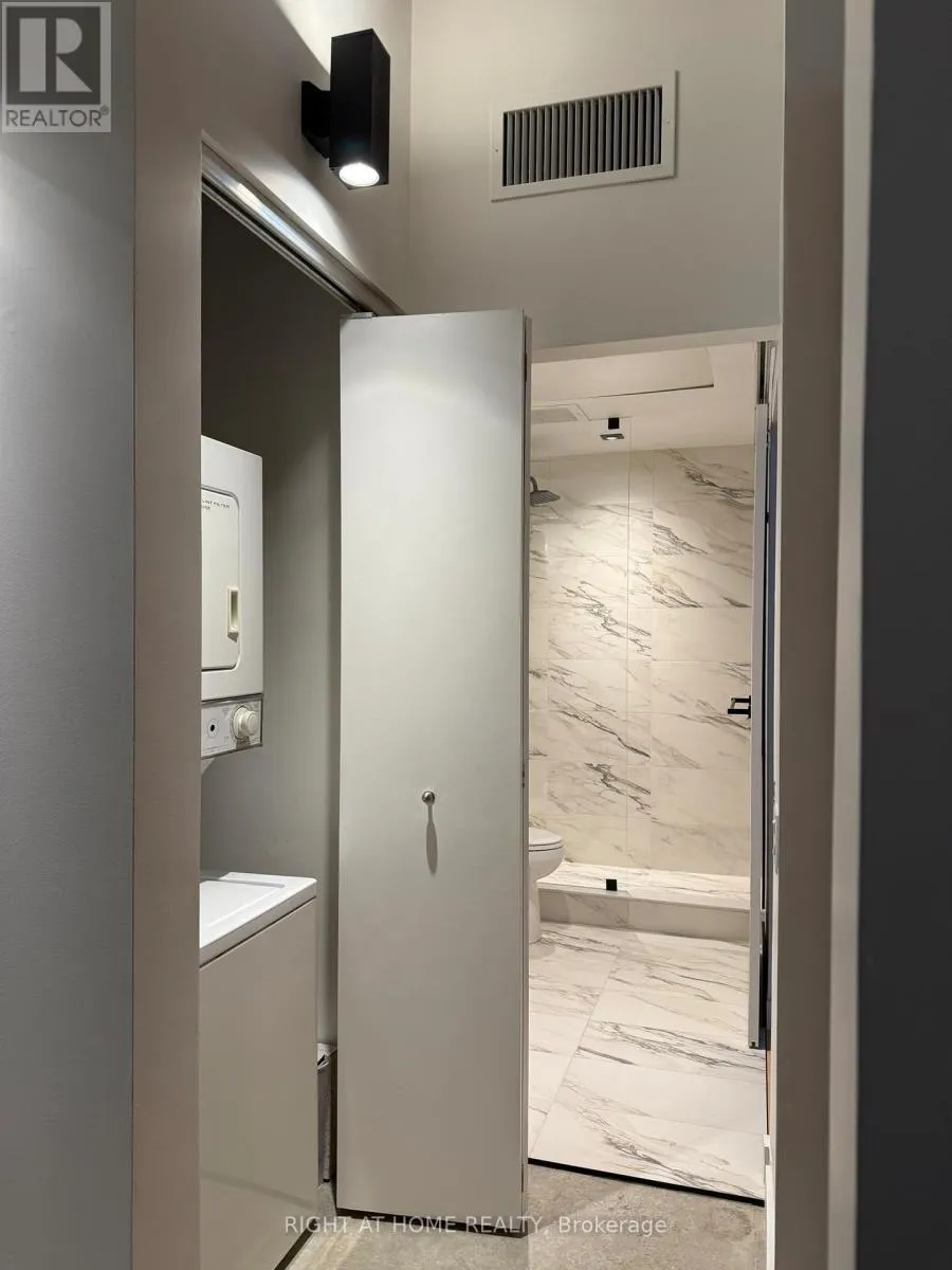 Spadina / Richmond Fully Renovated Loft at Camden Lofts in Queen West. Loft features a 1-bed, 1-bath in one of Toronto's most sought-after boutique buildings. Features 10-ft exposed concrete ceilings, warehouse-style windows, exposed ductwork, and a bright open-concept layout. Brand new modern kitchen with quartz countertops, large Island with seating, stainless steel appliances, and custom front millwork closet. Brand new Spa-inspired bathroom with stand up shower and custom vanity. Bedroom features a custom walk in closet to maximize storage space. Located on a quiet street just steps to Queen West, parks, transit, dining, and nightlife. Boutique 59-unit building with a strong community feel. Lobby & hallways completed renovated, amenities include a party room, a secluded courtyard with BBQs, bicycle storage and visitor parking. (id:27476)