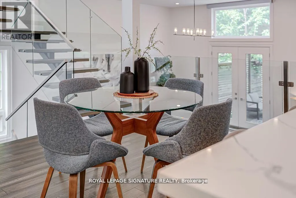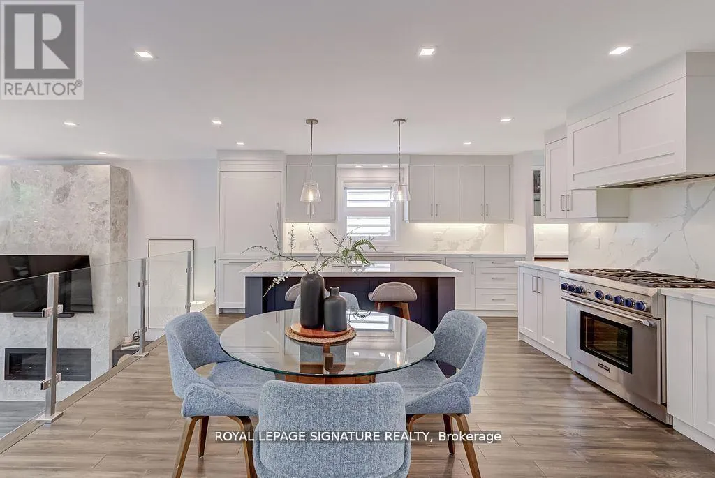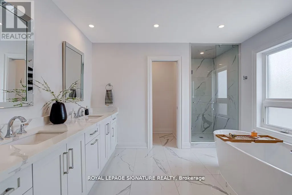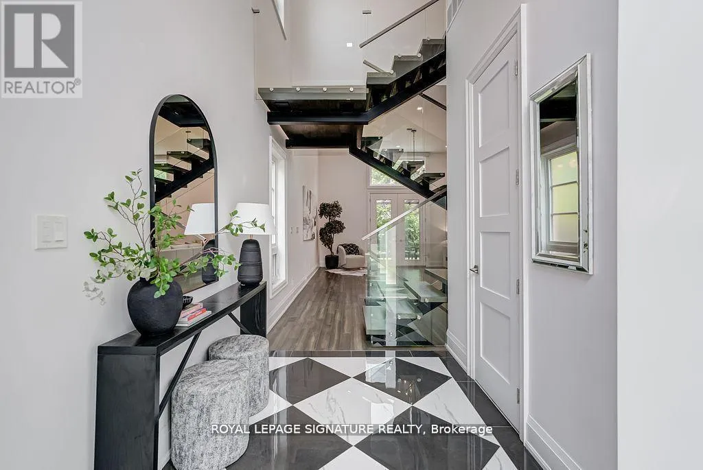 Evans Ave. & Royal York Rd. Welcome to 110 Evans Avenue, an exceptional custom built contemporary home set on a rare 40 by120 foot lot in the heart of Mimico. This thoughtfully designed residence features a split level main floor with soaring thirteen foot ceilings and a dramatic open to above living room that floods the space with natural light, along with a chef inspired kitchen equipped with Thermador appliances, a spacious eat in area, and a walk through butler's pantry with wet bar that connects seamlessly to the formal dining room for effortless entertaining. The upper level offers four generous bedrooms, a secondary laundry room, and a luxurious primary suite with a walk through closet and spa like ensuite, while the fully finished basement adds a large recreation room, full bath, and fifth bedroom ideal for guests, in laws, or a private office. Additional highlights include dual HVAC systems, an oversized two and a half car built in garage, and a covered backyard verandah overlooking a deep, private green space perfect for outdoor dining and play. Situated just steps from the Mimico GO Station, parks, schools, lakefront trails, local shops, and restaurants, this home also comes move in ready with a one year home warranty and pre inspection report, offering an exceptional opportunity to live beautifully in one of Etobicoke's most vibrant lakefront communities. Seller Financing Incentive available VTB 65% LTV at 3.89% 1 Year Term. (id:27476)