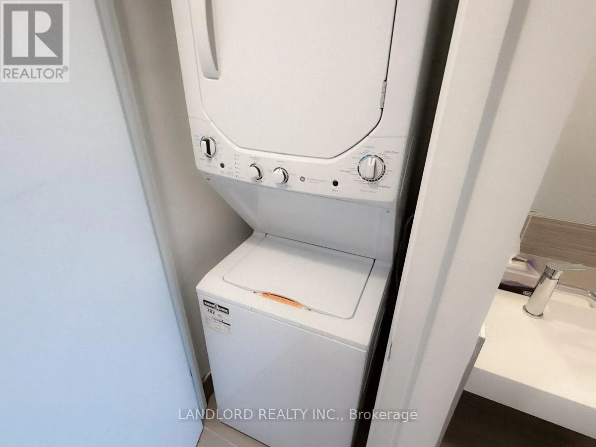 Cross Streets: Front & Cherry. ** Directions: Yes. Vacant, move in ready, professionally-managed unfurnished east-facing corner suite set within Toronto's Distillery District! Parking included. Larger-sized (floor plan attached to listing) space-efficient two bedroom two bathroom layout blessed in all rooms with wall to wall floor to ceiling windows looking east and north over the suite's own wrap around balcony. Both bedrooms generously sized, each with direct bathroom access. Primary bedroom in particular enjoys room-wide sliding glass door access to both its ensuite and walk in closet. Features and finishes include: hardwood flooring, stone kitchen countertop and backsplash with under cabinet lighting, stainless steel appliances, roller shades on all windows, all existing light fixtures, large foyer/entrance closet, entrance set back from main living area for more privacy. || Amenities: Refer to listing images for all building amenities. || Utilities: Tenant pays electricity on own meter. (id:27476)