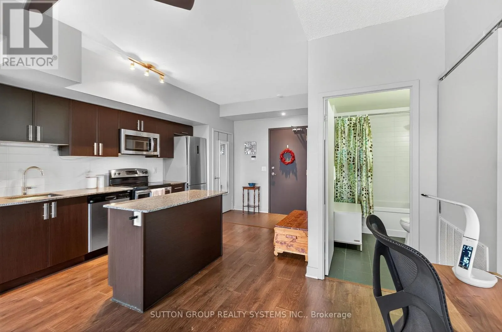Cross Streets: Lakeshore blvd and Superior. ** Directions: North East Corner of Lakeshore blvd and Superior. Stunning 1-bedroom suite in a highly desirable, luxurious boutique building in Mimico's most sought-after waterfront pocket. Steps to Lake Ontario, marina, parks, and miles of waterfront trails. Bright, spacious layout with soaring ceilings, large windows, and an open-concept kitchen with center island, granite counters, S/S appliances, and ample storage. Private balcony with over 600 sq. ft. total living space (incl. balcony). Includes 1 parking, 1 locker, and 1 dedicated bike storage. Premium amenities include a lake-view rooftop patio with BBQs, gym, lounge, and games room. TTC & streetcar at your doorstep; short walk to Mimico GO, Blue Line Transit, cafés, shops, and restaurants. Steps to President's Choice grocery store. Minutes to the Gardiner, QEW, downtown, and Pearson Airport. (id:27476)
