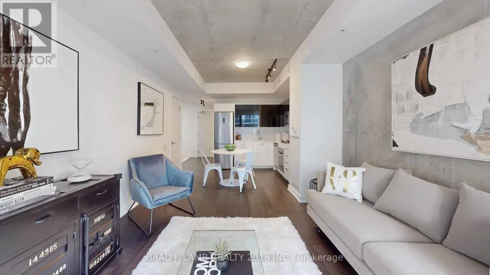 Spadina/Adelaide St W/King St W Live on the park at Brant Park in this stunning 1 Bedroom + 1 Bathroom. Enjoy 500 Sqft interior + large balcony with BBQ gas line! Soaring 9ft exposed concrete ceilings and pristine hardwood floors. The kitchen boasts a modern touch with gas range, all stainless steel appliances and stone countertops. The floor-to-ceiling windows flood the south-facing unit with tons of natural light, creating a bright and inviting atmosphere. Custom white roller blinds offer privacy while maintaining the sleek aesthetic. The tranquility of the space is enhanced by its quiet ambiance, providing a peaceful retreat from the bustling city life. Every inch of this condo has been thoughtfully designed for both comfort and style. Situated in an amazing location with a perfect Walkscore of 100. Located in the vibrant heart of King West Village - you're just steps from everything! 24hr Spadina streetcars, Queen West shopping, King West restos, bars & trendy cafes, Loblaws, banks, are all just steps away. New Waterworks Food Hall and St. Andrew's Park are directly across the street! Don't miss your chance to live in one of the most desirable neighbourhoods in Toronto! (id:27476)