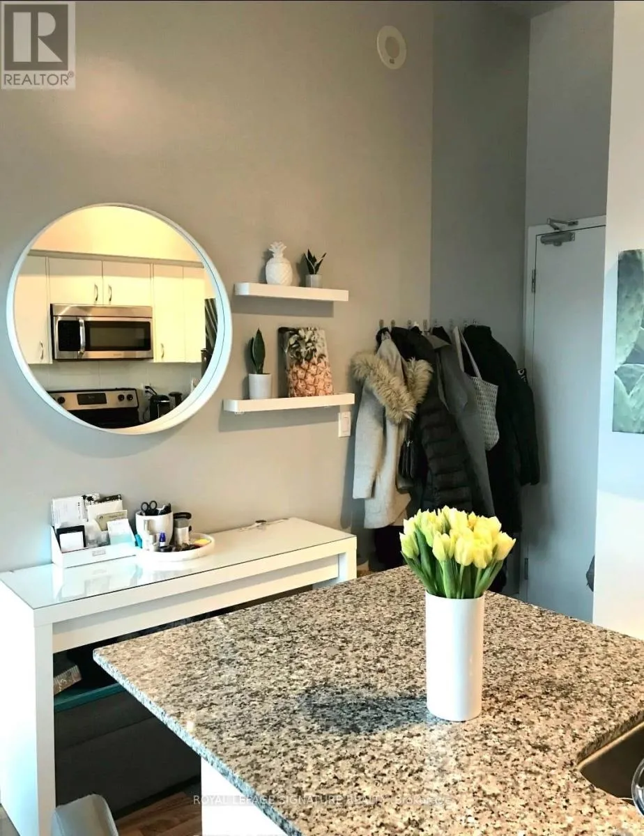 East Liberty/ Strachan Welcome to Bliss Condos! This Ground Level Studio Features 14' Ceilings and Massive Windows That Let In A Ton Of Natural Light. Absolutely No Wasted Space. The Terrace Faces South and Adds A Ton Of Functionality. Adds A Ton Of Functionality. The Modern U Shaped Kitchen Features Full Size S/S Appliances & Granite Countertops. This Unit Has Been Very Thoughtfully Maintained With Built In Storage and Additional Closets. Parking and Locker Are Included! Amenities Include: 24 Hour Concierge, Meeting/Party Room, Rooftop Deck, Indoor Pool, Gym, Car Wash, Guest Suites and Visitor Parking. Close to Everything- Transit, King West, Grocery Stores, Restaurants, The Waterfront and more. (id:27476)