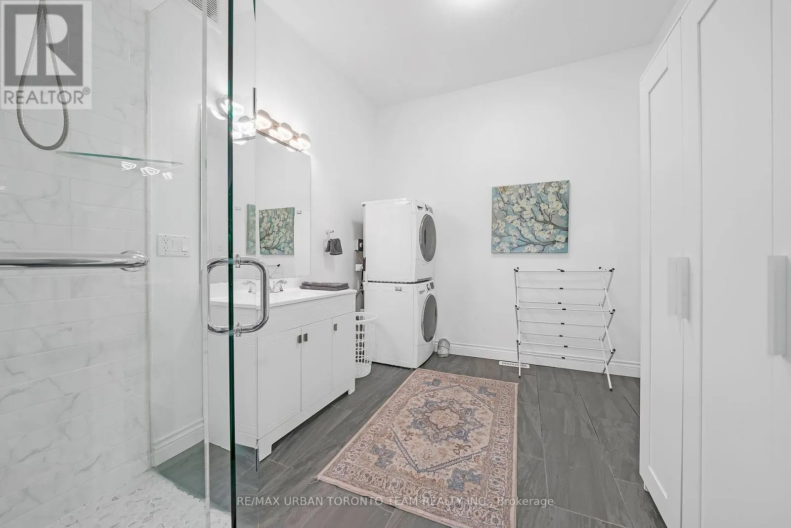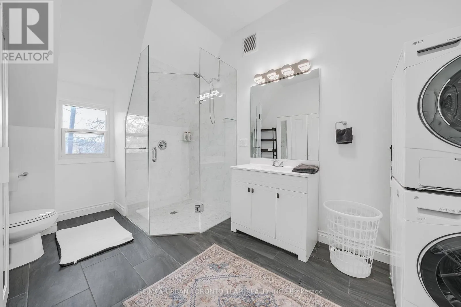 College/Augusta Experience elevated living in this beautifully furnished second- and third-floor suite, thoughtfully designed for comfort, privacy, and style. The well-appointed kitchen opens directly onto a spacious balcony-perfect for outdoor dining or enjoying your morning coffee above the lively streets of Kensington Market.The second floor features a comfortable bedroom, a full bathroom, and an inviting living/dining area with soaring ceilings and stunning bay windows that flood the space with natural light.Upstairs, the entire third floor is dedicated to your own private sanctuary: a serene primary bedroom complete with its own bathroom and ensuite laundry-a quiet, airy hideaway to relax and unwind.Combining charm, natural light, and functional living across two floors, The Oxford Loft offers a unique opportunity in one of Toronto's most vibrant neighbourhoods. (id:27476)