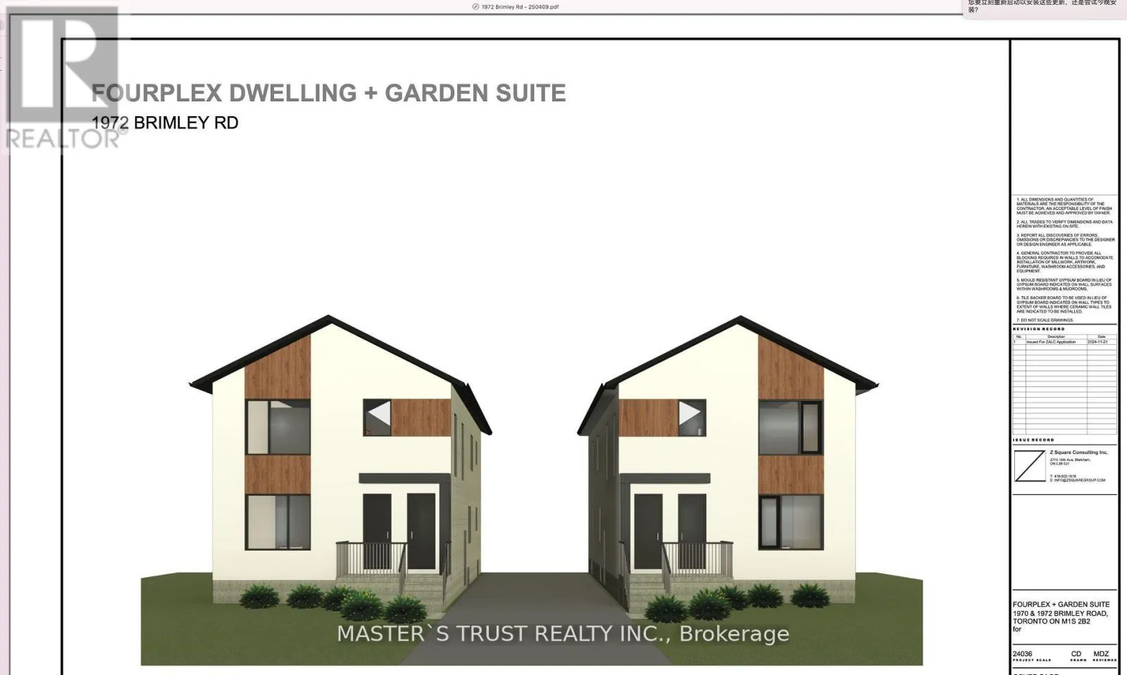 Sheppard/brimley Attention Builders/Investors! Don't Miss This Rare Opportunity To Build income rental property. will be Sale together with 1972 Brimley rd LOT . 2 lot can be build 10-unit rental apartment total 38 rooms. Comply with CMHC mortgage policy.Please see the attached surveys and reference plans. This 38' x 159' Severed Lot Is Conveniently Located To Nearby Amenities And Attractions. This Well Mainted Lot is Leveled and Features Access to Sewers, Municipal Water And Utility Lines. TTC At Door Step. Walking Distance To school Scarborough Town Centre. Easy Access to Hwy 401.the main building's Building permit (four units )have been obtained, for the garden house's building permit is currently being updated. Floor Plans attachment.Appointment Required To Walk The Property (id:27476)