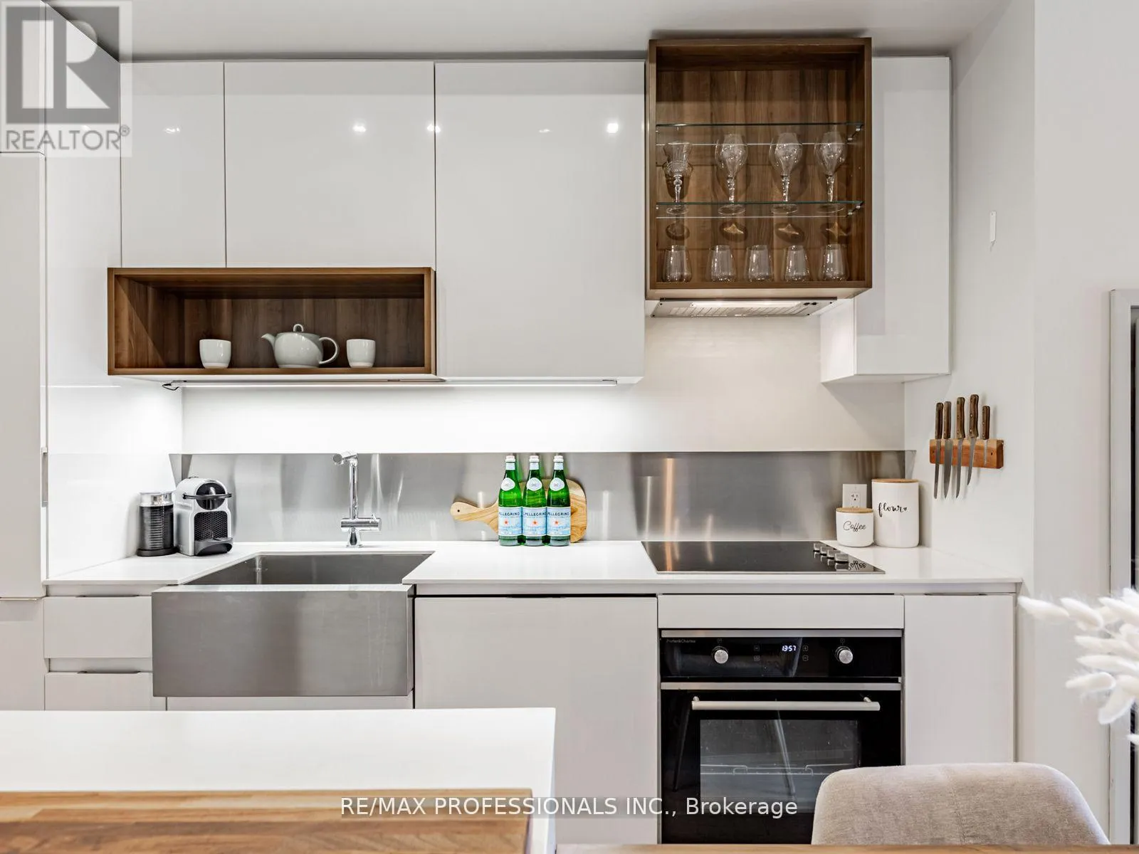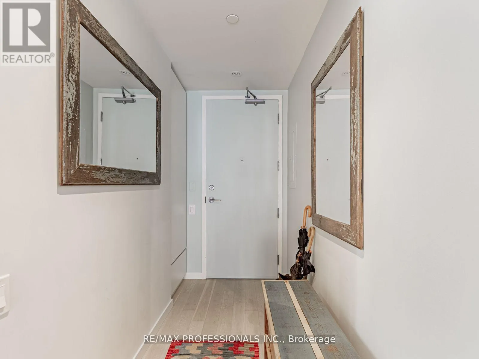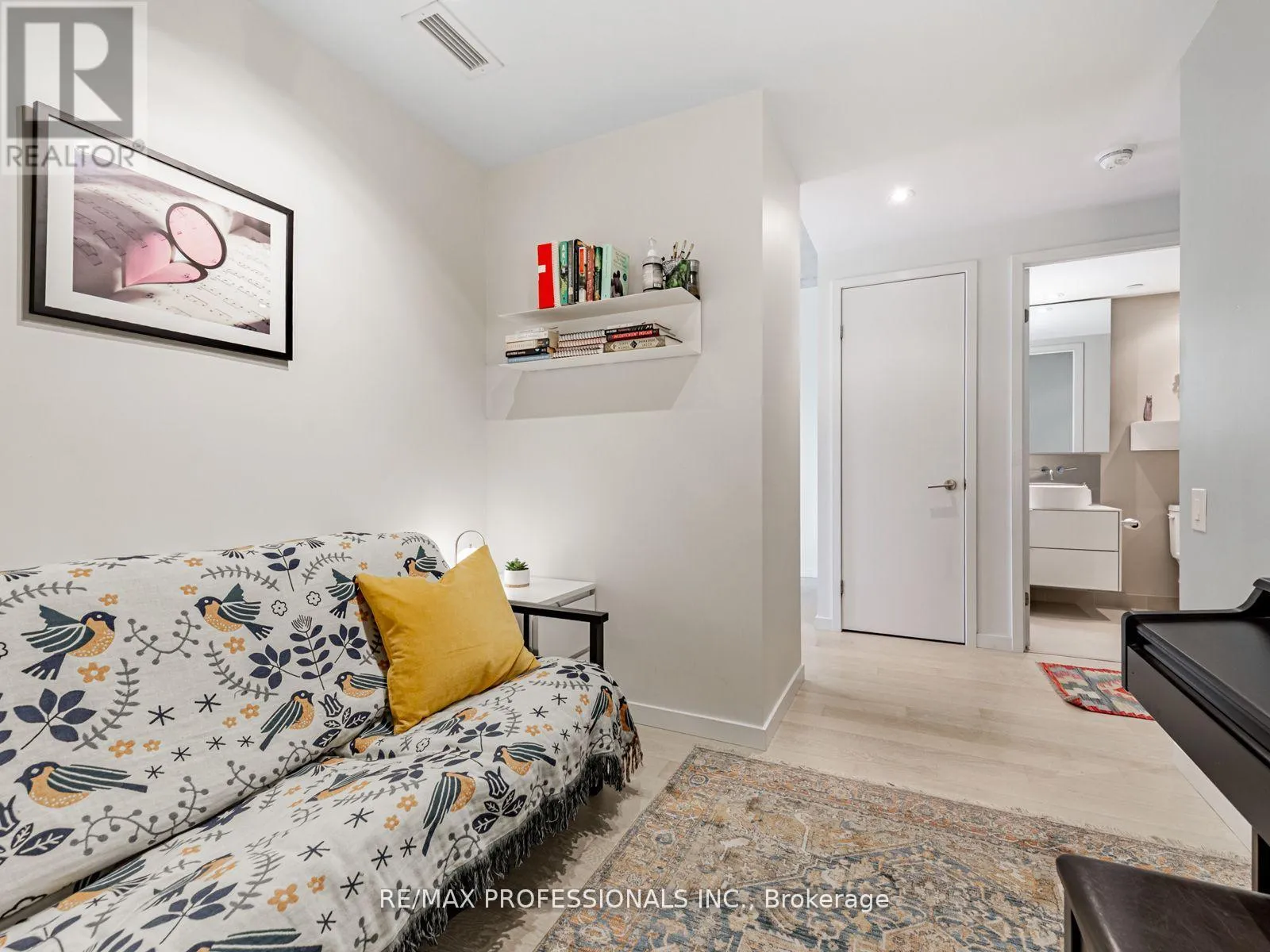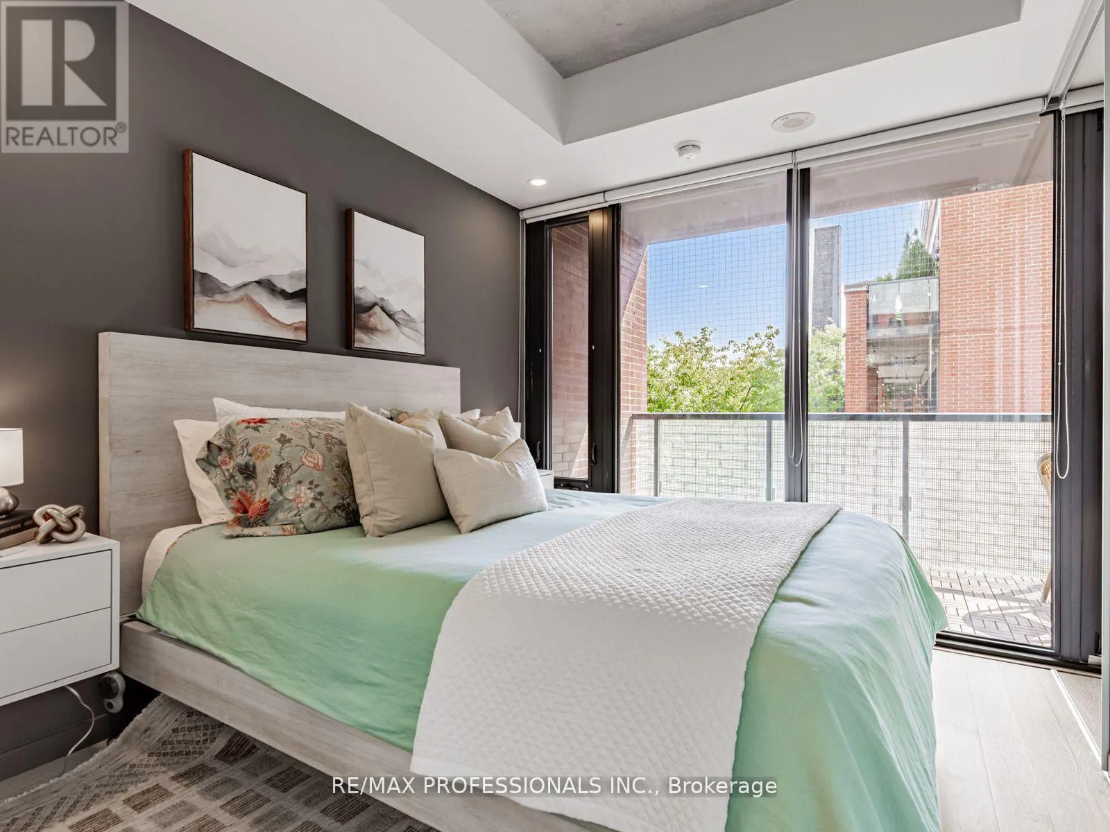 Dundas/Sorauren Live in one of Toronto's most sought-after neighbourhoods, in a boutique building designed by renowned neo-modern architect Peter Clewes. This intimate and stylish residence offers the perfect balance of design and function. This thoughtfully planned 1+den suite with two full baths features a versatile den that can easily serve as a second bedroom or home office. Soaring nine-foot exposed concrete ceilings, floor-to-ceiling black-framed windows that flood the unit in sunlight, and bleached oak floors fill the space with natural light and give it a modern edge. The sleek kitchen is equipped with built-in appliances, quartz counters, a stainless steel backsplash, oversized sink, and crisp white cabinetry. A custom island with quartz counters extends into a walnut dining table, creating a seamless space for both cooking and entertaining. The primary bedroom offers pot lighting, floor-to-ceiling windows, double closets, and a spa-like three-piece ensuite with a frameless glass walk-in shower. A private covered balcony, integrated front closet, ensuite storage, and in-suite laundry complete the home, along with one underground parking space. Residents enjoy exceptional building amenities including a gym, party room, concierge, BBQ area, bike storage, and visitor parking. Situated in the heart of Roncesvalles, one of Toronto's most vibrant communities, this home is surrounded by cafes, restaurants, markets, shops, and parks including an off-leash dog park! With quick TTC access by streetcar or subway, downtown is only minutes away. Stylish, functional, and ideally located, this condo offers the best of both home and neighbourhood. (id:27476)