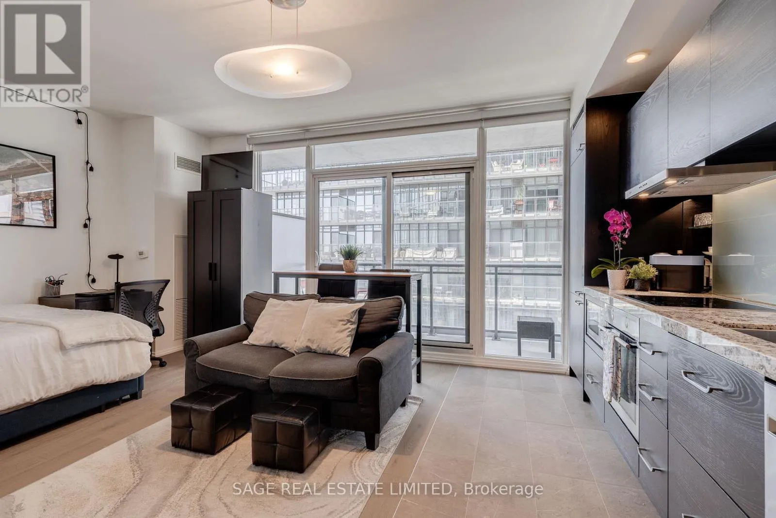 Yonge and Bloor High above the city on the 45th floor, this studio feels like your personal perch in the sky. Wake up with the CN Tower in view, sip your morning coffee on a balcony that stretches the width of your home, and step out into one of Toronto's most vibrant pockets - Bloor-Yorkville, Yonge Street, and the subway are literally at your doorstep. Inside, every detail is designed for style and function. The sleek kitchen flows seamlessly into matching hallway closets, a custom feature unique to this building. Rich dark cabinetry, newer tile from the front door through the kitchen, and a layout that fits your couch, TV, bed, and high-top table make the space both polished and practical. In the bathroom, a glass-enclosed shower and soft undermount vanity lighting give you that boutique-hotel glow for your nightly wind-down. Life here isn't just about your suite, it's about the full experience. Host guests in the stylish lounges, challenge friends in the state of the art games room or hit the gym without ever stepping outside. Additional amenities include a full-time concierge, a sauna, a rooftop terrace with BBQs, a party room, theatre room, billiards room, workstations and guest suites. And with your own locker, you actually have space for all the gear that fuels your city adventures. This isn't just a place to live. It's the lifestyle you've been chasing - downtown energy, sky-high views, and a space that's as smart as it is stylish. (id:27476)