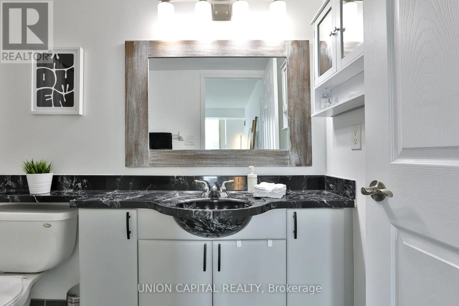 BLOOR ST W & ISLINGTON Bright and spacious 890 sq ft corner suite offering exceptional natural light and a highly functional 2-bedroom, 2-bathroom layout. This sun-filled home features southwest exposure, a beautiful balcony, and an open-concept living/dining area perfect for entertaining. The modern kitchen includes stainless steel appliances and a peninsula breakfast bar. Designed with privacy in mind, the split-bedroom layout includes a primary bedroom with a 4-piece ensuite, plus a generous second bedroom with great flexibility for guests, work, or family. Enjoy the convenience of one owned parking space and an extra-large (double sized) locker located steps from the unit! Residents enjoy excellent amenities including a gym, concierge, billiards room, media room, golf simulator, and more. Ideally located near Islington Station, parks, shops, cafés, and minutes to Hwy 427 & the QEW. A beautifully maintained, move-in-ready corner suite in a well-managed building with all-inclusive maintenance fees. (id:27476)