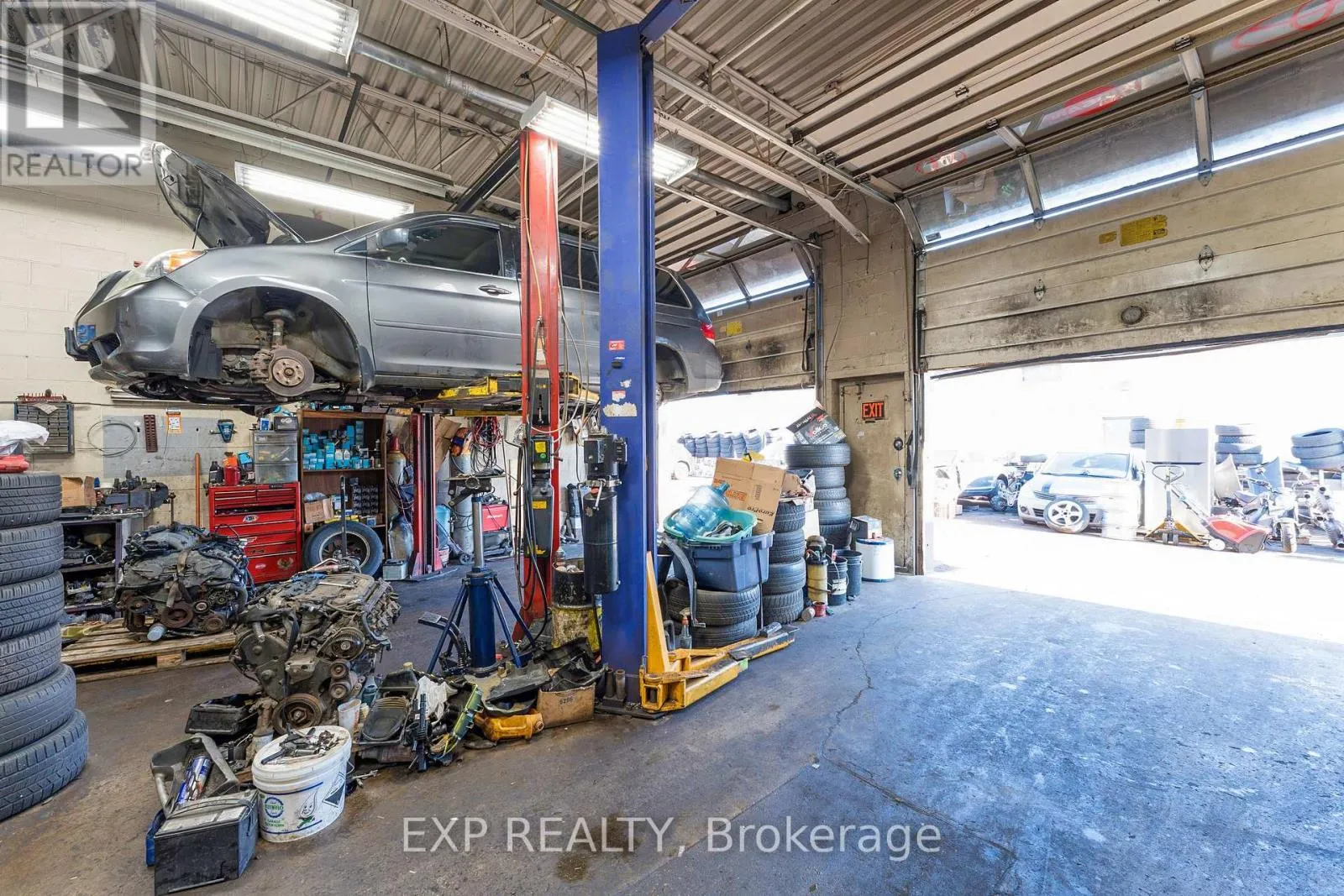 Keele & Finch Location, location, location! Exceptional opportunity to acquire a fully equipped, turnkey auto mechanic shop in one of Toronto's busiest and most established auto-repair hubs. This well-known shop is situated in a high-traffic, high-visibility area with a strong existing client base and an excellent reputation for professional service.The space offers 4 designated outdoor parking spots plus 4 indoor working bays, making it ideal for a steady workflow and maximum customer convenience. The purchase includes all chattels, fixtures, and equipment currently on-site, except the toolbox and computer, which will be removed.This asset sale provides everything you need to walk in and start operating immediately, including:Two hoists (9,000 lb & 10,000 lb), tire changer, tire balancer, air compressor, transmission jack, engine jack, floor jacks, A/C machine, torch, oil tank, engine oil drainer, heavy-duty work table, bench grinder, bench vise, and more.Additional features include a dedicated office space, coffee station, and gross rent of $4,800 per month. (id:27476)