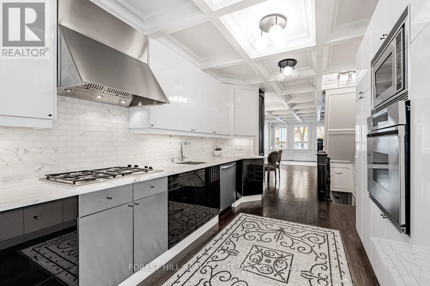 West of Church / East of Yonge Inspired by the elegance of a classic New York brownstone, this exceptional executive residence offers two full levels of refined living in the heart of the city. Graciously scaled rooms, thoughtful separation of space, and an atmosphere of quiet sophistication create a home that is both grand and deeply comfortable.Every detail has been meticulously curated: massive walk-in closet, coffered ceilings, rich custom millwork, bespoke built-ins, mosaic tile accents, and wide-plank hardwood flooring. The chef's kitchen is a centrepiece of the home, showcasing marble counters and premium, integrated appliances befitting a residence of this calibre.Designed for elevated living and effortless entertaining, the expansive rooftop terrace offers sweeping skyline views-your private vantage point above the city.Situated just steps from Yonge & College, this residence places you at the centre of Toronto's most connected neighbourhood with immediate access to transit, parks, grocers, cafés, restaurants, and everyday conveniences. A rare blend of space, luxury, and urban proximity, this is downtown living without compromise. (id:27476)
