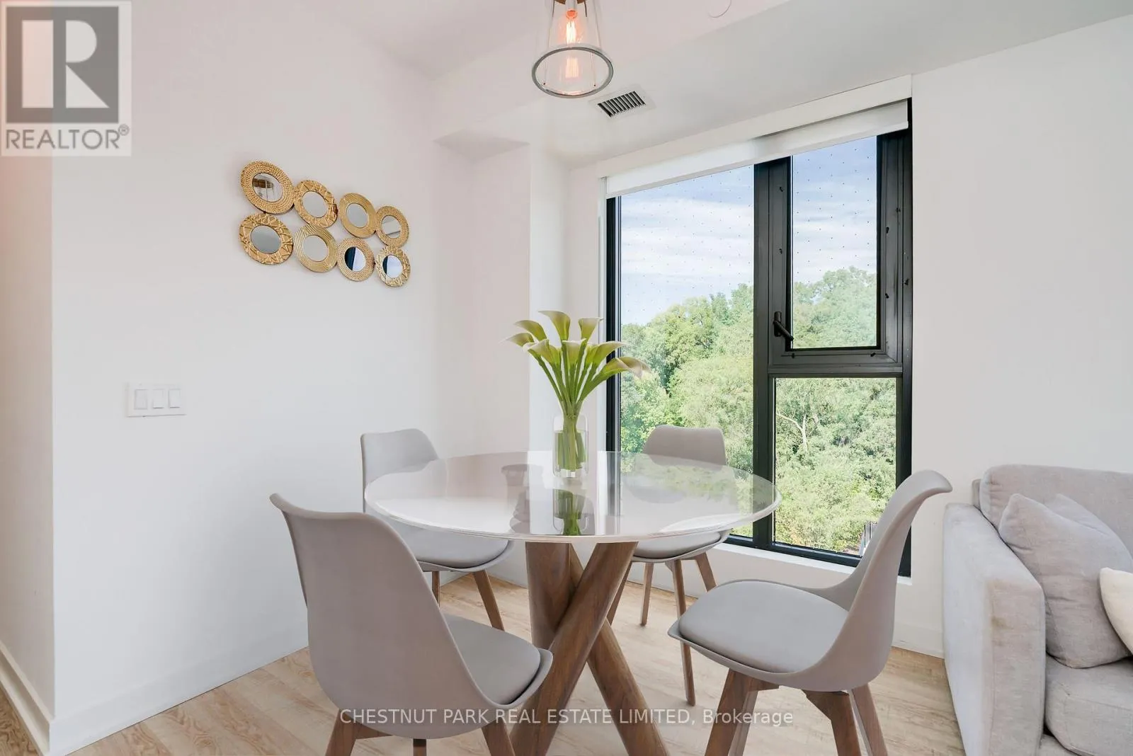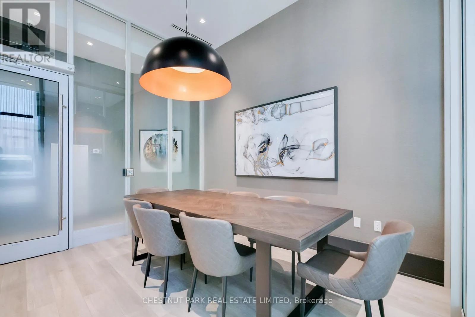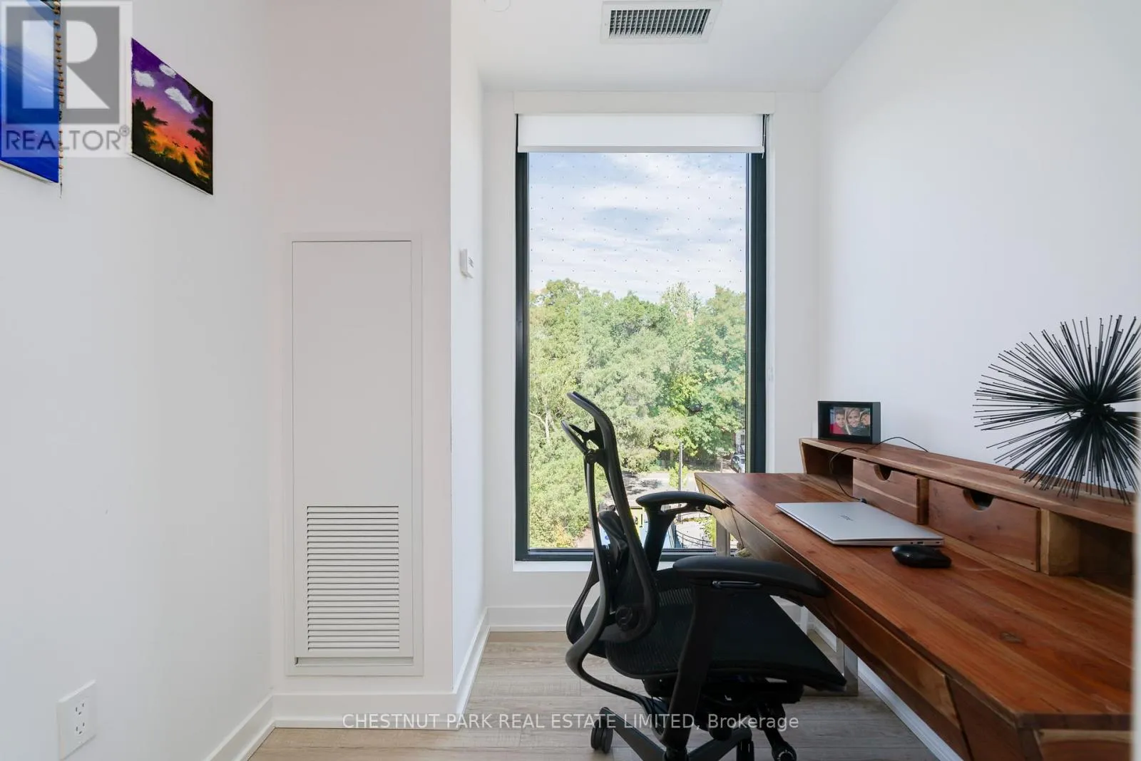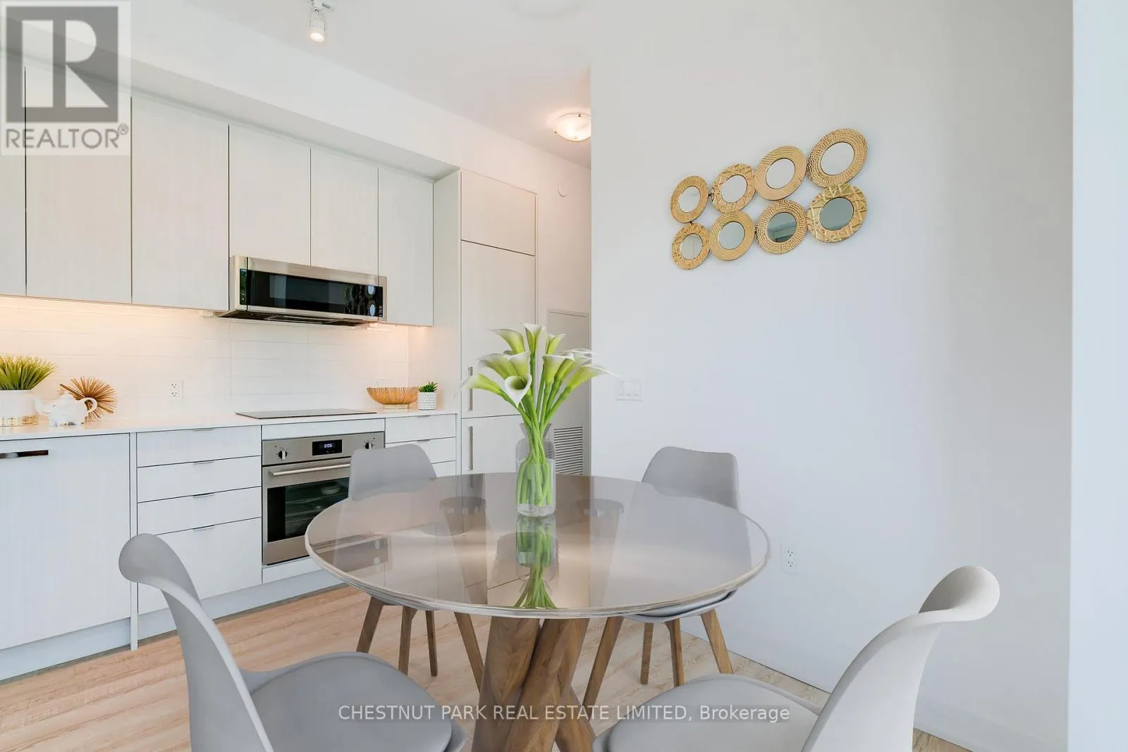 Cross Streets: Avenue Road & Lawrence Ave W. ** Directions: North side of Lawrence Ave W & east of Avenue Rd. Welcome to 250 Lawrence at Avenue Road, where contemporary design meets timeless sophistication. This recently completed, northeast-facing 2-bedroom + den, 2-bathroom corner suite offers 921 square feet of thoughtfully planned living space, tailored to suit a variety of lifestyles. The intelligently designed layout ensures every square foot is fully functional and adaptable, making it easy to customize to your personal tastes. The open-concept living & dining areas extend seamlessly to a private balcony, creating the perfect blend of indoor and outdoor living. The sunlit kitchen is a chef's delight, boasting integrated appliances, elegant quartz countertops, a stylish tile backsplash, and sleek contemporary cabinetry. The highly desirable split-bedroom floor plan ensures privacy and space. The primary suite can accommodate a king-size bed, with ample closet space and a spa-inspired 4-piece ensuite. A well-appointed 4-piece semi-ensuite bath services the second bedroom, and the adjacent enclosed den is a perfect option for a beautifully designed home office. Included is 1 owned locker & 1 parking space. Life at 250 Lawrence is enhanced by resort-like amenities designed for both relaxation and productivity. Residents enjoy a 24-hour concierge, a state-of-the-art fitness centre & yoga studio, a fireplace/media lounge, and a rooftop club lounge with a beautifully landscaped terrace. For those working from home, the co-working lounge, meeting room, and kitchenette provide the perfect balance of convenience & comfort. Perfectly situated, this boutique building places you minutes from public transit, major highways, and a wide array of shopping, dining, & entertainment options. Families will appreciate the proximity to some of the city's most highly regarded public and private schools, while nature enthusiasts will love being surrounded by lush parks, trails, and green spaces. Experience a new standard of sophisticated urban living. (id:27476)