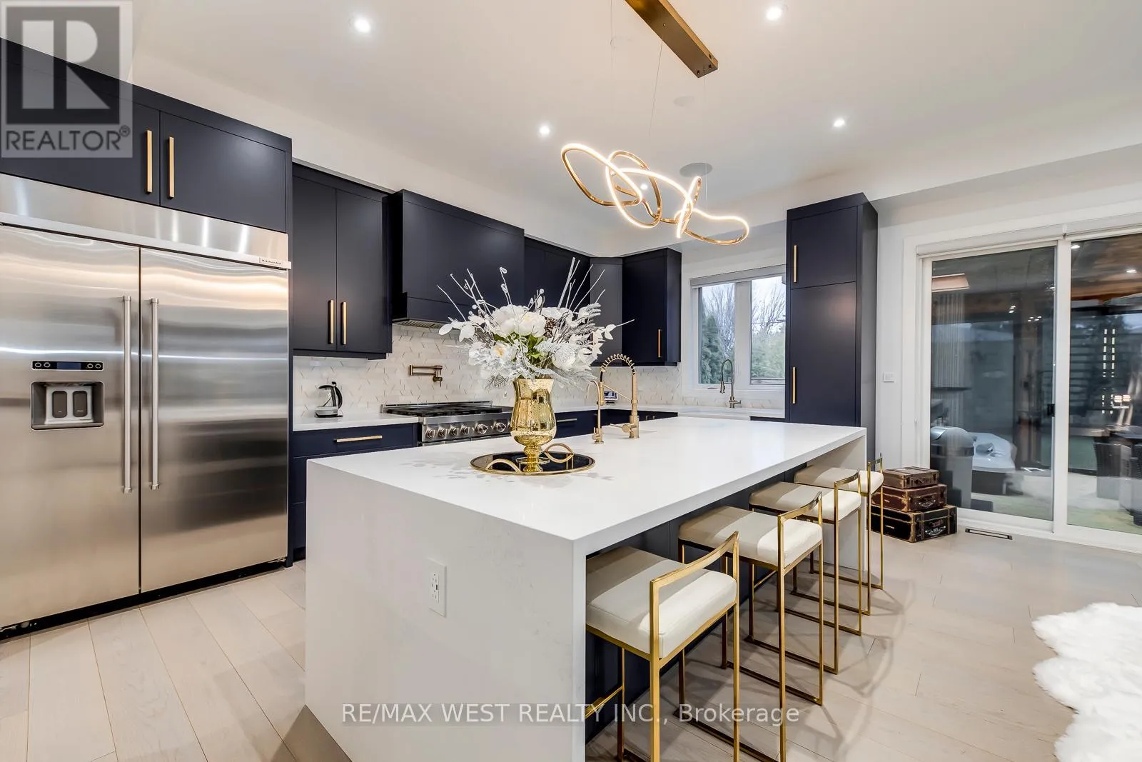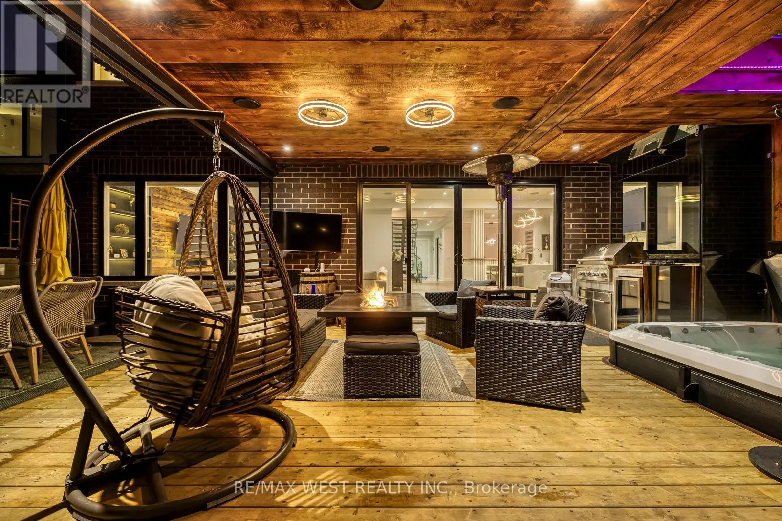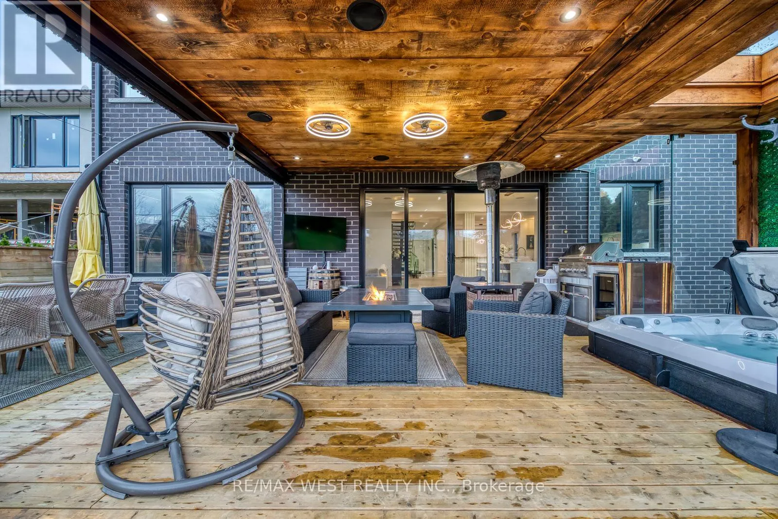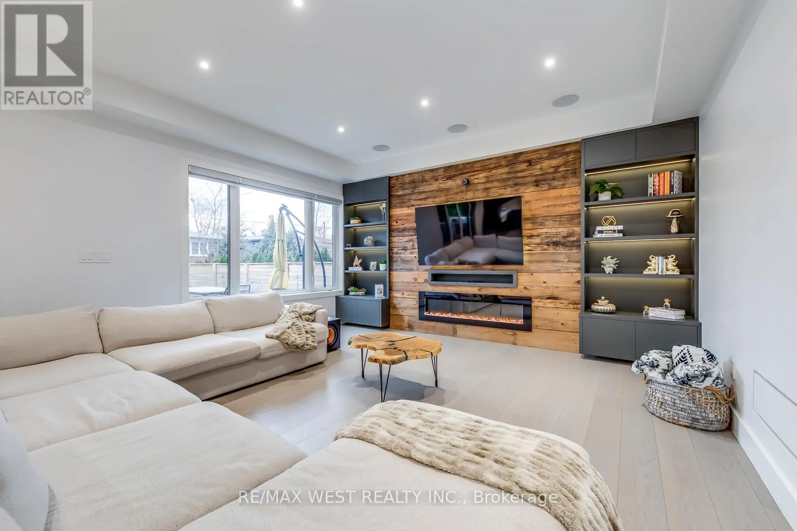 Lawrence and Dufferin Welcome to this custom luxury home crafted for those who want scale, design and functionality without compromise. Sitting on a rare 52 x 143 ft lot in Yorkdale-Glen Park, this detached residence offers 5776 sq ft of Living Space including a beautifully finished, furnished lower-level suite with private entrance, patio and reliable income. The arrival is impressive: a double asphalt driveway, illuminated interlock pathway and tall double doors open to a foyer wrapped in custom shelving and a feature wall. From here, the home flows naturally into a sophisticated dining room with a statement chandelier, followed by a warm and inviting living room where a sleek fireplace, illuminated media wall, ceiling speakers and custom shelving create the perfect gathering space. The kitchen serves as the true heart of the home, designed with a large Island, high-chair seating, dual sinks, pot filler, wet bar, boutique lighting and ceiling speakers. A walkout leads to a covered deck engineered for all seasons with wind and rain screens, a built-in BBQ with cook-top. Also on the main floor is a stunning glass-walled office with barn-wood ceiling and custom cabinetry. A dramatic skylight crowns the staircase leading to five bedrooms. The primary suite offers a fireplace with built-ins, pendant lighting and a walk-in closet with skylight, custom cabinetry and a full shoe wall. The spa-style en-suite features a glass-enclosed shower with body sprays, an exposed soaker tub and a private water closet. Secondary bedrooms include European built-ins and Jack-and-Jill washrooms, supported by a full laundry room with sink, cabinets and gas dryer. The finished lower level adds three bedrooms, two full baths, a hidden cold room door and a walkout to a private gated patio-currently rented and generating $3,800 per month. Outdoors, the fully fenced yard includes irrigation, cameras, speakers, Jacuzzi tub, shed and a heated double garage with rough-in all ready for a heated driveway. (id:27476)