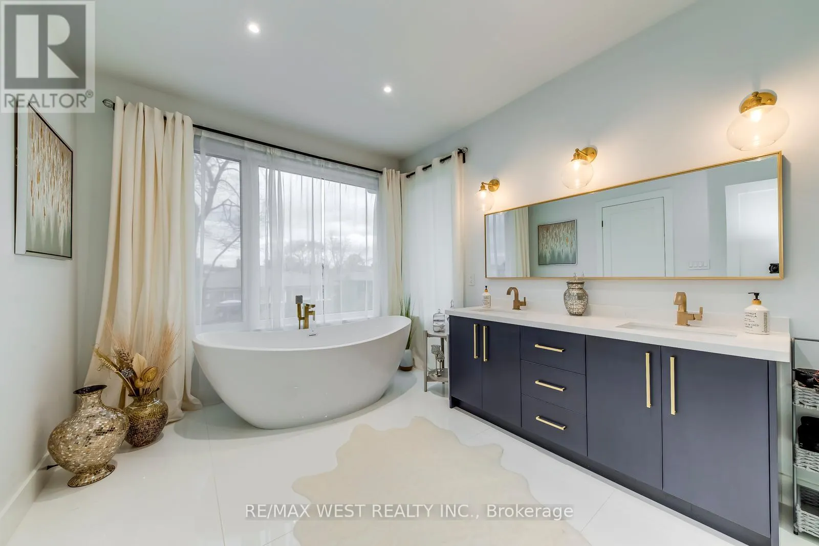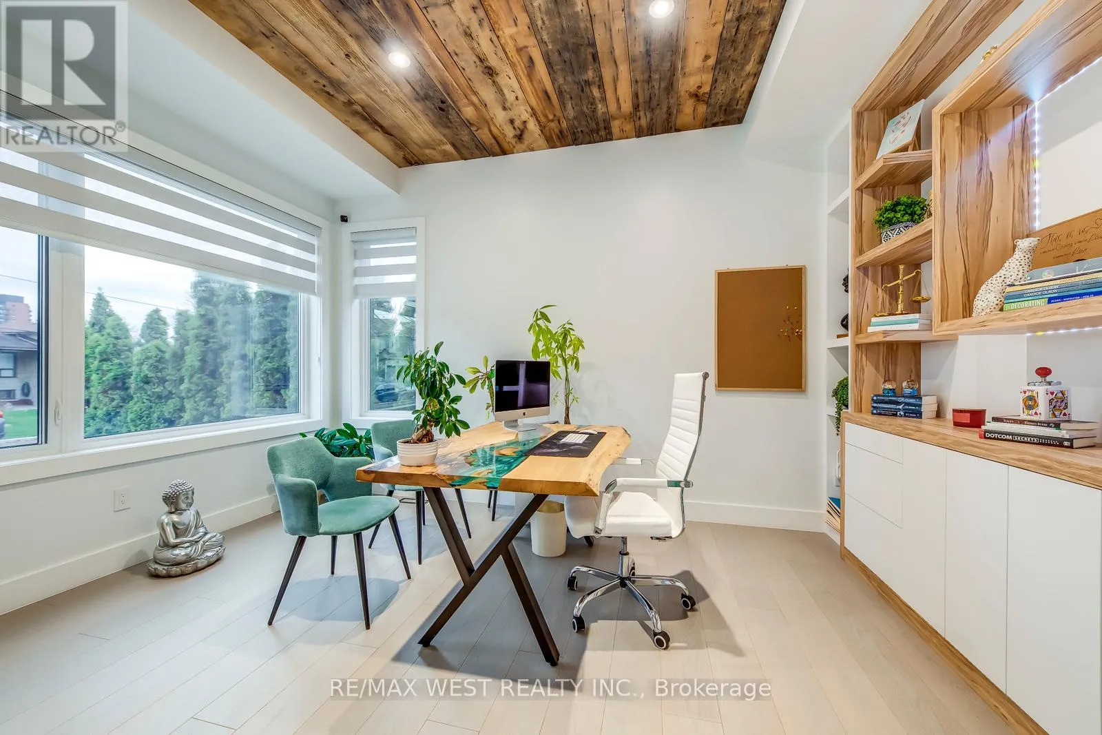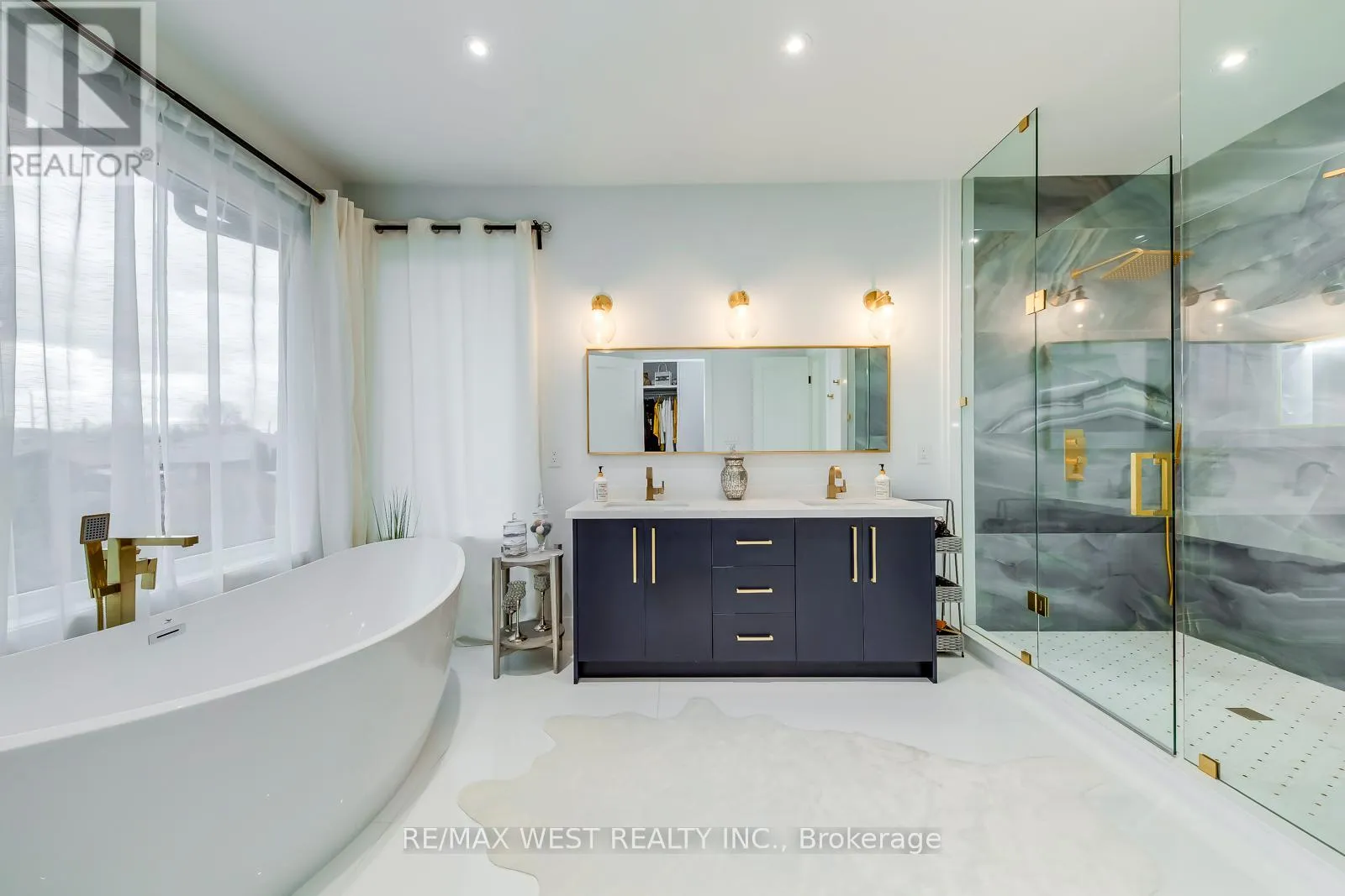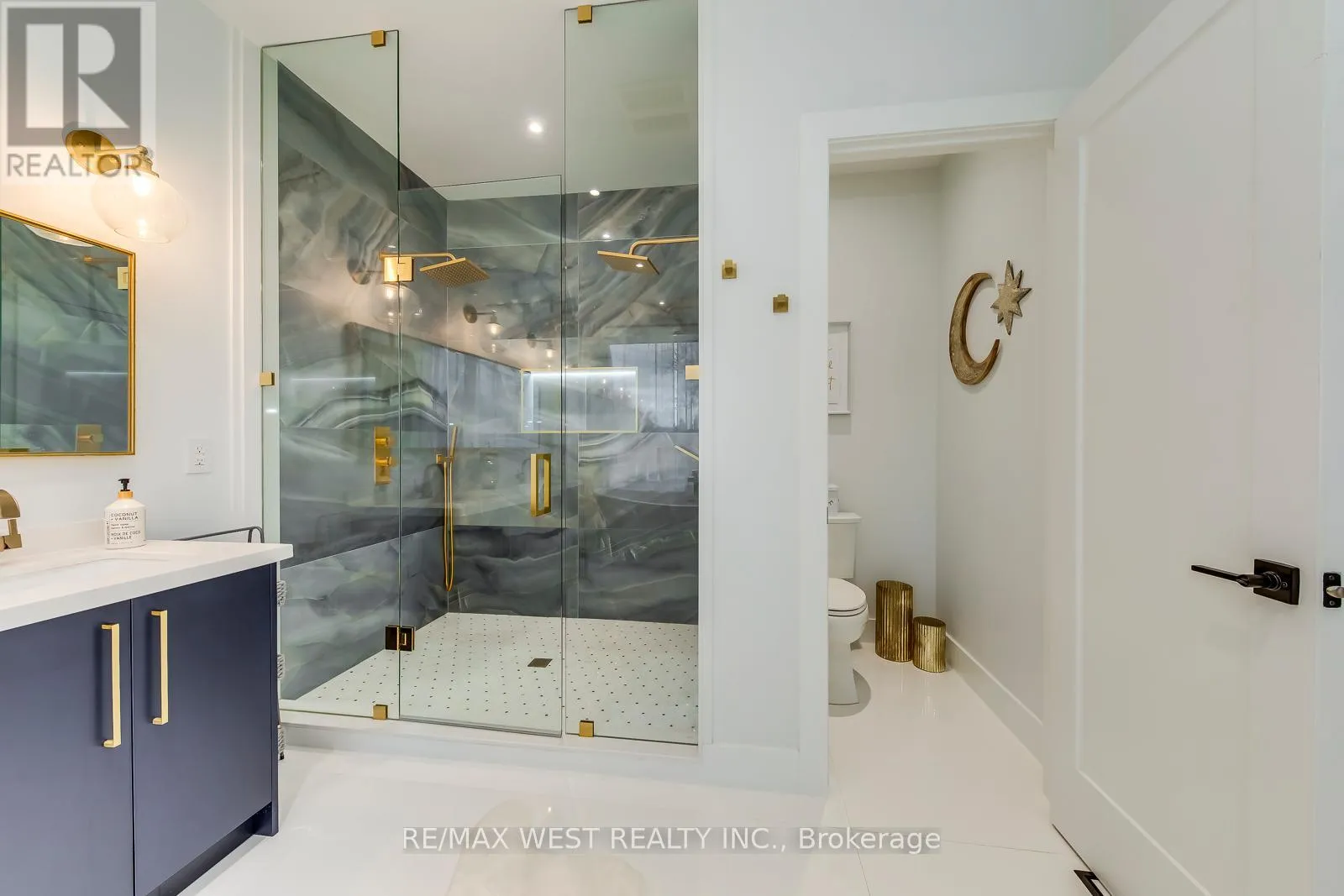 Lawrence and Dufferin Welcome to this custom luxury home crafted for those who want scale, design and functionality without compromise. Sitting on a rare 52 x 143 ft lot in Yorkdale-Glen Park, this detached residence offers 5776 sq ft of Living Space including a beautifully finished, furnished lower-level suite with private entrance, patio and reliable income. The arrival is impressive: a double asphalt driveway, illuminated interlock pathway and tall double doors open to a foyer wrapped in custom shelving and a feature wall. From here, the home flows naturally into a sophisticated dining room with a statement chandelier, followed by a warm and inviting living room where a sleek fireplace, illuminated media wall, ceiling speakers and custom shelving create the perfect gathering space. The kitchen serves as the true heart of the home, designed with a large Island, high-chair seating, dual sinks, pot filler, wet bar, boutique lighting and ceiling speakers. A walkout leads to a covered deck engineered for all seasons with wind and rain screens, a built-in BBQ with cook-top. Also on the main floor is a stunning glass-walled office with barn-wood ceiling and custom cabinetry. A dramatic skylight crowns the staircase leading to five bedrooms. The primary suite offers a fireplace with built-ins, pendant lighting and a walk-in closet with skylight, custom cabinetry and a full shoe wall. The spa-style en-suite features a glass-enclosed shower with body sprays, an exposed soaker tub and a private water closet. Secondary bedrooms include European built-ins and Jack-and-Jill washrooms, supported by a full laundry room with sink, cabinets and gas dryer. The finished lower level adds three bedrooms, two full baths, a hidden cold room door and a walkout to a private gated patio-currently rented and generating $3,800 per month. Outdoors, the fully fenced yard includes irrigation, cameras, speakers, Jacuzzi tub, shed and a heated double garage with rough-in all ready for a heated driveway. (id:27476)