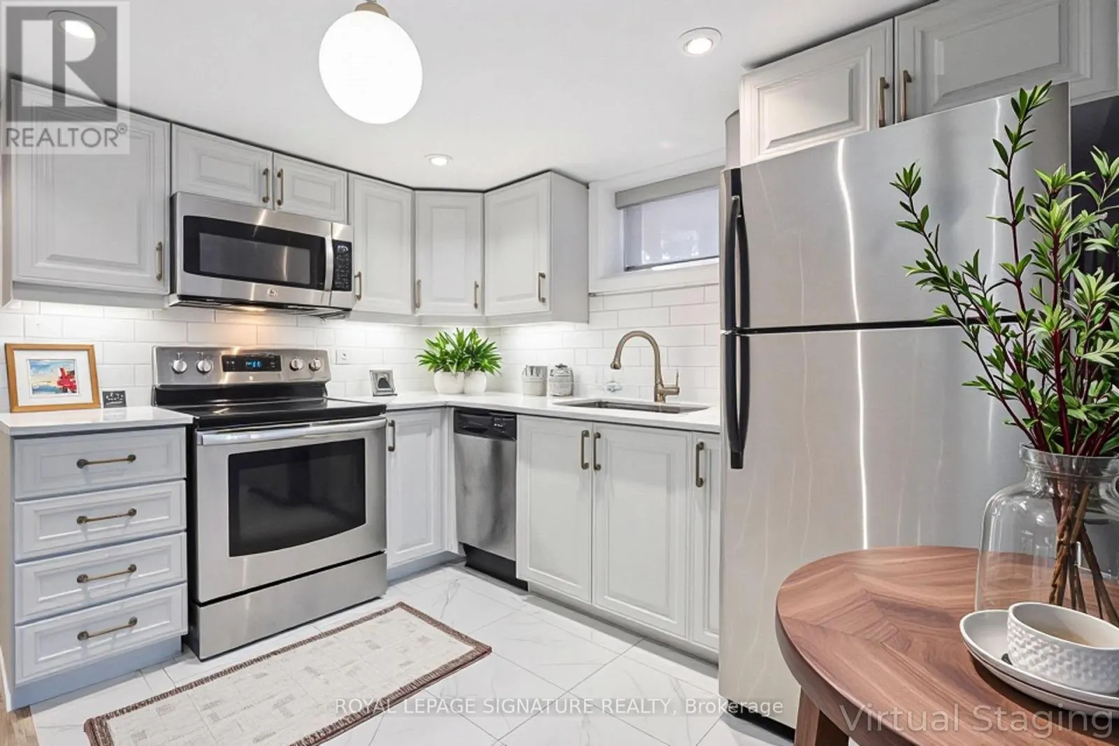 Eglinton Ave E & Victoria Park Ave Beautifully renovated 2-bedroom basement apartment in Sought-After Victoria Village! This gorgeous unit offers the perfect blend of comfort, style, and convenience. The spacious, sun-filled living area is highlighted by large above-grade windows that flood the space with natural light. Enjoy cooking and entertaining in the sleek, modern kitchen complete with stainless steel appliances incl. fridge, stove, microwave and ample cabinetry for all your storage needs. The unit offers two generously sized bedrooms, 3 piece bathroom and walk-in laundry room with sink. Includes 1 driveway parking spot. Unbeatable location! Just steps from the future Eglinton Crosstown LRT (Sloane Station) and only 3 minutes to the DVP, making your daily commute quick and easy. Tenant Responsible for 40% of Utilities. (id:27476)