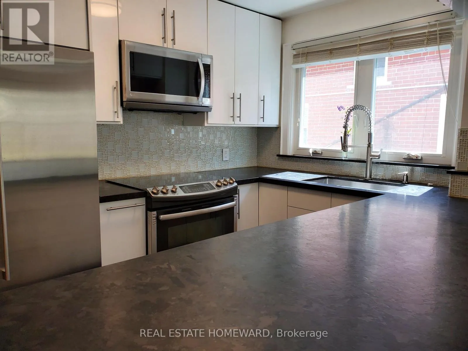 Cross Streets: E. Woodbine Ave/N. Kingston Rd. ** Directions: East Woodbine/Waverley Rd. *Facing a garden & Parkette And A Hill Of Trees In A Quiet Enclave On A Wide-Dead End Street. Executive rental, Main Floor Of Triplex, 1,100 Square Feet (larger than most triplexes or semis). Gutted And Renovated. Bright Huge Living Rm With Massive Window view of garden and park across the street. Gourmet Kitchen, Enormous Granite Counter W/ Leather Finish (Top-Of-Line) with 8 1/2 ft long Breakfast Bar. Italian glass backsplash, over-sized Kindred stainless sink, goose neck faucet, Huge Window facing West. Sliding Pots & Pans Drawers, Lazy Susan. Two Large Bedrooms, Newer Beautiful Bathroom With Window, Tons Of Custom Closet Space, Real Oak Flooring, new 7" Baseboards, new Plaster Mouldings and smooth ceilings (no stucco), Windows Facing South, West And North, Central Air, Exclusive use of Backyard patio for BBQ. Brand new 2025 LG Large size Washer & Dryer (shared with single bsmt tenant only). Tiled Ceiling In Shower (Shower Head 7 Feet Tall). Walk to shops on Queen St, stroll the Boardwalk, by the Lake. 24 hour TTC along Woodbine to subway. Danforth GO 5 minute drive. Parking In Front Of House. Floor Plan Attached. Sorry NO Pets, owner lives in Upper Unit and is acutely allergic & asthmatic. (id:27476)